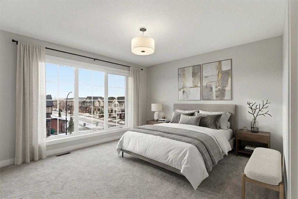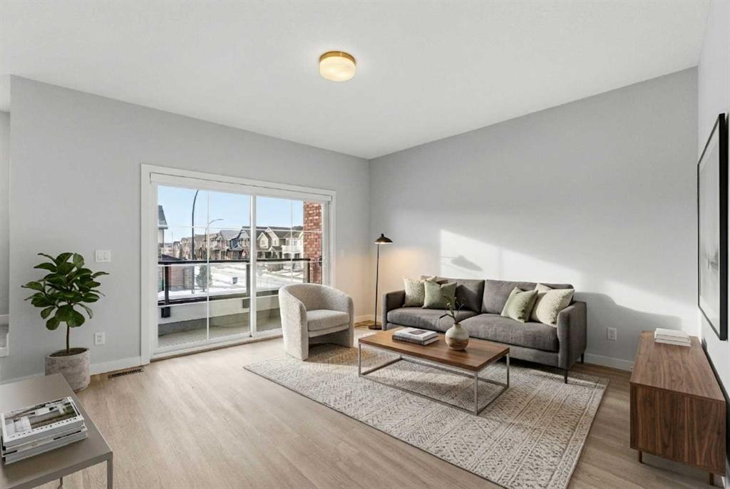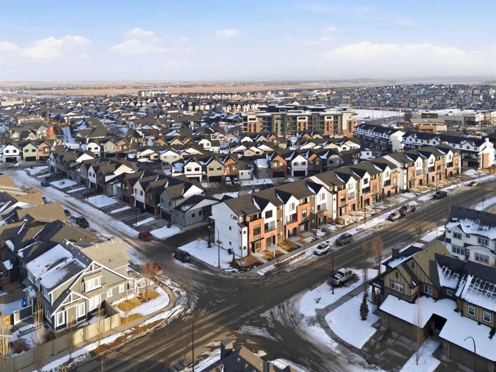 A sophisticated 3-storey masterpiece nestled in the heart of Cooper’s Crossing—an 13th-time recipient of Airdrie’s “Best Community” award. This award-winning home from the Vesta Elevate Collection seamlessly blends contemporary architecture with upscale interior finishes, offering a low-maintenance sanctuary for those who refuse to compromise on style or convenience. The open floor plan is designed with a focus on modern livability featuring 3 bedrooms, 2.5 bathrooms and a flex room ideal for a home office, gym or additional living space. The home features a thoughtful layout across three levels. A bright, open-concept living area is the heart of the home. The gourmet kitchen showcases the full-height cabinetry, sleek modern finishes, and generous prep space that flows effortlessly into the dining and living areas. A convenient powder room completes this level, making it ideal for entertaining. On the upper level discover a deluxe primary suite designed as a private retreat. The secondary bedrooms are a rare find—impressively oversized compared to typical townhome designs, offering plenty of space for family, guests, or hobby rooms. In a market where parking is a premium, this home stands alone. It boasts a double attached garage plus 2 car driveway —a rare and highly coveted four-car setup that provides ultimate convenience for multi-vehicle households. Step outside and experience true walkability. You are perfectly positioned directly across from Cooper’s Town Promenade, giving you instant access to: Save-On-Foods, Shoppers Drug Mart, and Pet Valu. Starbucks, McDonald’s, and local eateries. Miles of pathways, lush parks, and top-rated schools are just steps from your front door. Whether you are an active professional or a growing family, this home offers the perfect balance of “elevated” interior design and a vibrant, award-winning neighborhood.