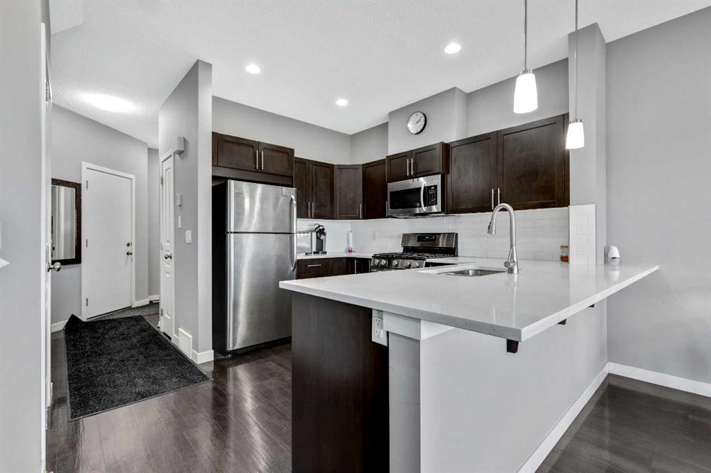 Welcome to unit #1603 located at The Sonoma of Sage Hills! This bright and beautiful three-bedroom unit backs onto a scenic ravine, offering privacy, natural views and clear pride of ownership throughout. Featuring three full bathrooms plus a convenient half bath, this home combines thoughtful upgrades with functional living space. There is a bright and open main living area with a well-appointed kitchen featuring stainless steel appliances, gas range and quartz countertops. There is also additional flex space on the main floor, perfect for a home office or sitting area. There are three bedrooms on the second floor, including the spacious primary bedroom complete with a private ensuite bathroom and a walk-in closet. There is an additional full bathroom to serve the other two bedrooms on this floor. The lower level is very bright and inviting featuring upgraded “sunshine package” windows allowing in a plethora of natural light. The basement was professionally finished with extra insulation for added comfort, quiet and energy efficiency. The basement also includes a spacious, functional laundry room and excellent storage options. Recent upgrades include: a newer furnace (2023), and a newer garage door and opener. Conveniently located near ample shopping, walking paths and everyday amenities, with two new school approved for the community- this property will appeal to a wide range of lifestyles and needs.