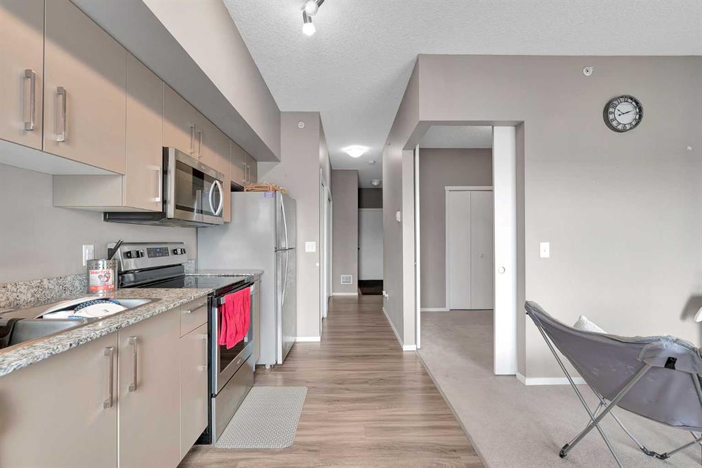 Discover effortless condo living in this immaculate, top-floor unit at Skyview Landing, nestled in the highly sought-after, family-friendly Skyview Ranch. Enjoy a bright, open-concept living and dining area with 9-foot ceilings, perfect for entertaining or simply relaxing. This space extends to a private balcony, ideal for enjoying the view. The modern kitchen features stainless steel appliances and granite countertops. This spacious floor plan includes two bedrooms and a four-piece bathroom. You’ll appreciate the exceptional value with low condo fees and a titled, heated underground parking stall. Stay active with access to two gyms conveniently located in buildings 3000 and 4000. Embrace a low-maintenance lifestyle with quick commutes to the city’s best amenities via Metis Trail, Stoney Trail, and Country Hills Blvd. Check out the virtual tour or book your private showing today!