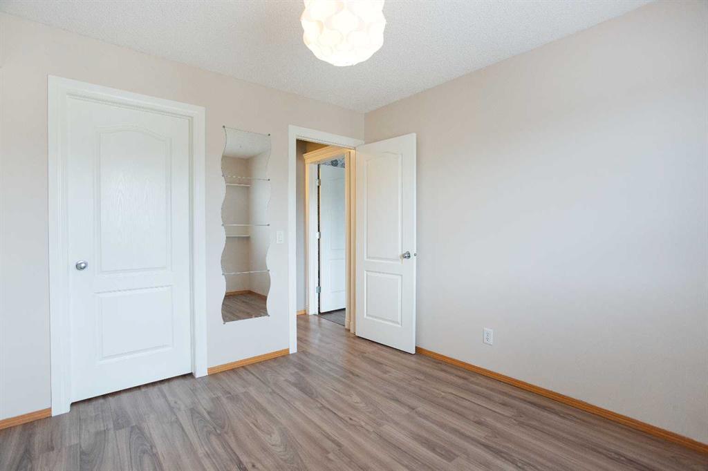 One of the home’s standout features is the large south-facing deck, perfectly positioned to capture abundant sunlight while overlooking the serene green space behind. This outdoor extension of the home is ideal for summer barbecues, morning coffee, or simply enjoying Calgary’s beautiful evenings in a quiet, private setting.