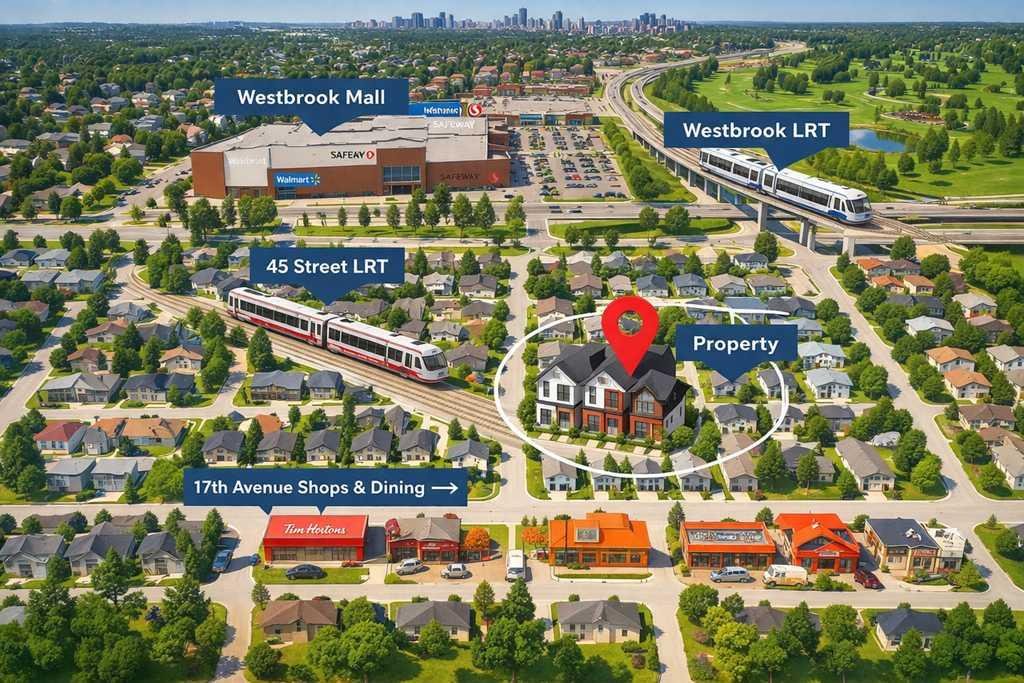 Unbeatable convenience: minutes walk to public and Catholic schools, Westbrook Mall (Walmart, Safeway, and more), bus routes, Westbrook LRT and 45 Street West LRT for quick access to downtown, University of Calgary, SAIT, Mount Royal University, and the shops and restaurants along 17th Avenue.