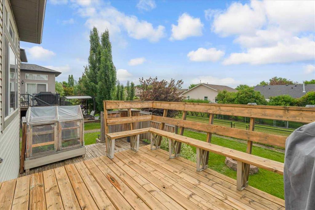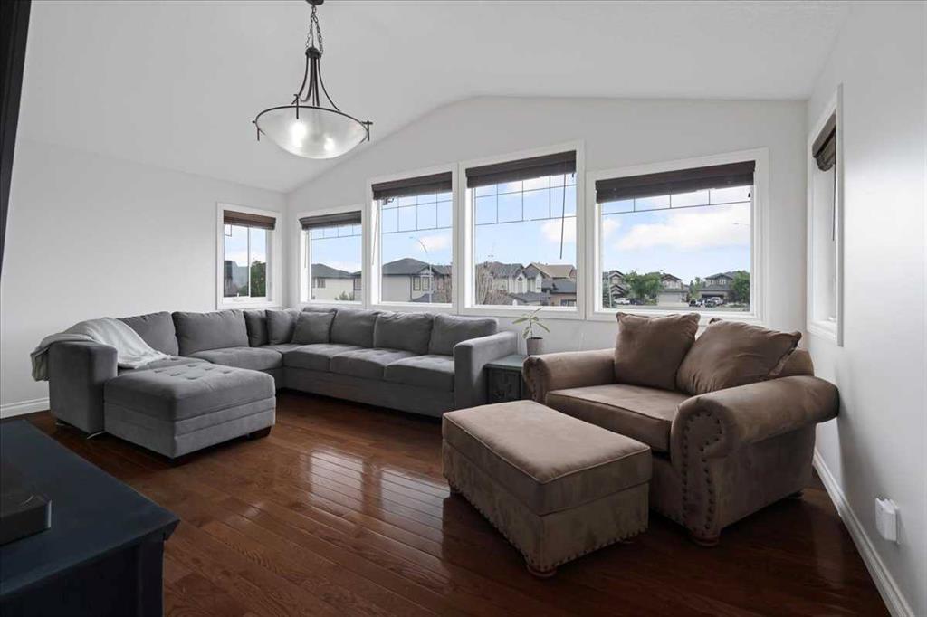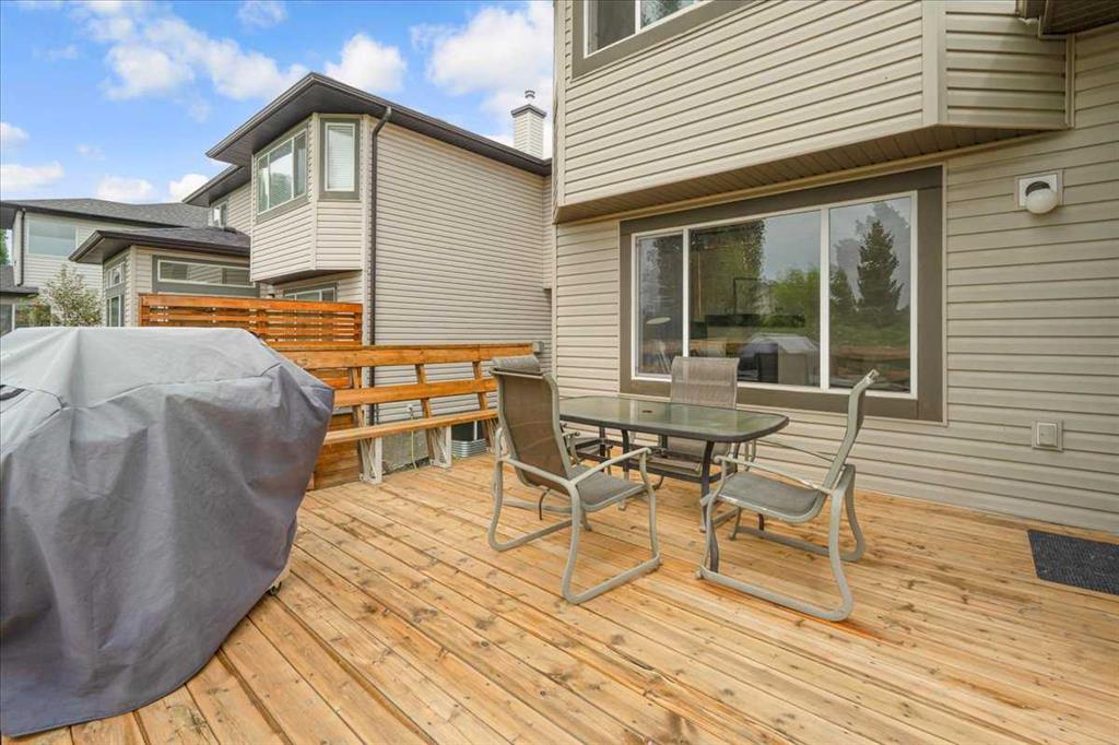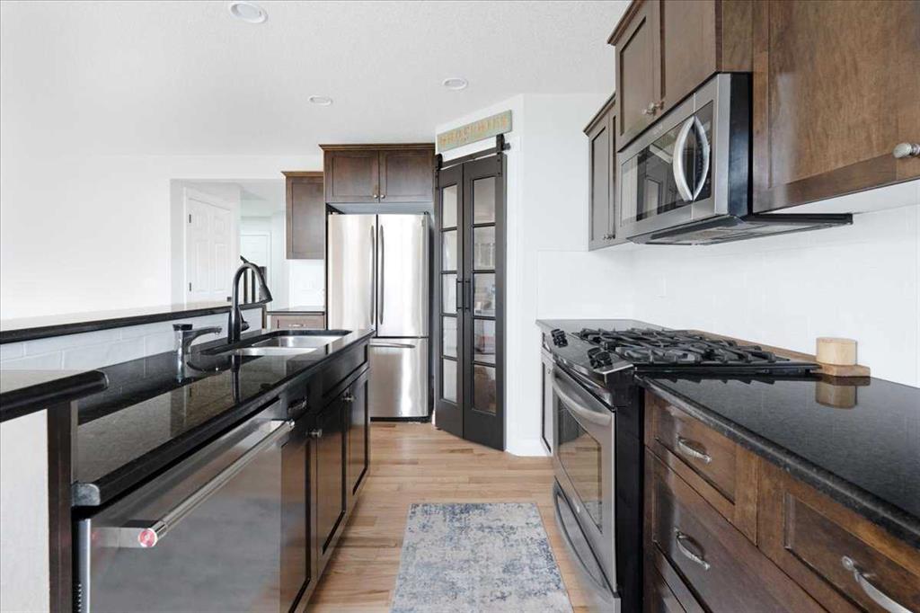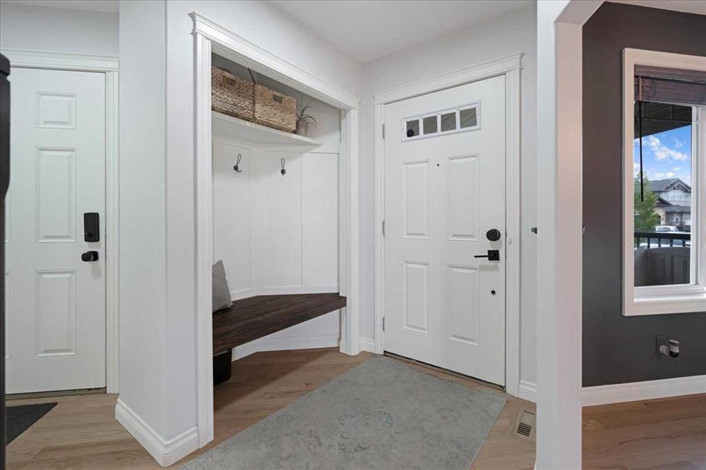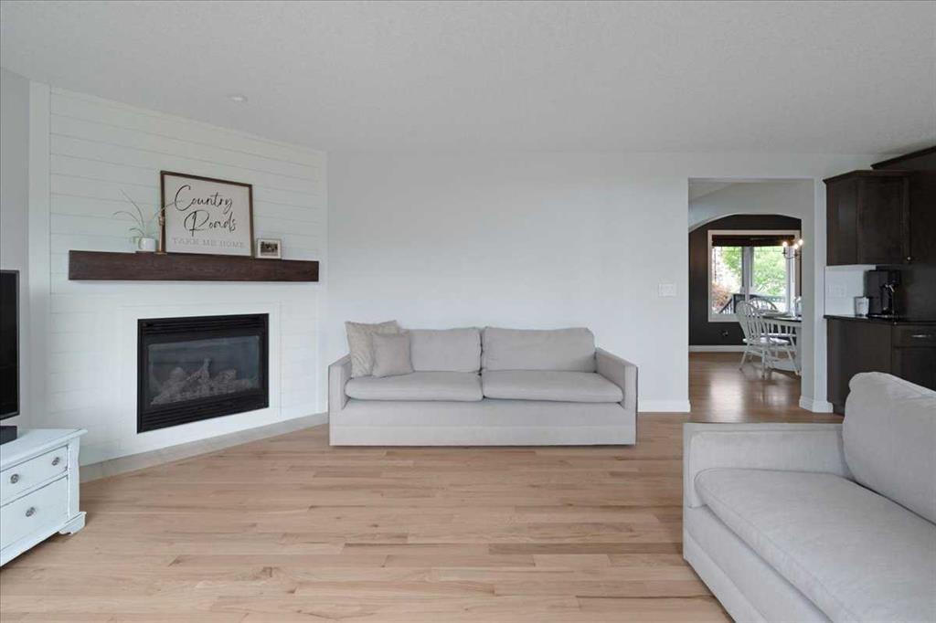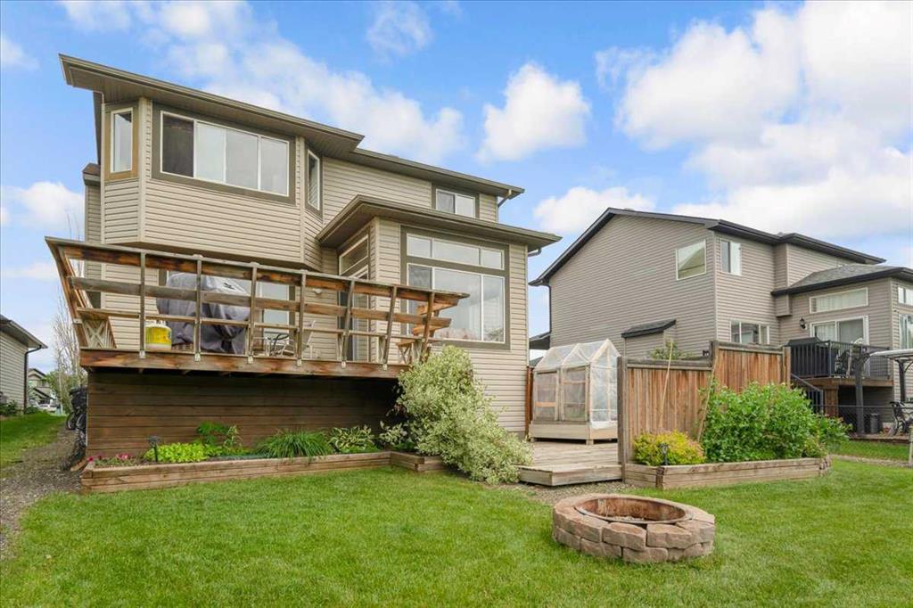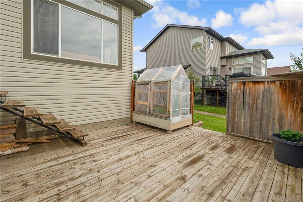 OPEN HOUSE SUNDAY SEPTEMBER 7 11AM-2PM COME AND FALL IN LOVE!!! IMMEDIATE POSSESSION AVAILABLE!!! Welcome home!!! This beauty is located conveniently on a great street and backs onto a green space and is a short walk to the lake, spray park, pump track and park!! When you walk in you are welcomed by so many neat features from the converted closet at the entrance that is stylish and practical. The dining room that is painted a stunning grey and could also be used as a sitting room or a home office. Walk into the kitchen living room and you will see granite counter tops, new backsplash, new pantry door and new lighting. Tons of natural light floods this room making it a dream to work in. The living room is a generous size and features a gas fireplace perfect for taking the chill off on those cold winter nights. A sliding patio door leads out onto the 2 tired deck that has built in seating! The floors have all been redone checking off all the things on the to do list. Upstairs is a huge bonus room and stunning hardwood floors through out the upper level. 2 good sized bedrooms and another 4 piece bath are located on this level. The primary bedroom features a large walk in closet and a 4 piece ensuite. Some of the tech features include a My Q wifi garage door opener, Eco B thermostat, August smart lock, Ring door bell and camera and a keypad on the garage. This house is move in ready and a must see!!!