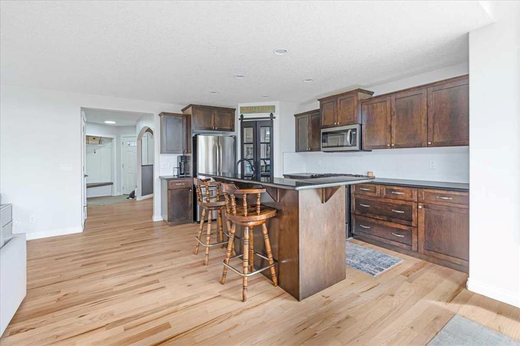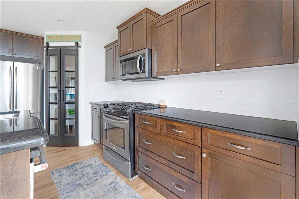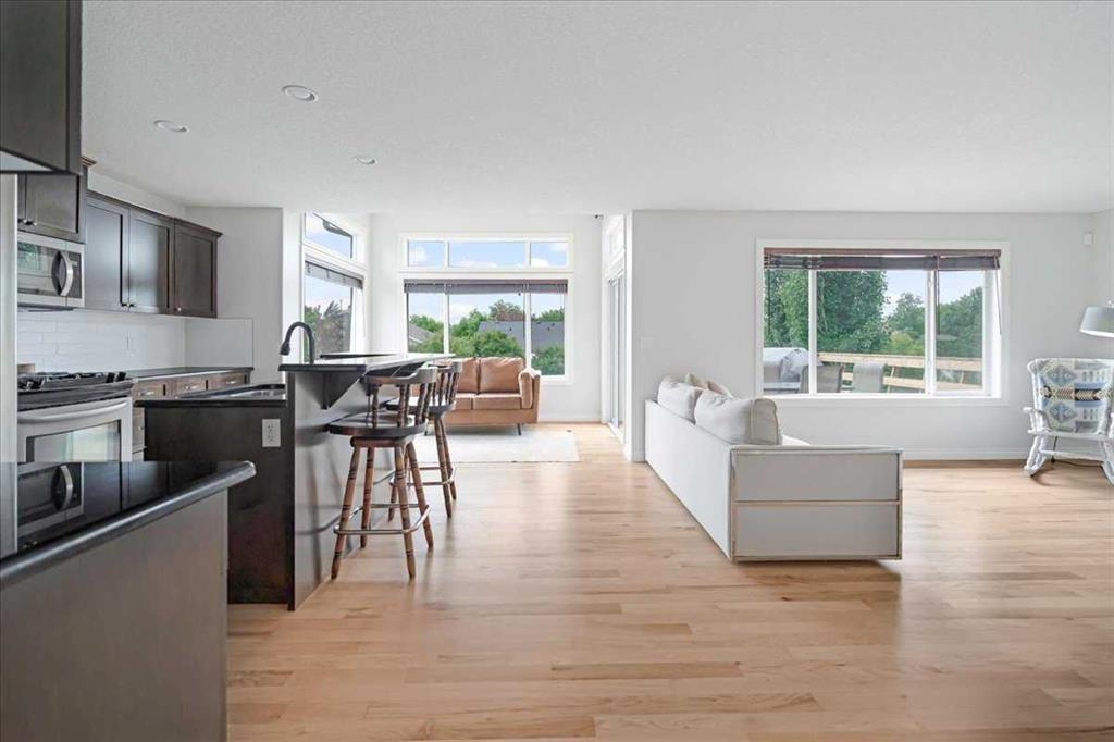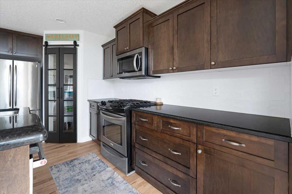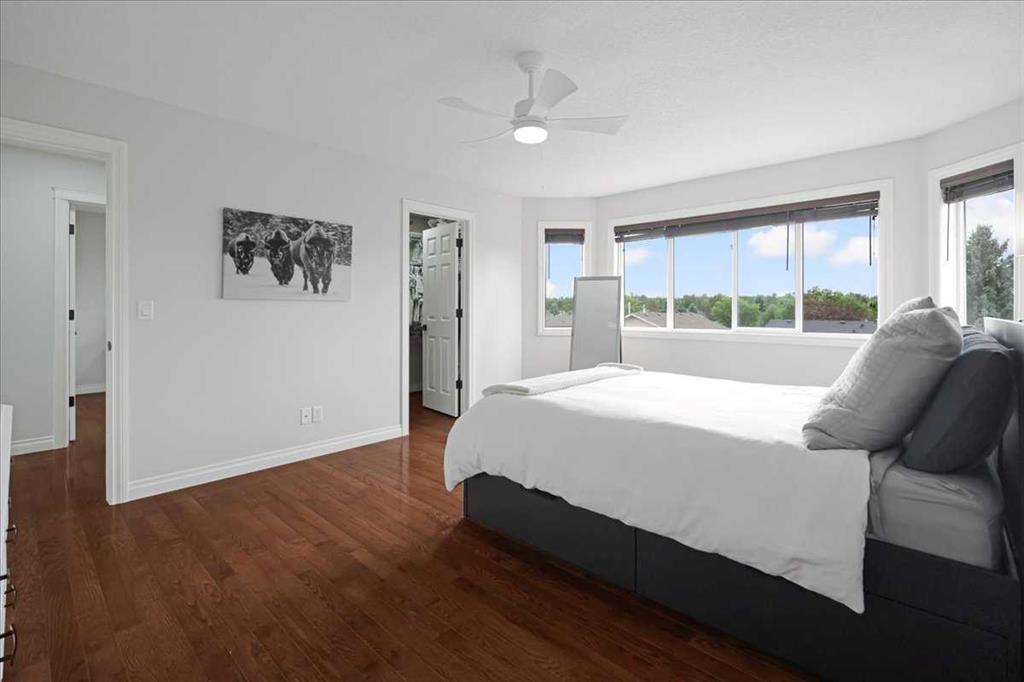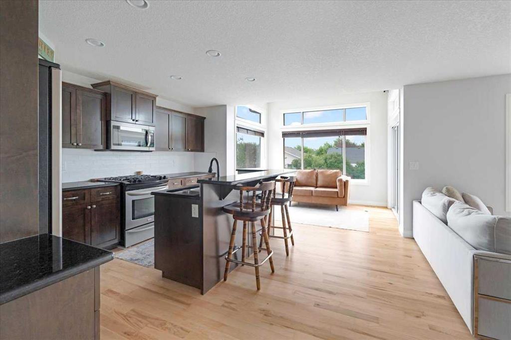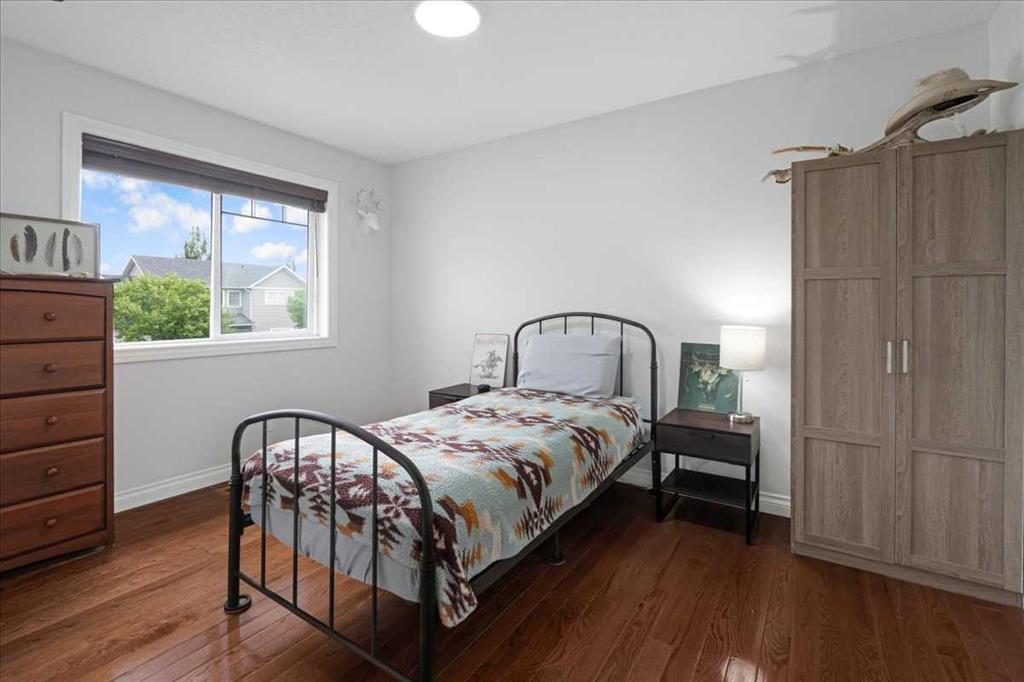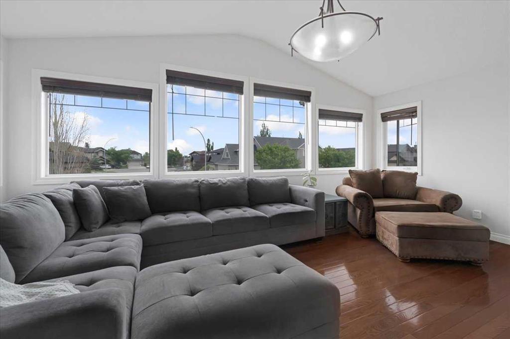 OPEN HOUSE SUNDAY SEPTEMBER 7 11AM-2PM COME AND FALL IN LOVE!!! IMMEDIATE POSSESSION AVAILABLE!!! Welcome home!!! This beauty is located conveniently on a great street and backs onto a green space and is a short walk to the lake, spray park, pump track and park!! When you walk in you are welcomed by so many neat features from the converted closet at the entrance that is stylish and practical. The dining room that is painted a stunning grey and could also be used as a sitting room or a home office. Walk into the kitchen living room and you will see granite counter tops, new backsplash, new pantry door and new lighting. Tons of natural light floods this room making it a dream to work in. The living room is a generous size and features a gas fireplace perfect for taking the chill off on those cold winter nights. A sliding patio door leads out onto the 2 tired deck that has built in seating! The floors have all been redone checking off all the things on the to do list. Upstairs is a huge bonus room and stunning hardwood floors through out the upper level. 2 good sized bedrooms and another 4 piece bath are located on this level. The primary bedroom features a large walk in closet and a 4 piece ensuite. Some of the tech features include a My Q wifi garage door opener, Eco B thermostat, August smart lock, Ring door bell and camera and a keypad on the garage. This house is move in ready and a must see!!!