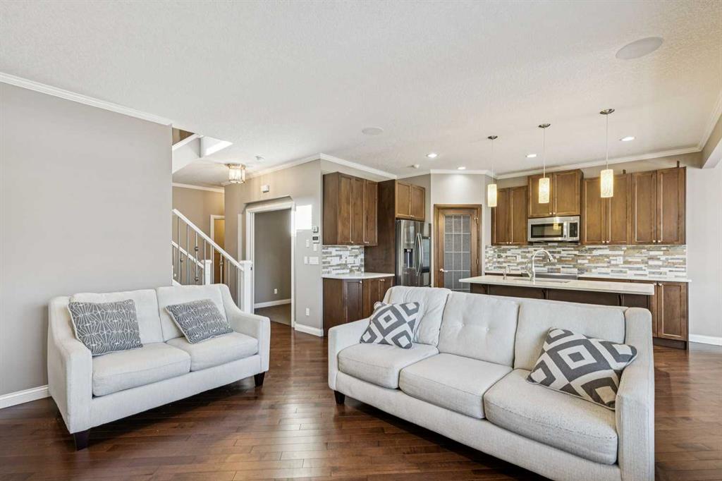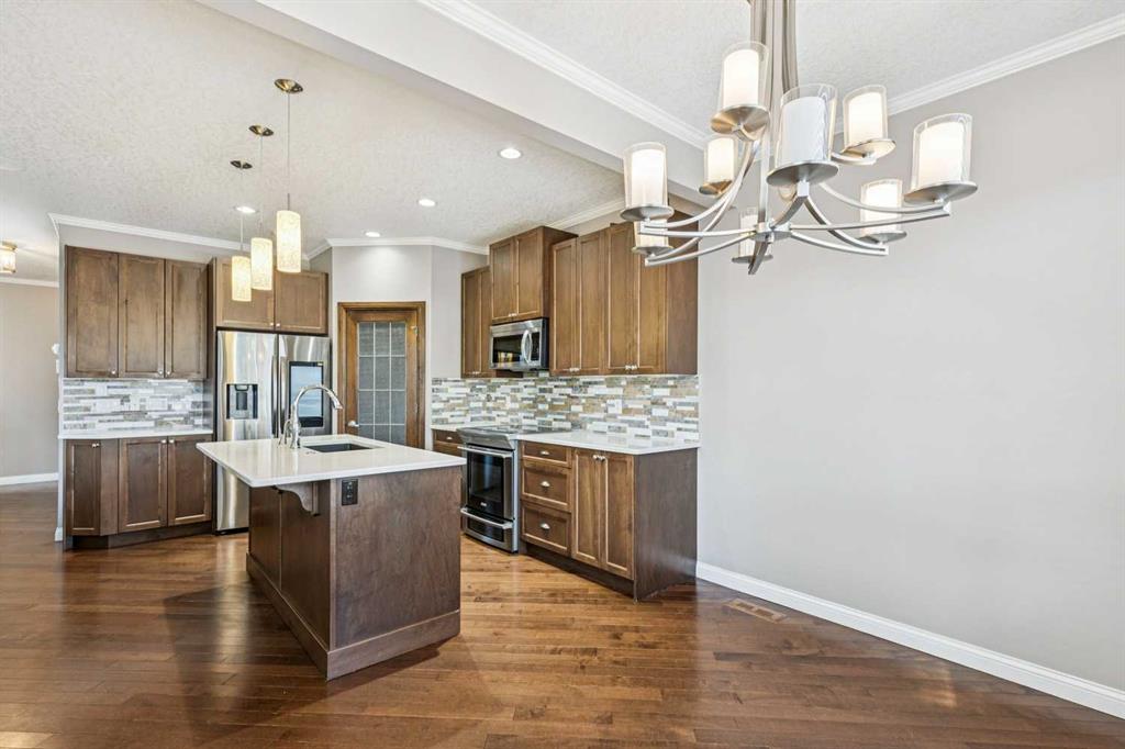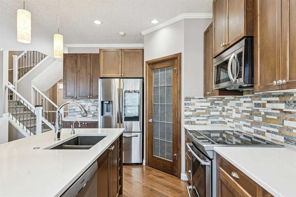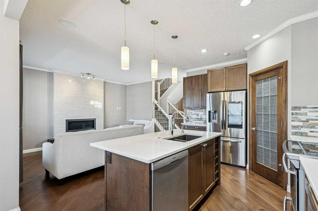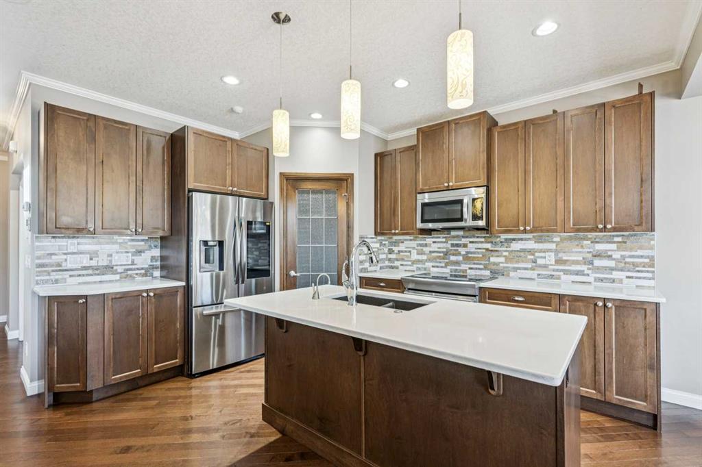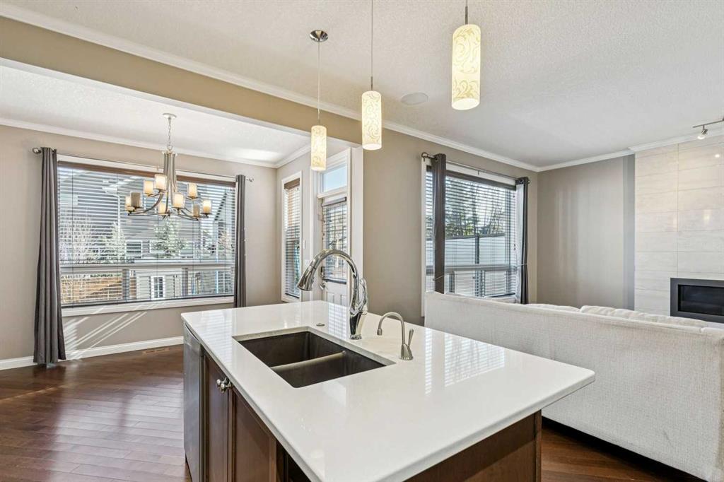 Located on a quiet street in the highly sought-after southwest community of Cougar Ridge, your beautifully appointed two-storey home offers 2,006 sq. ft. of thoughtfully designed living space above grade ++ a FULLY FINISHED basement offering an additional 860 sq ft. Built by Shane Homes and enhanced with numerous upgrades and beautiful finishes, the home perfectly blends everyday comfort with inviting spaces for entertaining your friends and family. Your main level features a bright, open-concept layout anchored by an impressive chef’s kitchen. An OVERSIZED ISLAND, quartz countertops, abundant cabinetry, stainless steel appliances, and a convenient corner pantry deliver both style and functionality. The adjoining living room is filled with NATURAL LIGHT from expansive windows and highlighted by a striking modern GAS FIREPLACE that creates a warm, welcoming focal point. The dining area flows seamlessly to the east-facing rear deck and fully fenced backyard, complete with a BBQ gas hookup—ideal for morning coffee or summer barbeques with your friends & family. Additional highlights on the main floor include a private den or office behind elegant FRENCH DOORS, a powder room, and a practical mudroom with shelving and direct access to the attached INSULATED double garage. As you make your way upstairs, you’ll find three generously sized bedrooms, two full bathrooms, and a spacious BONUS ROOM flooded with west-facing natural light—the IDEAL space for family movie nights or relaxing at the end of the day. The primary suite offers a walk-in closet and a well-appointed ensuite featuring a stand-alone glass & tile shower and a luxurious corner soaker tub. Your fully developed lower level adds valuable living space with a fourth bedroom, an additional full bathroom, a comfortable family room, and AMPLE STORAGE. Comfort is ensured year-round with CENTRAL AIR CONDITIONING, while recent updates include a new hot water tank (2023) and FRESH PAINT throughout, giving the home a bright, refreshed feel. Outside, the large east-facing DURADEK vinyl deck with privacy glass provides an ideal setting for outdoor entertaining while the yard offers plenty of space for children and pets to play. Ideally located just minutes from the slopes and recreation at Canada Olympic Park (WinSport), the scenic pathways and pond within the community, playgrounds, the expansive trails of Paskapoo Slopes, shopping, and restaurants—this home offers an exceptional blend of convenience, recreation, and NATURAL BEAUTY. Cougar Ridge offers excellent education options with public school catchments including Cougar Ridge, West Springs, and the highly sought after Ernest Manning, along with respected Catholic and private alternatives nearby such as St. Joan of Arc, The Waldorf, and Calgary French and International School. With easy access to Stoney Trail Ring Road, weekend escapes to our majestic Rocky Mountains—whether for hiking or skiing—are just over an hour away. You will LOVE this JEWEL of a home!