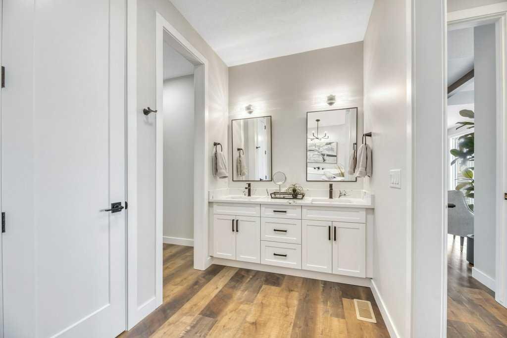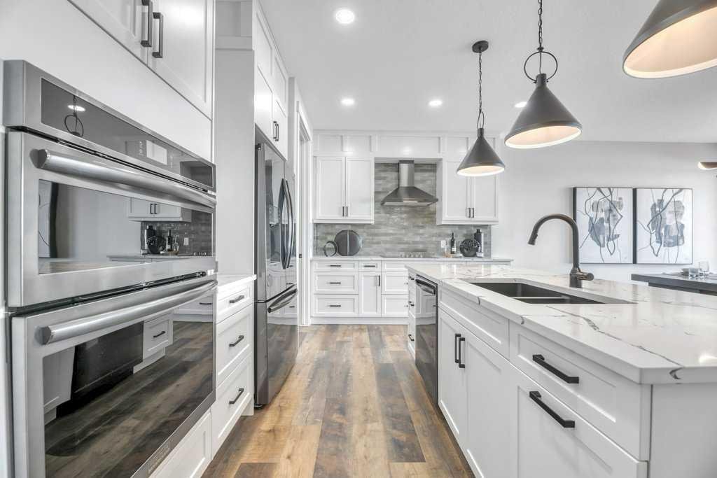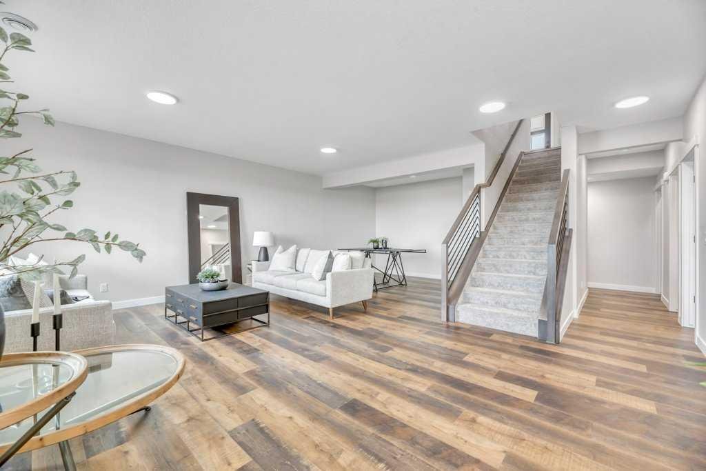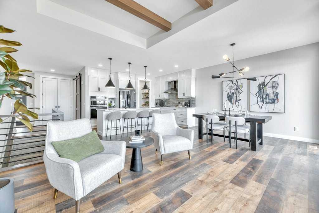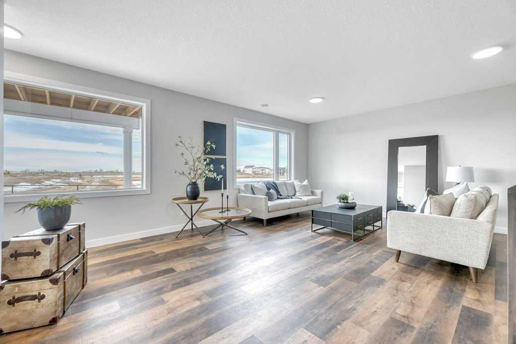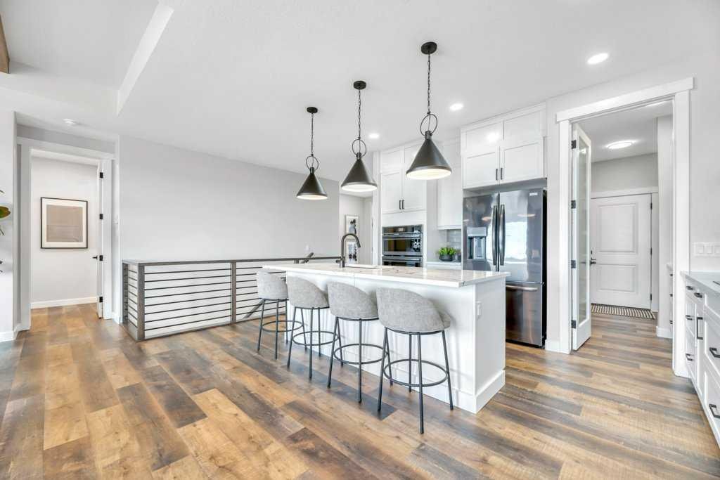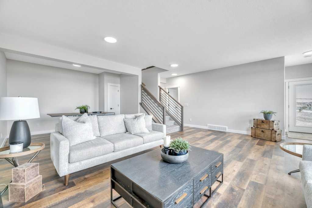 WELCOME HOME— Thoughtfully designed & Timeless! Check out this CUSTOM BUILT FULLY FINISHED Bungalow Trilogy show home! This home is ready for a family to make it home! From the moment you walk in you are welcomed by all the natural light, and all the views that Lakewood has to offer! Open concept kitchen with tonnes of storage and massive island open to the living room and dining room. Perfect for entertaining! All the details are what take this home to the next level–> CUSTOM there was nothing missed in this curated design from top to bottom! Dining room walks onto the large maintenance free deck that will steal your heart with the views of the pond and the sunsets! The kitchen,dining and living room will capture your attention with the well thought out lighting, and the custom fireplace and the BEAMS!!!- the beams in the living room add extra character and thought! The main floor is complete with walk through pantry, main floor laundry, a huge back porch perfect for busy families! The front room can be used an office or another bedroom. The Primary suite is an oasis – big windows, and a spa like ensuite, and huge walk in closet! Downstairs will not disappoint, 2 huge bedrooms another full bath and a massive family room and games are that walk out to the concrete pad with access to the back yard! Home is complete with Ac! Vinyl plank flooring throughout- upgrades everywhere! Call you Realtor t book your private showing!