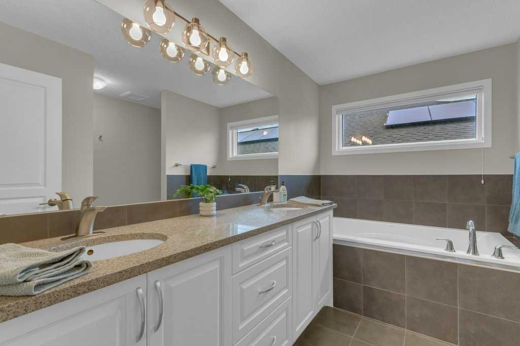 Upstairs, you’ll find a spacious bonus room, laundry, and three bedrooms, including a generous primary retreat with a walk-in closet and spa-inspired ensuite featuring dual sinks, a soaker tub, and a frameless ensuite shower with upgraded bathroom ventilation.