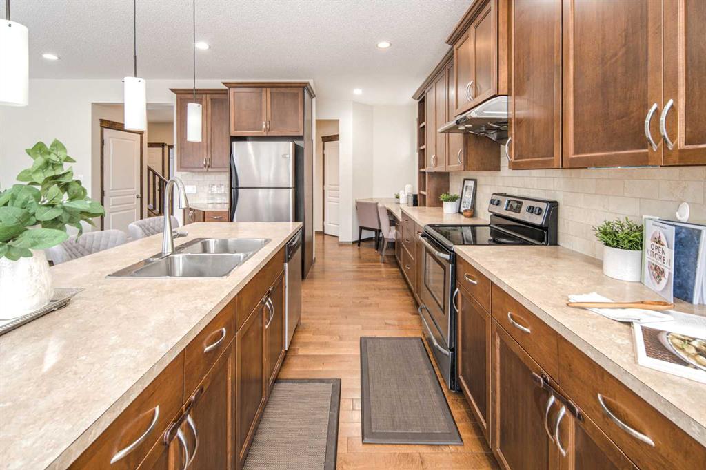 Open house Sunday Nov 30th, 1:00-4:00pm?Welcome to this beautiful 3-bedroom, 2.5-bathroom home tucked away on a quiet street in the highly sought-after community of Evergreen. Pride of ownership is unmistakable from the moment you arrive, with impressive curb appeal enhanced by a new roof and complete exterior siding replacement (2021). Inside, a grand front foyer welcomes you with gleaming maple hardwood floors and flush-mount vents. The expansive chef’s kitchen is a true showpiece, showcasing rich maple cabinetry, stainless steel appliances, a timeless tile backsplash, a walk-through pantry, and an oversized central island perfect for cooking, entertaining, and gathering. Connected to the kitchen, the spacious living room features a gas fireplace with a contemporary mantel and tile surround, while the bright dining nook and living area are framed by large windows that fill the space with natural light. main floor highlights include a private half bath, a convenient laundry area, and a fully insulated and double garage. Both the main floor and second level feature rare 9-ft ceilings, adding to the home’s open and airy feel. Upstairs, two generous secondary bedrooms share a full 4-piece bathroom, while the substantial bonus room is ideal for family movie nights or a cozy lounge space. The serene primary suite overlooks the lush backyard and features a spa-inspired ensuite with a luxurious soaker tub, separate tiled shower, and a walk-in closet with custom built-ins. The lower level is undeveloped and ready for your personal touch. Ideally located just steps from greenspace, an elementary school, and Fish Creek Park, and only minutes from Costco, shopping, and the ring road, this home perfectly blends style, comfort, and convenience.