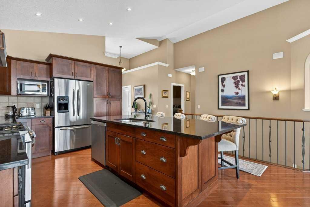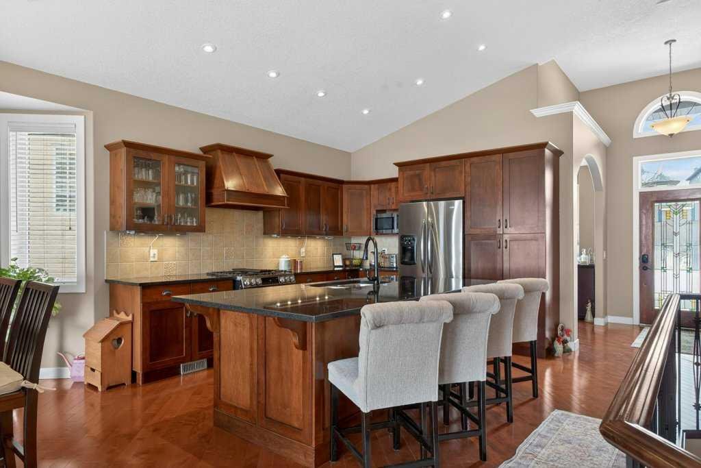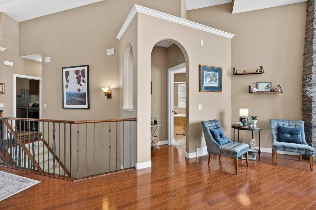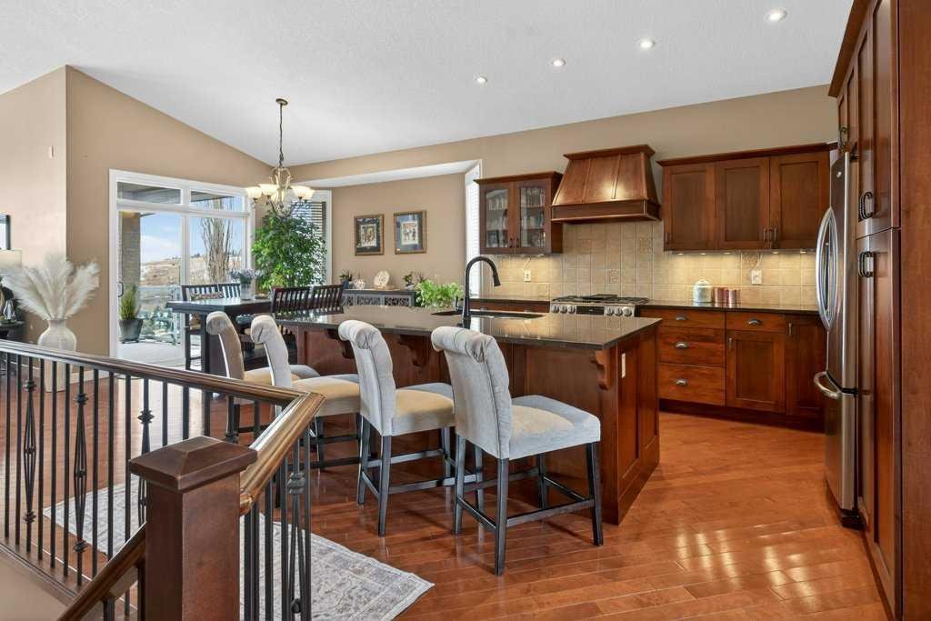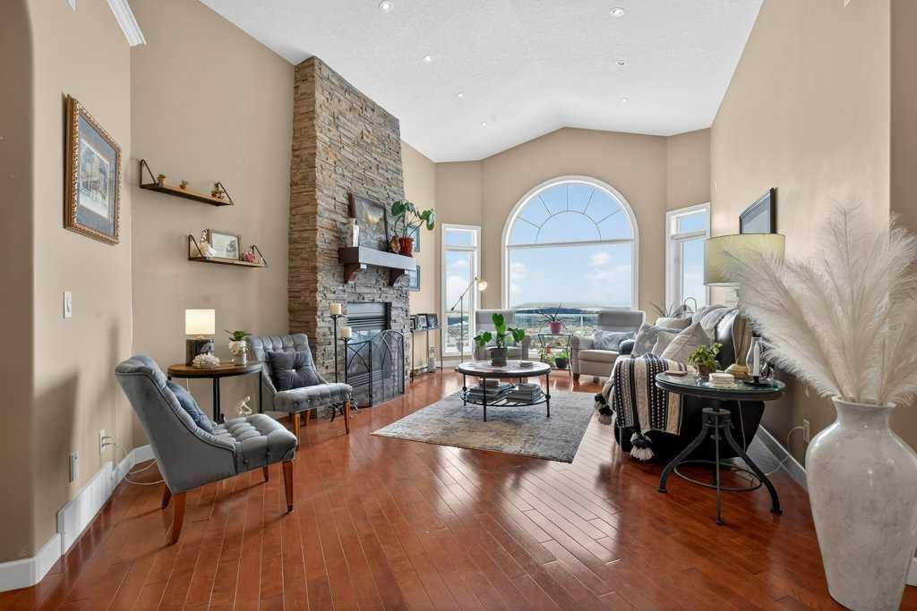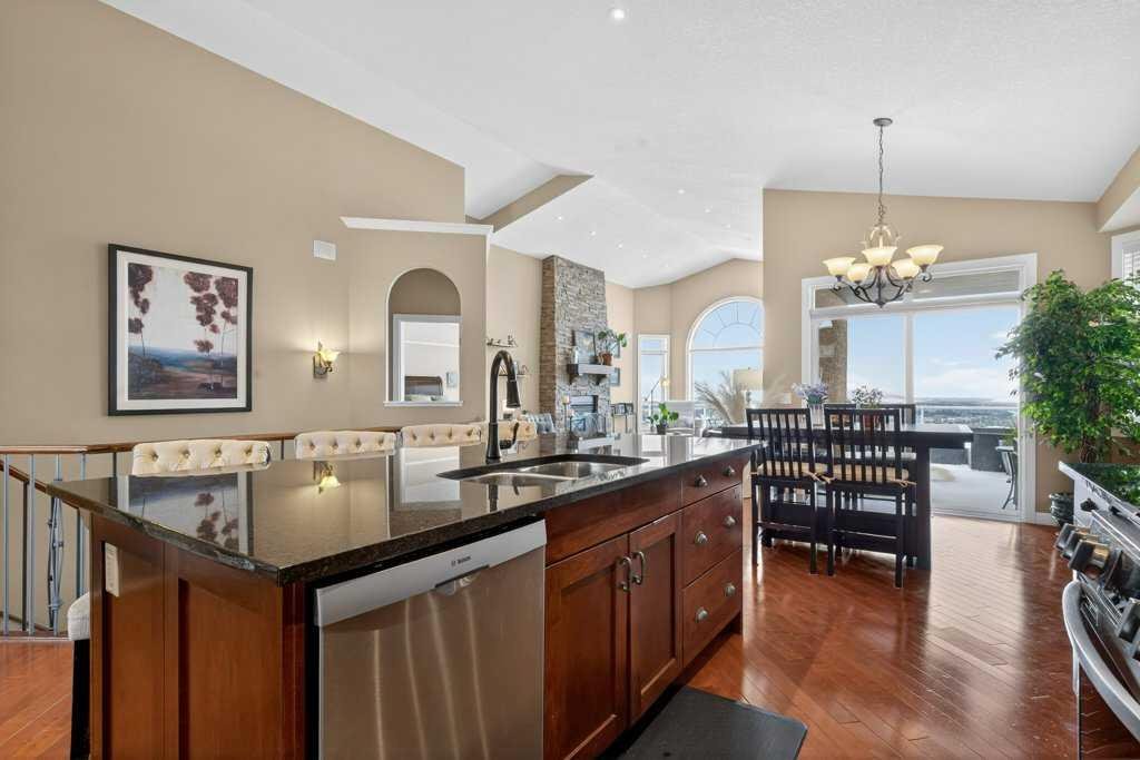 Perched in a prime SW-facing location, this exceptional walkout bungalow offers unobstructed panoramic views of the Rocky Mountains, Bow River valley, golf course, and the Town of Cochrane. With nearly 3,200 sq. ft. of developed living space, this impeccably maintained home blends timeless design with modern comfort.