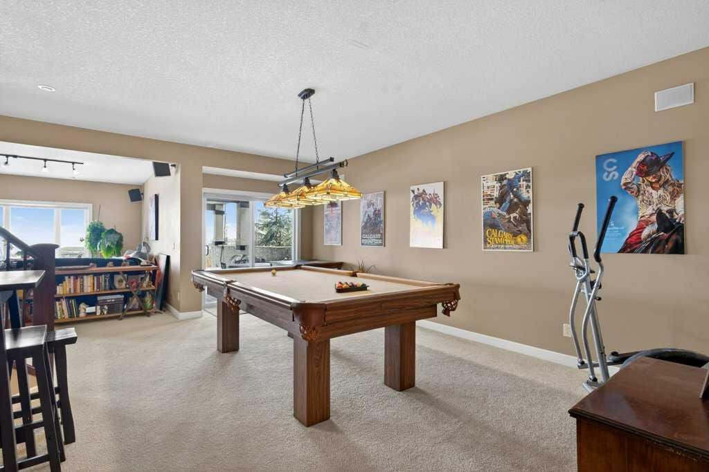 The fully developed walkout basement offers excellent additional living space, including in floor heating, a large family room with a fireplace, a spacious rec/games room complete with a pool table, and two additional bedrooms—one oversized. A full bathroom, dedicated utility room, and ample storage enhance the functionality of this level, making it ideal for guests, family, or multi-generational living.