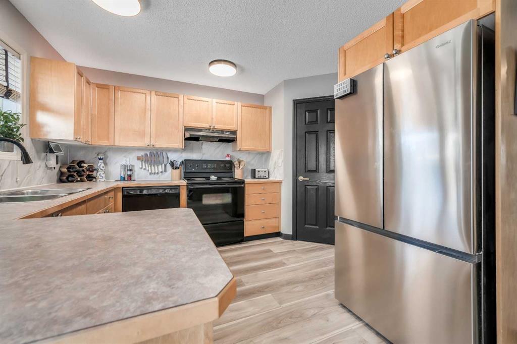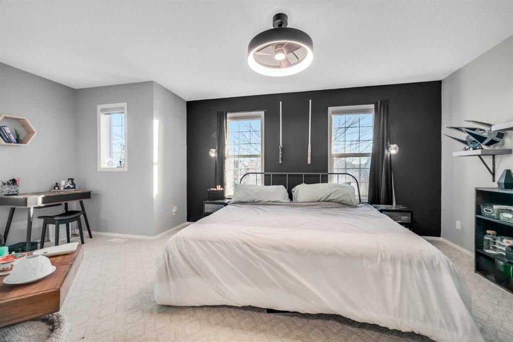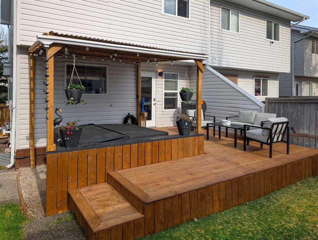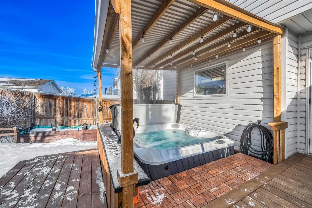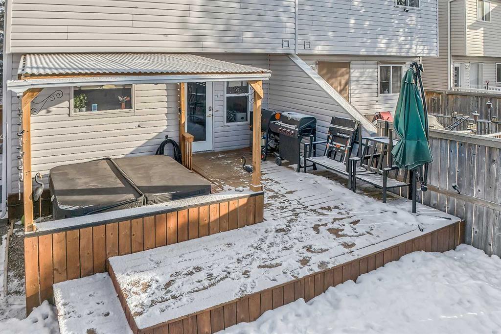 Welcome to this beautifully renovated, light-filled semi-detached home in the highly sought-after community of Evergreen. Thoughtfully updated from top to bottom, this three-bedroom half duplex perfectly blends modern finishes with warmth, comfort, and everyday functionality—truly a home you can move into and enjoy from day one. From the moment you arrive, the charming curb appeal and tasteful exterior set the tone. Step inside and you’re immediately greeted by a bright, welcoming foyer that opens into a sun-drenched living room, where large windows allow natural light to pour in throughout the day. Fresh paint, new luxury vinyl flooring, updated lighting, modern door hardware, and stylish finishes create a clean, contemporary aesthetic while still feeling inviting and warm. The refreshed kitchen is both beautiful and functional, featuring a new backsplash, updated faucet, a brand-new refrigerator, ample cabinetry and counter space, and a large step-in butler’s pantry—a rare and highly desirable feature. With room for a kitchen table, this space is ideal for casual family meals, morning coffee or evenings spent entertaining. Convenient main-floor laundry room comes with a new stacked LG washer/dryer which adds to everyday ease, with additional hookups available in the basement. Upstairs, natural light continues to shine through three generously sized bedrooms. The oversized primary retreat offers a peaceful escape complete with a walk-in closet, while two additional well-proportioned bedrooms, a full bathroom, and a linen closet complete the upper level—perfect for families, guests, or a dedicated home office. The partially finished basement expands your living space with new flooring, a spacious recreation area, and a cleverly designed hidden office or workshop tucked behind a built-in bookshelf—a truly unique and functional touch. The basement is insulated and ready for further development if desired. Major mechanical upgrades provide peace of mind, including a new furnace, hot water tank, and roof, all replaced within the last four years or less. Step outside to your west-facing backyard oasis, where sunshine fills your afternoons and evenings. The stunning 16-foot deck with pergola is perfect for entertaining, relaxing, or enjoying quiet moments outdoors. And yes—you are reading this right—the Jacuzzi J-245 seven-seater hot tub, only two years old, is included with the home! Completing this exceptional package is a newly built 22’ x 22’ oversized garage, offering abundant space for vehicles, storage, or a workshop. Ideally located close to parks, playgrounds, schools, and everyday amenities, this Evergreen gem truly checks every box. This is more than a home—it’s a lifestyle filled with light, comfort, and thoughtful design. Book your private showing today and come on Buy!