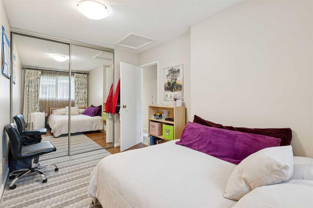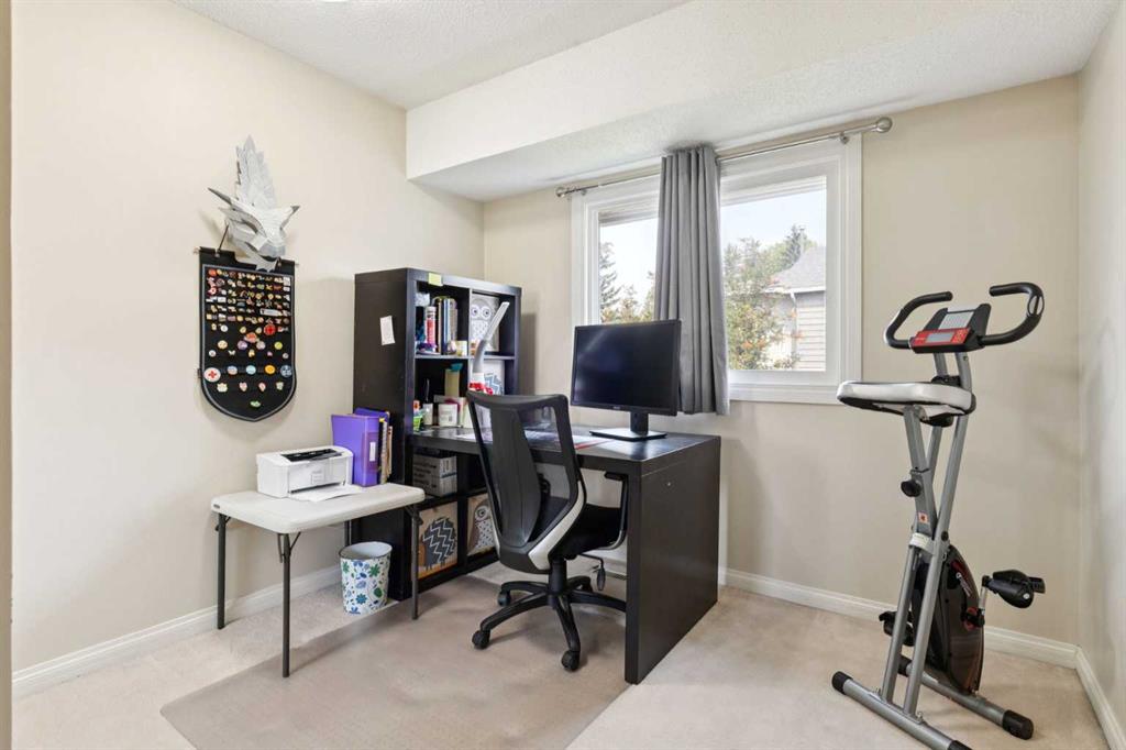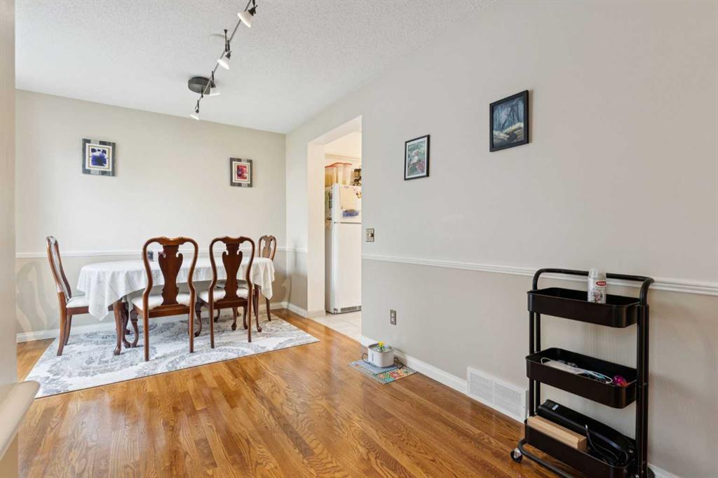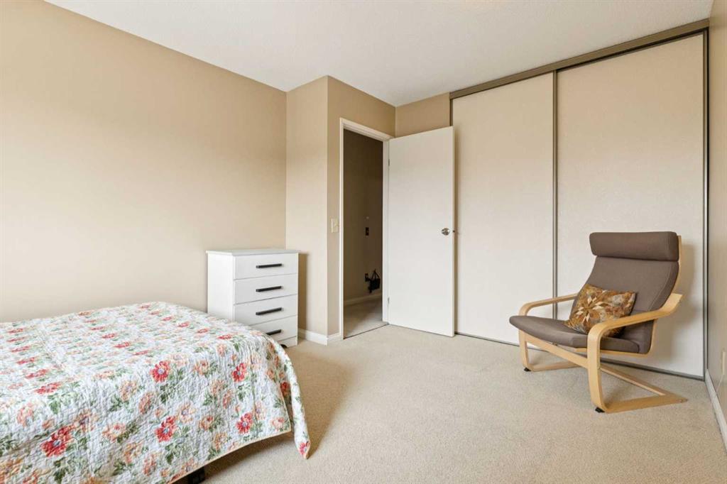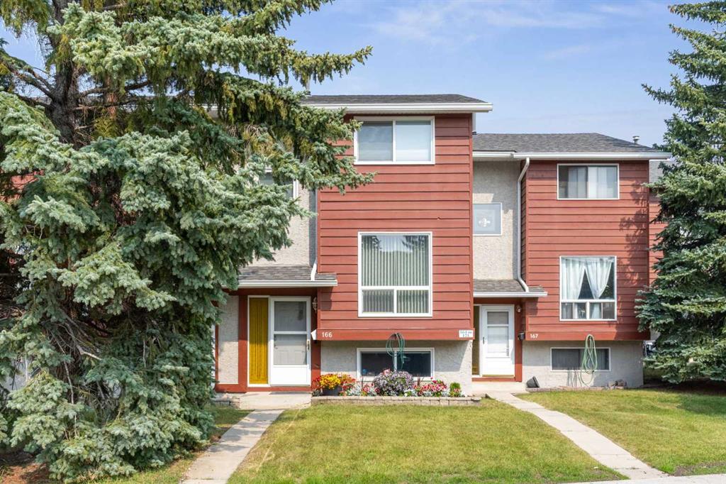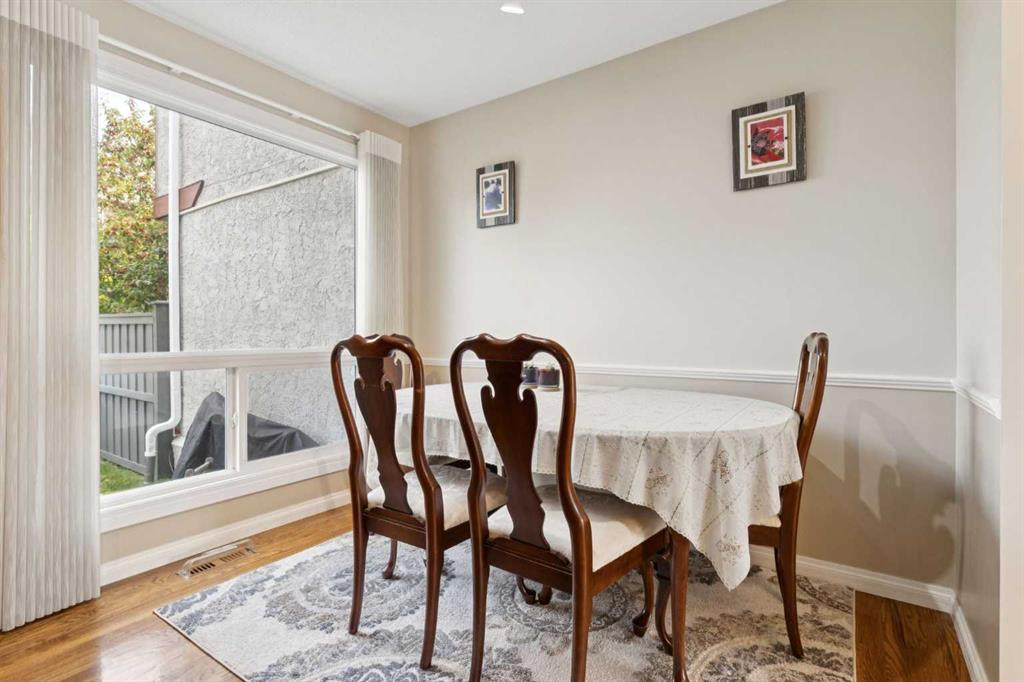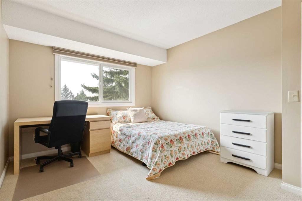 **OPEN HOUSE Saturday, September 6th 1:00 – 3:00** Exceptional opportunity to own a spacious 4 bedroom, 3 bathroom home with over 1,600sqft of developed living space! This property has been thoughtfully UPDATED over the years, including WINDOWS, FLOORING, and more. Step into the welcoming foyer and up to the main level, where rich OAK HARDWOOD floors flow throughout. LARGE WINDOWS fill the living room with NATURAL LIGHT, creating a bright and inviting space that seamlessly connects to the kitchen, complete with UPDATED APPLIANCES. The expansive dining room offers versatility – perfect for entertaining or easily adaptable as a combined dining area, office, or den. The back door leads to a PRIVATE, TREED PATIO and green space BACKING ONTO A SERENE PARK-LIKE SETTING. A convenient half-bath completes the main floor. Upstairs, you’ll find three comfortable bedrooms, including a generous-sized master bedroom, all sharing a full bathroom. The lower level has been DEVELOPED into a spacious secondary master bedroom with a PRIVATE ENSUITE, which could also serve as a family room or home office. A large laundry area provides ample storage. The WELL-MANAGED COMPLEX is ideally located, with an assigned parking stall by the front entry (current owner has rented the adjacent parking stall through the Board). This home has convenient pathways leading to a gorgeous treed walkway and a park. It is located WALKING DISTANCE to elementary schools and major transportation routes. It is also conveniently close to the Dalhousie LRT station and a wide range of amenities. A wonderful opportunity in a mature, family-friendly community!
