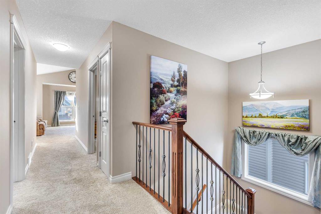 Location, Location, backing into the Canal & pathway. This original owner home offers numerous upgrades & features which include: 9′ ceilings, vaulted bonus room, over 3300 sq ft of developed living space, total of 5 bedrooms & 3.5 bathrooms, walkout lower level, upgraded stainless steel appliances, newer composite deck, hardwood, granite in kitchen, wrought iron railings, 2 furnaces, upper furnace has air conditioning, R.I .for speakers on main & upper ensuite, gas line on deck, lower patio area from walkout, manual underground sprinklers in front yard & so much more. The main floor features a 2pc bath, flex room, laundry area, spacious great room with gas fireplace & a large kitchen that offers a pantry, island with eating bar & a nook that has access to the over sized deck that over looks the canal. The upper floor features a 4pc bath, vaulted bonus room & 4 good size bedrooms. The primary bedroom offers a walk in closet & full ensuite. The lower walk out features a bedroom, den, 4pc bath & a family room that has access to the patio/yard. This home shows pride of ownership & is located on a quiet street close to schools, shopping, green spaces & all other amenities. Click on link to view 3D walk through.