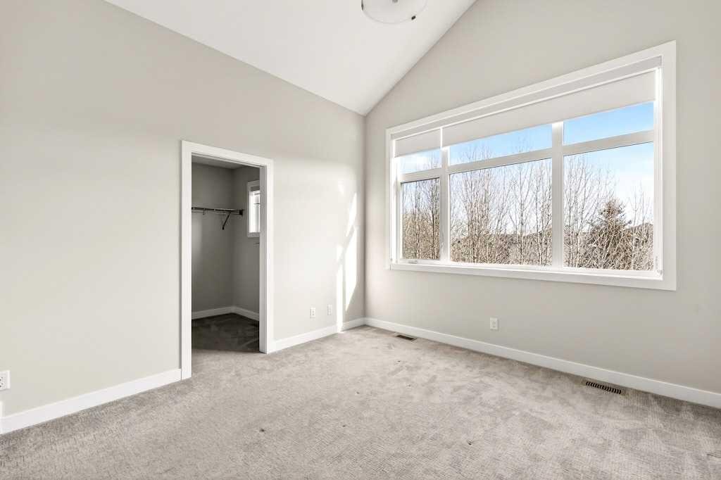 Exceptionally private and beautifully positioned, this ravine-backing home offers the kind of setting that feels rare, quiet, green, and uninterrupted, with peaceful views and no neighbours behind. From the moment you step inside, the home feels bright and elevated: soaring 9’ ceilings, expansive windows, and an open-concept main floor designed to take full advantage of the natural light and the landscape beyond. The living room is warm and welcoming, flowing seamlessly into the dining area, perfect for intimate dinners or effortless entertaining, while the kitchen anchors the space with a polished, modern finish: two-tone cabinetry, a crisp white backsplash, quartz countertops, and stainless-steel appliances that feel both current and timeless. Upstairs, the primary suite is a true retreat with vaulted ceilings, a walk-in closet, and a private ensuite featuring dual sinks and quartz finishes. Secondary bedrooms are generously sized and thoughtfully placed alongside a full bath, with upper laundry conveniently placed nearby for functionality. The fully developed walk-out basement expands your living space with an impressive recreation room and a 4-piece bathroom, ideal for movie nights, hosting, or creating the ultimate lounge, while sliding doors lead to a concrete patio where the ravine becomes your backdrop. Enjoy the added value of an extra-large attached garage with ample storage, ultra-efficient systems including an HRV for comfort and low utility bills, a high-capacity water softener, and A/C already in place. With two scenic ponds and pathways just steps away, a welcoming community atmosphere, daycare and local shops moments from your door, quick access to Highway 1 and the mountains, and Winsport nearby, this is refined, low maintenance living with a view that never gets old.