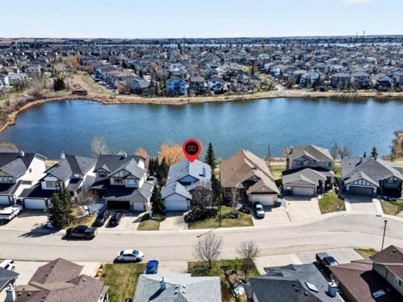 LAKEFRONT LIVING IN THE COVE, one of Chestermere’s most desirable communities! This fully finished, executive walk-out bungalow-style home sits on a massive 1/3+ acre lot backing directly onto Chestermere Lake! Offering over 4,900 sq. ft in total (with over 3,000 sq. ft. above grade), this property features a total of 5 bedrooms, 3.5 bathrooms, a fully developed walkout basement, an attached triple-car garage, and a private dock with a private boat lift. A bright, open-to-above foyer welcomes you into the main level, highlighted by 10-ft ceilings, crown moulding, built-in speakers, and expansive windows overlooking the lake. The oversized kitchen is designed for both cooking and entertaining, complete with stainless steel appliances, including a French door fridge, a wall oven and microwave, a 5-burner gas cooktop, an undercounter beverage fridge, a walk-in pantry, granite countertops, a triple-basin sink, a prep counter with a second sink, and a casual dining area overlooking the water. The adjacent 2-storey living room features a gas fireplace with a stone surround and double patio doors that open to a large stamped concrete deck with incredible lake views. The main-floor primary suite offers direct water views through multiple bay windows, a walk-in closet with built-ins, and a spa-inspired 5-piece ensuite with soaker tub, glass shower, and dual vanity sinks. A mudroom, powder room, laundry, and interior direct access to the heated, epoxy-finished triple garage complete this level. Upstairs, a spacious bonus room with a private balcony overlooks the lake, accompanied by two additional bedrooms with walk-in closets and a well-appointed main bath with dual sinks and separate tub/shower areas. The fully-developed walk-out basement features hydronic in-floor heating, a large recreation space with media built-ins, a wet bar, wine storage, two additional bedrooms, a full bath, and extensive storage. Outside, the enormous, sunny West-facing landscaped backyard enjoys incredible lake views, stamped concrete pathways and multiple patio areas, plus a private dock with a boat lift. and storage shed. Additional highlights include cement shingle roofing, soffit lighting, dual A/C units, and 200-amp service. Located near schools, shopping, parks, and recreation, this is a rare opportunity to own a true lakefront property in one of Chestermere’s most desirable communities.