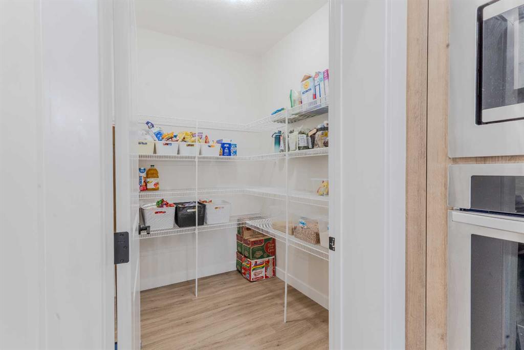 The fully functional kitchen features lots of cabinets fitted with LED lighting, high-end stainless-steel appliances, including wall oven and microwave. For your master chef skills, a sizable pantry, and a large quartz island with a sink with gold details