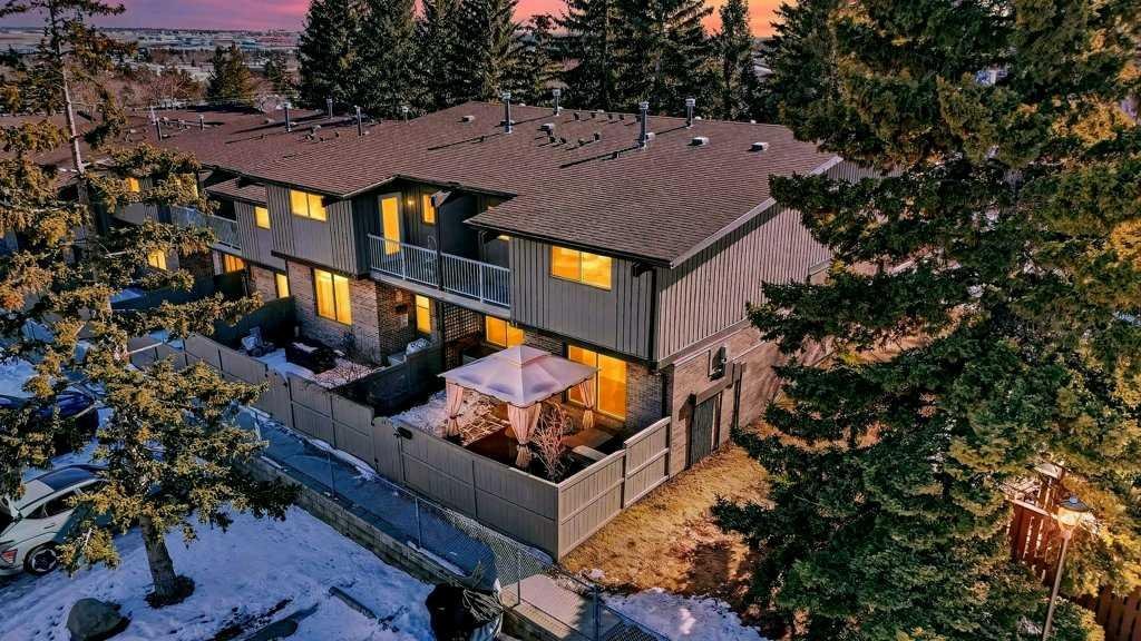 This is the one you’ve been waiting for! Welcome to this completely remodelled corner-unit townhouse in the heart of Huntington Hills. As you approach the home along the beautifully landscaped stone pathway, you’ll immediately notice the impressive outdoor space featuring a large deck with a fire table, gazebo, and bar area—an incredible setting for relaxing or entertaining guests. Step inside and you’ll be greeted by sleek new laminate flooring that flows seamlessly throughout the entire home. A bright and cozy dining nook leads into the modern kitchen, which showcases granite countertops, crisp white cabinetry and backsplash, pull-out shelving, stainless steel appliances, a brand new refrigerator, and both pot lighting and under-mount lighting for a stylish and functional cooking area. As you move through the home, you’ll notice that all light fixtures have been updated with contemporary designs. The spacious living room offers plenty of room and flexibility to arrange the space to suit your lifestyle. This level also includes a convenient laundry area and a generous storage space for all your extras. Heading upstairs, you’ll be impressed by the one-of-a-kind custom metal railing along the staircase. The primary bedroom is massive and features a door leading to your own private outdoor balcony. The second bedroom is also generously sized and offers open views. The updated 4-piece bathroom includes a new vanity, mirror, and toilet. The entire townhouse has been freshly painted and upgraded with new baseboards, doors, and trim, giving the home a clean and modern feel throughout. Your parking stall is conveniently located and sits beside a grassy area, with plenty of visitor parking available for guests. Ideally situated just steps from schools, shopping, transit routes, and the scenic pathways of Nose Hill Park, this pet-friendly complex welcomes both cats and dogs with board approval—perfect for animal lovers seeking a comfortable community. A beautifully updated home in a fantastic location—this is one you won’t want to miss! Check out the link to the great virtual tour!