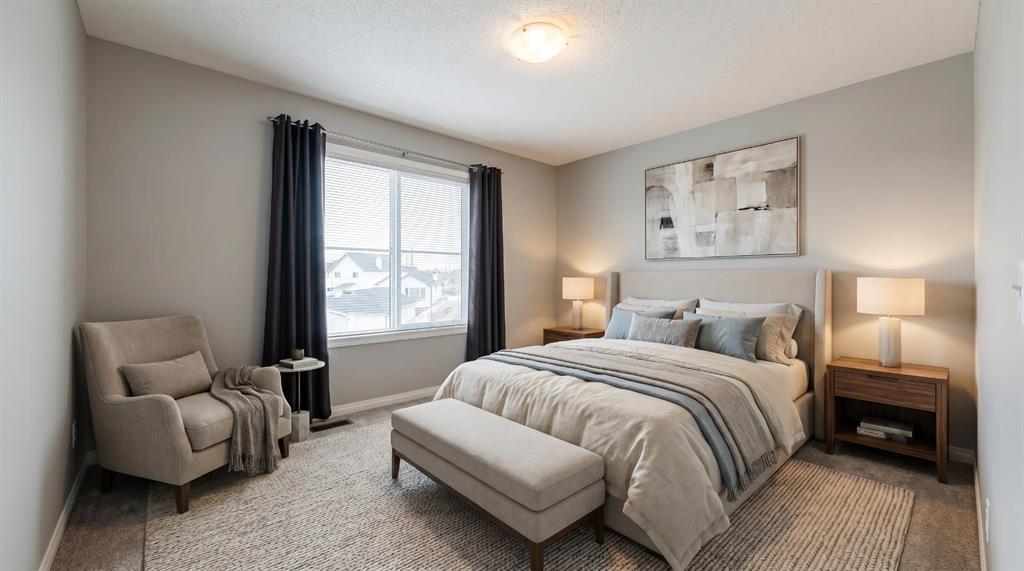 Welcome to this bright and well-maintained end unit townhouse in Copperfield, designed for comfort and functionality. Featuring two primary bedrooms, each with walk-in closets and private ensuite bathrooms, this layout is ideal for shared living, guests, or rental flexibility. The main living area impresses with soaring 12-foot ceilings and oversized windows that flood the space with natural light from the sunny west-facing exposure. A private yard and deck extend your living outdoors, while the end unit position offers added privacy with only one neighboring wall. Additional features include a large basement den or flex space perfect for a home office or gym, fresh professional paint throughout, a built-in vacuum system, and a new large-capacity washer and dryer. The attached insulated and drywalled single garage plus extended driveway provide convenient parking for two vehicles. The seller is offering a $5000 credit toward new carpet, giving buyers the opportunity to customize finishes to their taste. Located directly across from walking paths and a park, and within close proximity to South Health Campus, shopping and dining on 130th Avenue, and major routes including Deerfoot Trail, Stoney Trail, and 52 Street, this home offers both lifestyle and convenience. Probate has been granted and possession is negotiable. Whether you are a first-time buyer, downsizer, or investor, this 2 bed townhouse in Copperfield Calgary represents outstanding value in a sought-after southeast community. (Some photos virtually staged and rendered with AI for your reference) Don’t wait on this one! Call to book a showing and come see it today!