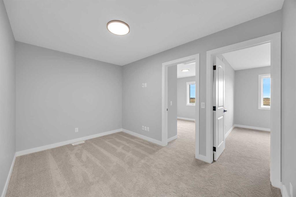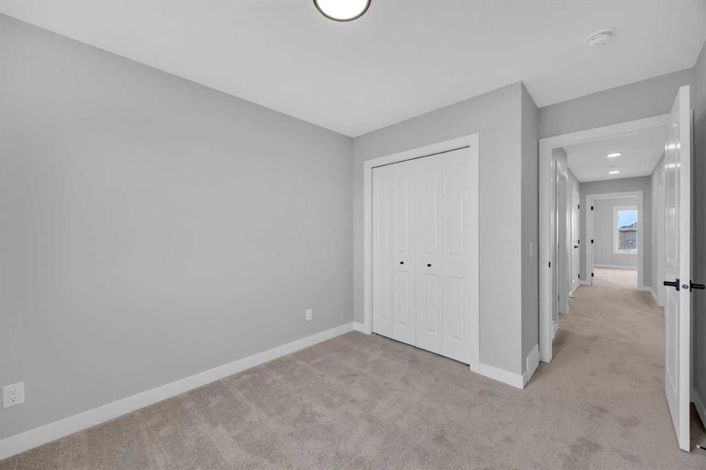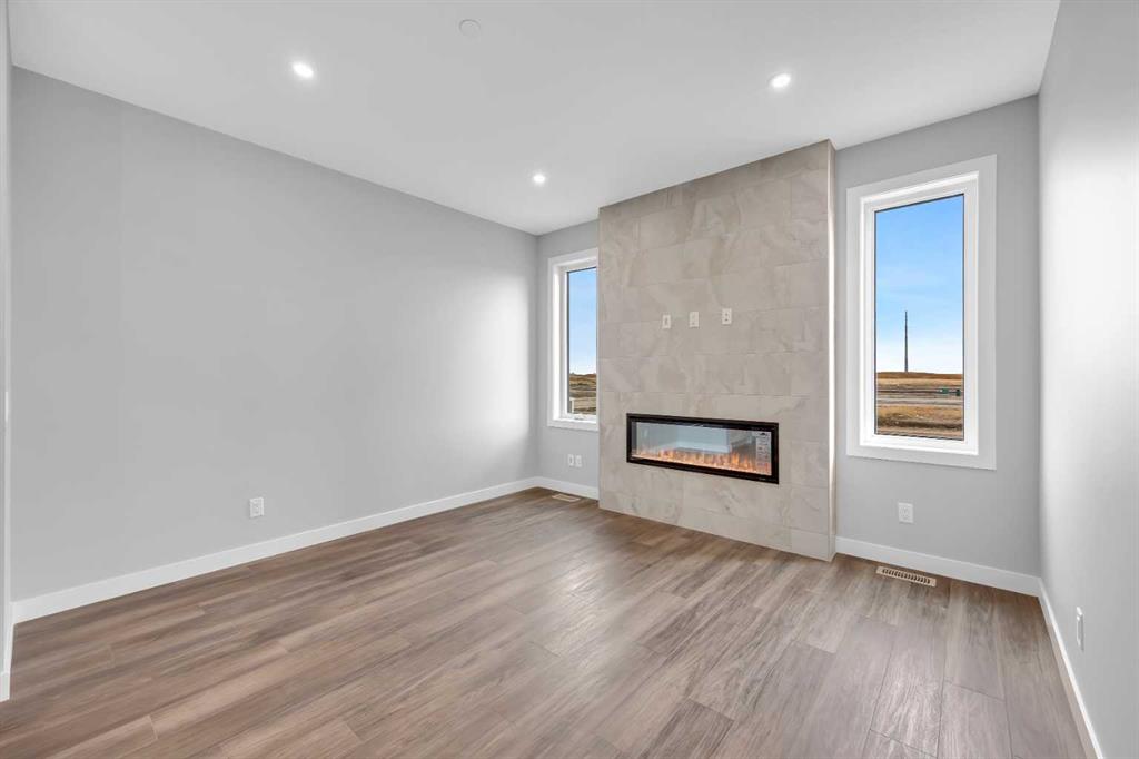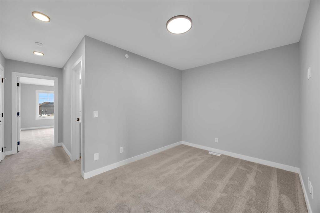 Introducing the Concord II by Broadview Homes, a completed home with immediate possession available in the southeast Calgary community of Hotchkiss. Offering 1,772 sq ft of thoughtfully designed living space, this new construction home in SE Calgary features 4 bedrooms, 3 full bathrooms, a main floor bedroom with a full bathroom, a central bonus room, and a side entrance, providing a layout that supports both everyday living and long term flexibility. The main floor is designed with functionality in mind, featuring an open concept layout that creates a seamless flow between the kitchen, dining, and living areas. A main floor bedroom paired with a full bathroom offers excellent versatility for guests, extended family, or multi-generational living. The kitchen is positioned at the heart of the home and includes a spacious layout with a central island, walk-in pantry, and ample cabinetry, creating a practical space for both daily use and entertaining. The great room is anchored by an electric fireplace with floor to ceiling tile, framed by windows on each side that bring in natural light and create a strong focal point within the space. The dining area and great room connect naturally, offering a bright and comfortable living environment. Upstairs, a centrally located bonus room provides additional living space that can function as a second lounge, media area, or home office. The primary bedroom features a walk-in closet and a private ensuite, creating a comfortable retreat. Two additional bedrooms, a full bathroom, and a dedicated upper floor laundry area complete the second level, adding convenience for day-to-day living. The basement is accessible through the side entrance, offering flexibility for future development and additional living space. Located in Hotchkiss, SE Calgary, this home offers access to scenic pathways, green spaces, and a planned 30 acre wetland that anchors the neighbourhood. With convenient access to Stoney Trail, the home is minutes from Seton’s shopping district, the YMCA, South Health Campus, and a wide range of amenities. A completed new construction home in SE Calgary offering immediate possession, a functional layout, and strong value in one of Calgary’s growing southeast communities.