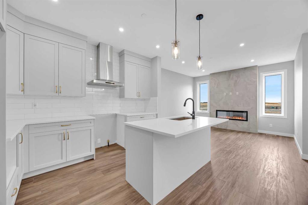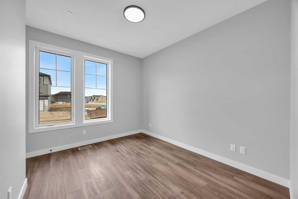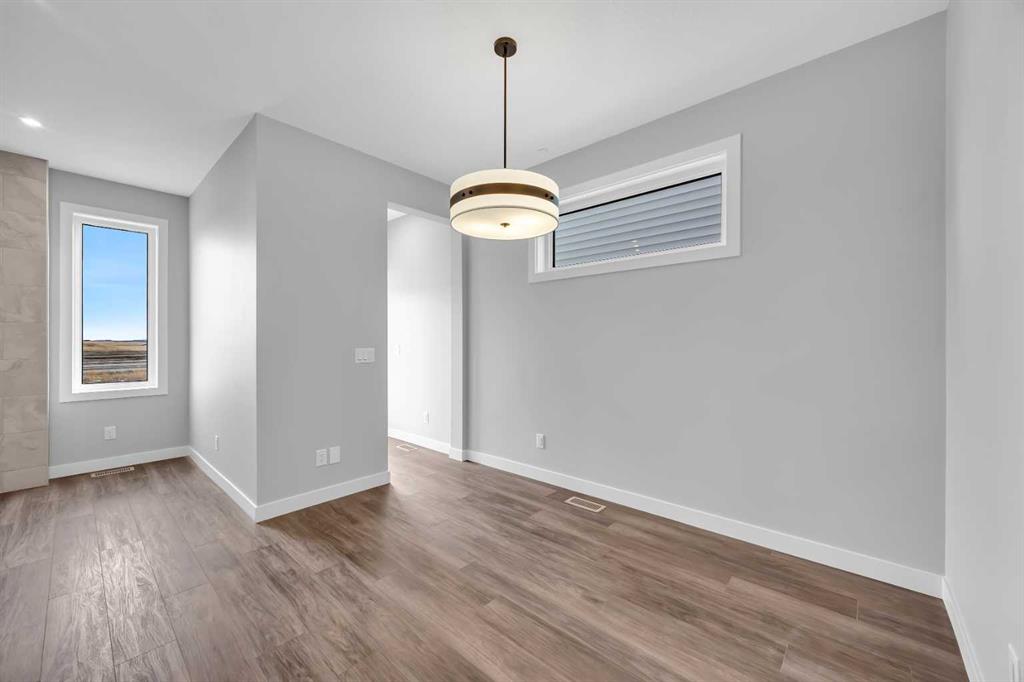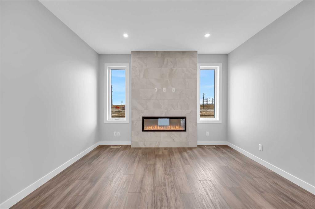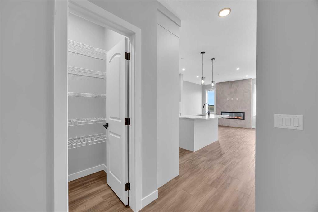 Introducing the Concord II by Broadview Homes, a completed home with immediate possession available in the southeast Calgary community of Hotchkiss. Offering 1,772 sq ft of thoughtfully designed living space, this new construction home in SE Calgary features 4 bedrooms, 3 full bathrooms, a main floor bedroom with a full bathroom, a central bonus room, and a side entrance, providing a layout that supports both everyday living and long term flexibility. The main floor is designed with functionality in mind, featuring an open concept layout that creates a seamless flow between the kitchen, dining, and living areas. A main floor bedroom paired with a full bathroom offers excellent versatility for guests, extended family, or multi-generational living. The kitchen is positioned at the heart of the home and includes a spacious layout with a central island, walk-in pantry, and ample cabinetry, creating a practical space for both daily use and entertaining. The great room is anchored by an electric fireplace with floor to ceiling tile, framed by windows on each side that bring in natural light and create a strong focal point within the space. The dining area and great room connect naturally, offering a bright and comfortable living environment. Upstairs, a centrally located bonus room provides additional living space that can function as a second lounge, media area, or home office. The primary bedroom features a walk-in closet and a private ensuite, creating a comfortable retreat. Two additional bedrooms, a full bathroom, and a dedicated upper floor laundry area complete the second level, adding convenience for day-to-day living. The basement is accessible through the side entrance, offering flexibility for future development and additional living space. Located in Hotchkiss, SE Calgary, this home offers access to scenic pathways, green spaces, and a planned 30 acre wetland that anchors the neighbourhood. With convenient access to Stoney Trail, the home is minutes from Seton’s shopping district, the YMCA, South Health Campus, and a wide range of amenities. A completed new construction home in SE Calgary offering immediate possession, a functional layout, and strong value in one of Calgary’s growing southeast communities.