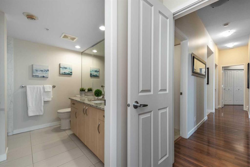 Penthouse at The Marquis – This is what you have been waiting for! Updated and renovated top floor, spacious 1274 SF river-side suite with oversized windows and extra height ceilings to take in the amazing North and West facing RIVER & MOUNTAIN VIEWS overlooking the Bow River. Freshly painted and showcasing a split bedroom design floor plan, this 2 bedroom PLUS DEN suite includes parking for 2 vehicles (tandem) plus additional storage locker. Entering the suite you are drawn to the open and spacious living and dining rooms – the view beckons! Cozy gas fireplace with marble tile front and mantle anchors the living room and oversized windows capture the views – sunset sky’s from here are stunning! The updated (in 2019), bright white kitchen overlooks the living area and offers ample granite counter space, breakfast ledge & stainless steel appliances. The primary bedroom is roomy and spacious and accommodates king sized furniture & features walk-through closets, 4 piece ensuite bath with soaker tub, separate shower and ample granite counter vanity space. Second bedroom easily fits queen-sized furniture, offers an extra closet as well and the 3 piece renovated bath (granite counters here, too!) is adjacent – perfect for a room mate or for when guests stay over. Don’t forget the den – it’s a great size and features floor to ceiling window on to the living room. Laundry room (new washer & dryer in 2024) with lots of storage space & extra shelving. Easy upkeep tile and laminate flooring are throughout the suite. The Marquis offers FULL concrete construction, including between suites, and all common areas have recently been renovated and are meticulously maintained. The gracious front lobby welcomes your guests and building amenities include 24 indoor visitor parking stalls, exercise facilities with his/her change rooms, yoga studio, a party room for gatherings and bike storage. With a walkability score of 95, this West Downtown location is amazing – super close to the Bow River pathways, Prince’s Island park, coffee shops, boutiques and great restaurants to explore, 1 block to the LRT (downtown free zone), & the fun and excitement of Kensington is just across the river. This is a pet friendly building (dogs under 20 lbs, with Board approval) – Start living the lifestyle you’ve dreamed of and call to view today!