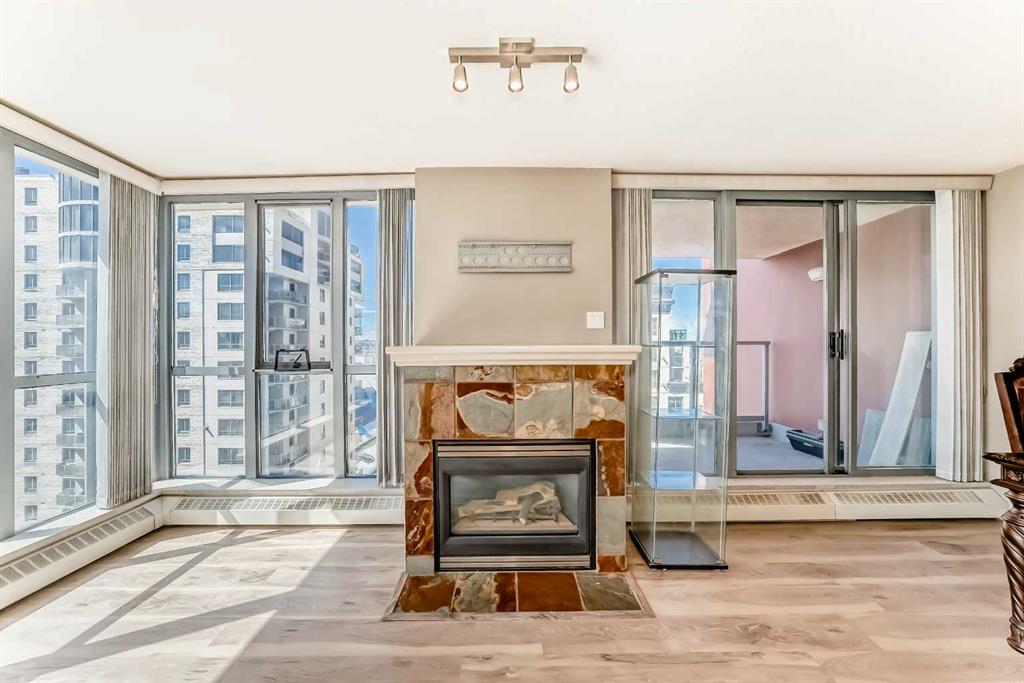 Welcome to the Seventeen Floor Corner Unit Facing South & West in the Wonderful Axxis Building. Bright Living room with Gas Fireplace. Spacious Dining Room leads out to the West Facing Balcony. Very Functional Kitchen has a Quartz Island. In-Suite Storage and Stacked Washer/Dryer. Tile in Entrance, Kitchen and the Main Bathroom & Ensuite Bathroom. Laminate Flooring in the Living Room, Dining Room, Hallways and the 2 Generous Sized Bedrooms. No Carpet in this Apartment!!! Building has a great Fitness Centre, a Party Room with Full Kitchen for Larger Gatherings, Gated Visitor Parking, Bike Storage and a Fantastic Outdoor Area on Two Levels. This Home is close to the River, Bike & Walking Pathways, C-Train, Shopping and Dining… See All the Terrific Things that West Downtown has to Offer!!!