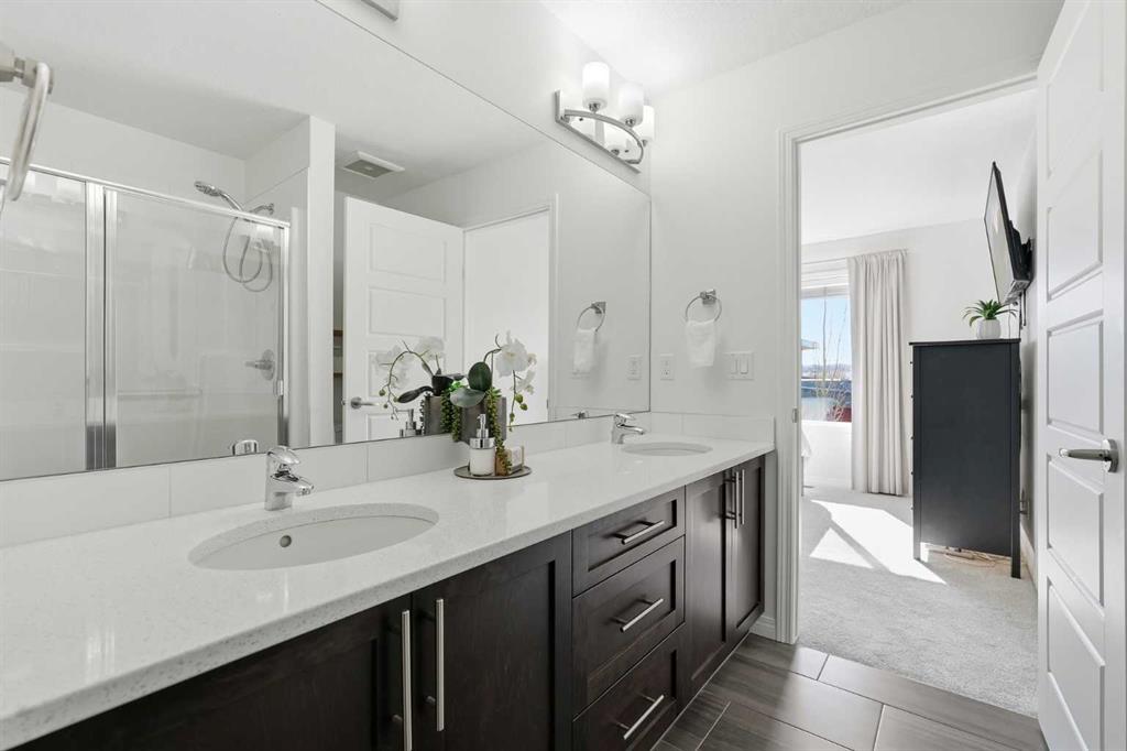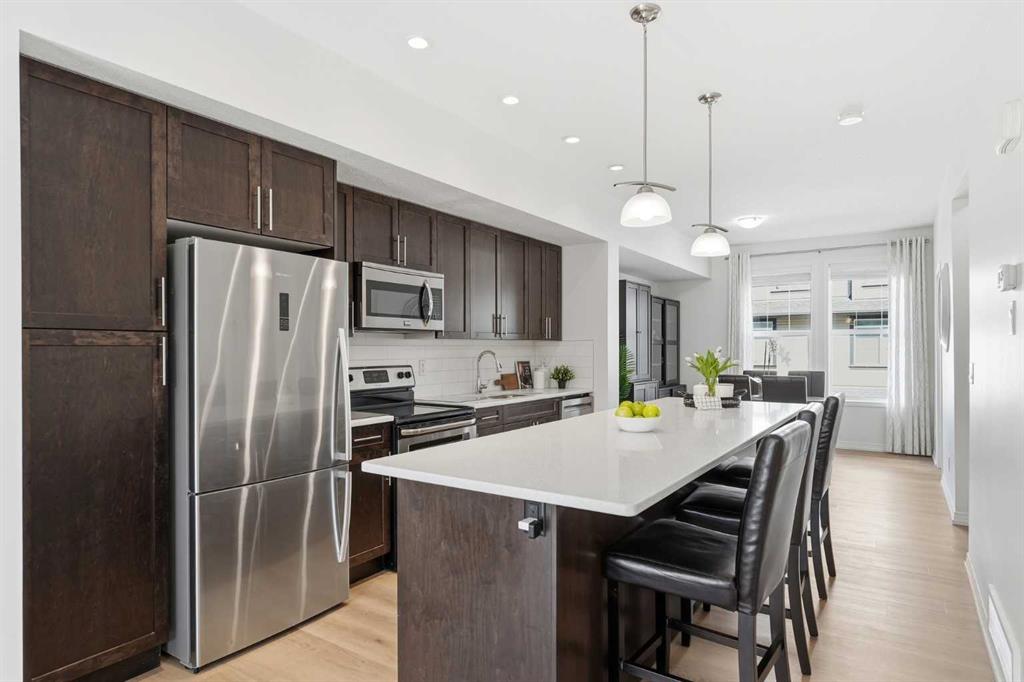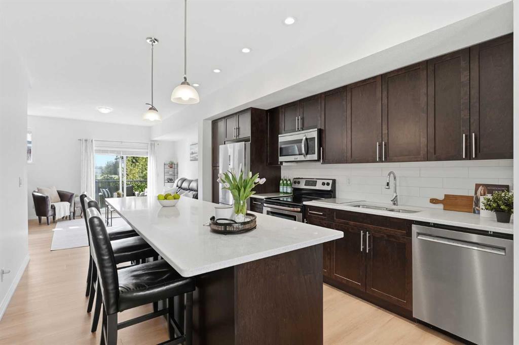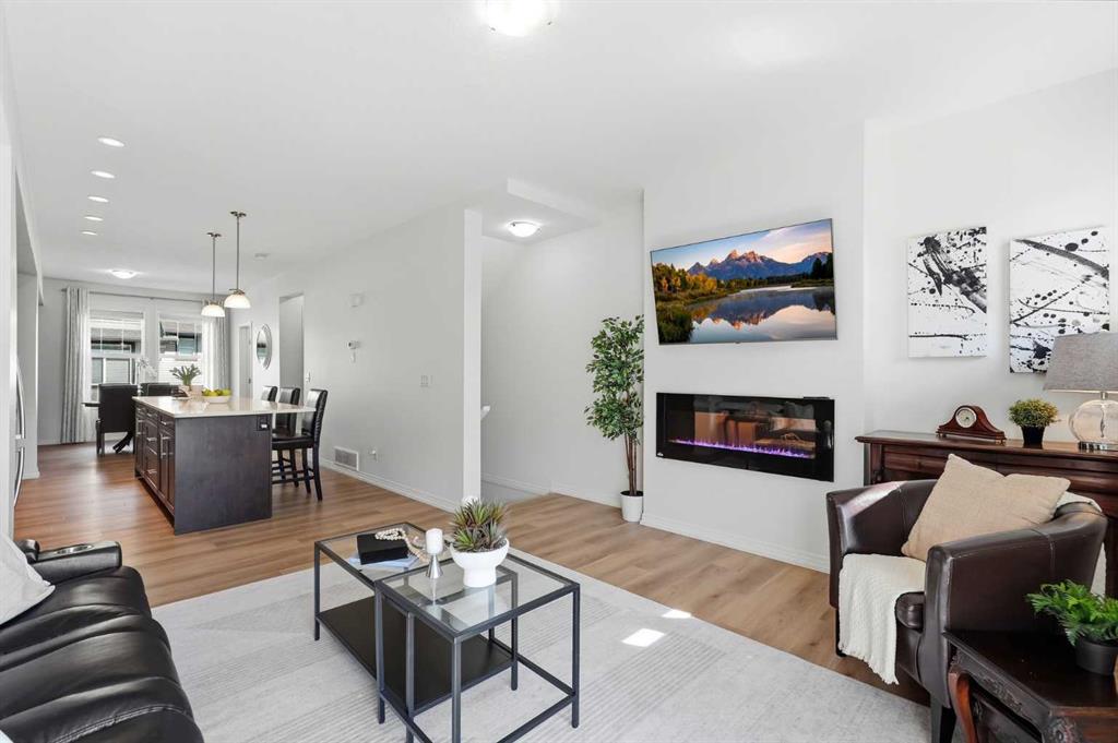 The home gets plenty of natural light throughout the day, and the electric fireplace adds a cozy touch to the main living space. The kitchen offers a large island with seating, stainless steel appliances, and a newer dishwasher (2023), along with a separate dining area across the space. Upstairs, you’ll find a spacious primary bedroom with a walk-in closet and 4-piece ensuite with double vanity and stand-up shower, plus convenient upper-level laundry (new washer & dryer, 2025). The double tandem garage provides extra storage or workspace, along with driveway parking and nearby visitor parking. Located in the family-friendly community of Williamstown, you’re just steps from parks, green space, walking paths, and schools, with easy access to shopping, amenities, and major routes, making this the perfect place to call home.