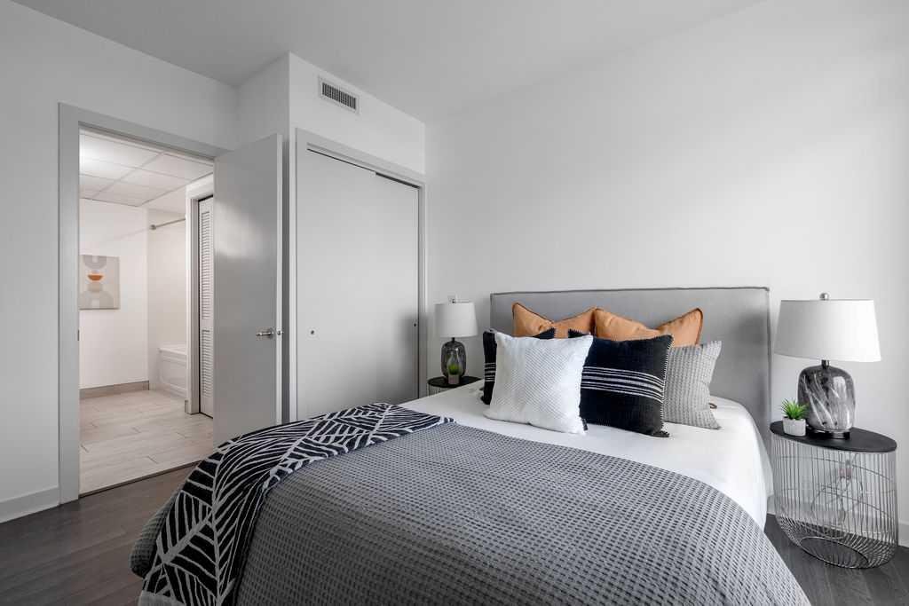 The open-concept living, dining, and kitchen space is flooded with natural light thanks to floor to ceiling windows and the west-facing exposure, offering beautiful afternoon light and incredible sunset views. The home has been extensively upgraded with features uncommonly found in this building, including new laminate plank flooring throughout, fully renovated bathrooms with new vanities, mirrors, tile flooring, and fixtures, and the removal of all textured ceilings, now flat and modern throughout the entire unit.