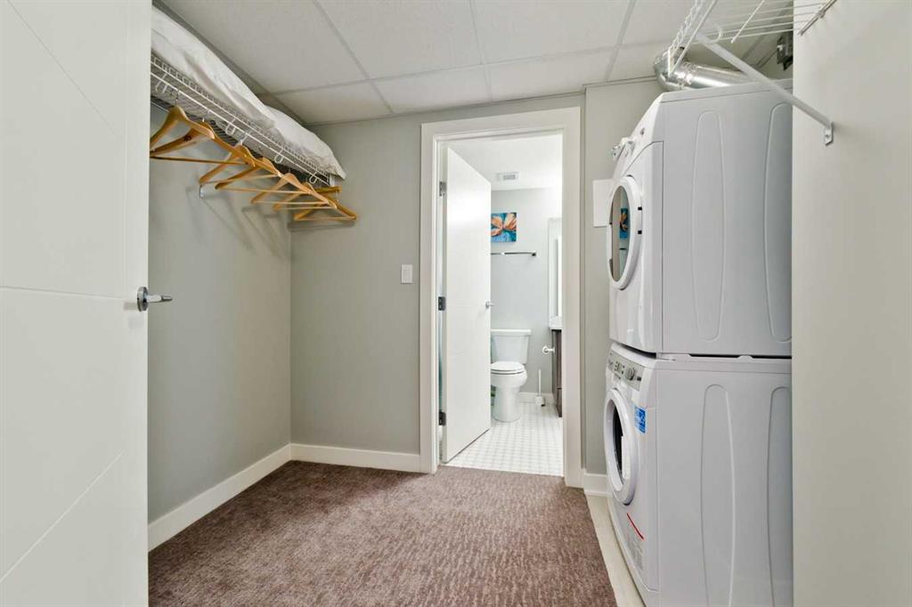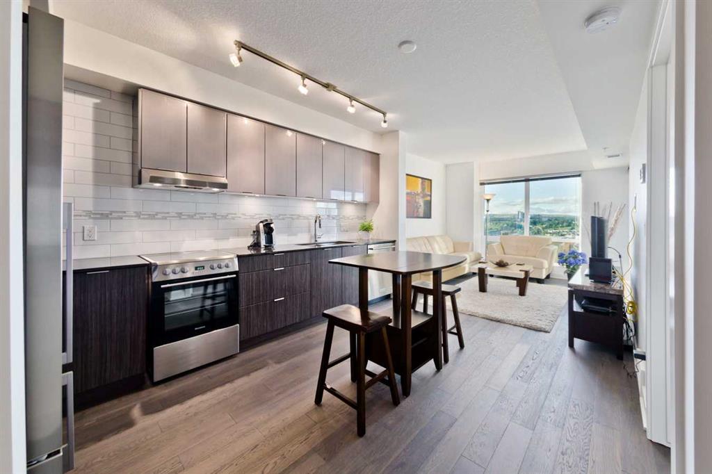 Currently rented for $2,310/month ($2,100 unit + $210 parking TITLED Underground Heated Parking), this upscale 1-bedroom, 1-bathroom condo with a versatile office/den offers the perfect blend of comfort and urban sophistication in Calgary’s vibrant downtown core—making it a fantastic investment property to add to your portfolio. This is a true turn-key opportunity—offered fully furnished, just bring your belongings and move right in. Perched on the 17th floor of the prestigious Vogue building, enjoy stunning views of the city skyline, Bow River, and Peace Bridge through expansive floor-to-ceiling windows. Designed with a modern open-concept layout and 9’ ceilings, the living, dining, and kitchen areas flow seamlessly, featuring premium finishes such as a Fisher & Paykel refrigerator, quartz countertops, rich cabinetry, and elegant laminate flooring. The primary bedroom offers privacy with a 4-piece ensuite and walk-in closet, while the den provides a flexible space ideal for a home office or relaxation. This home also includes a private balcony, heated TITLED underground parking, and assigned storage—delivering both luxury and practicality. Residents enjoy access to exceptional amenities, including a fully equipped gym, yoga studio, meeting rooms, games and social lounges, and the stunning 36th-floor Sky Lounge with breathtaking mountain views. The building is meticulously maintained and features concierge service along with central air conditioning for year-round comfort. Ideally located just steps from Eau Claire, Kensington, the Bow River pathways, and only a block from the LRT station, this condo offers unmatched convenience and lifestyle. Call today to book your private viewing!