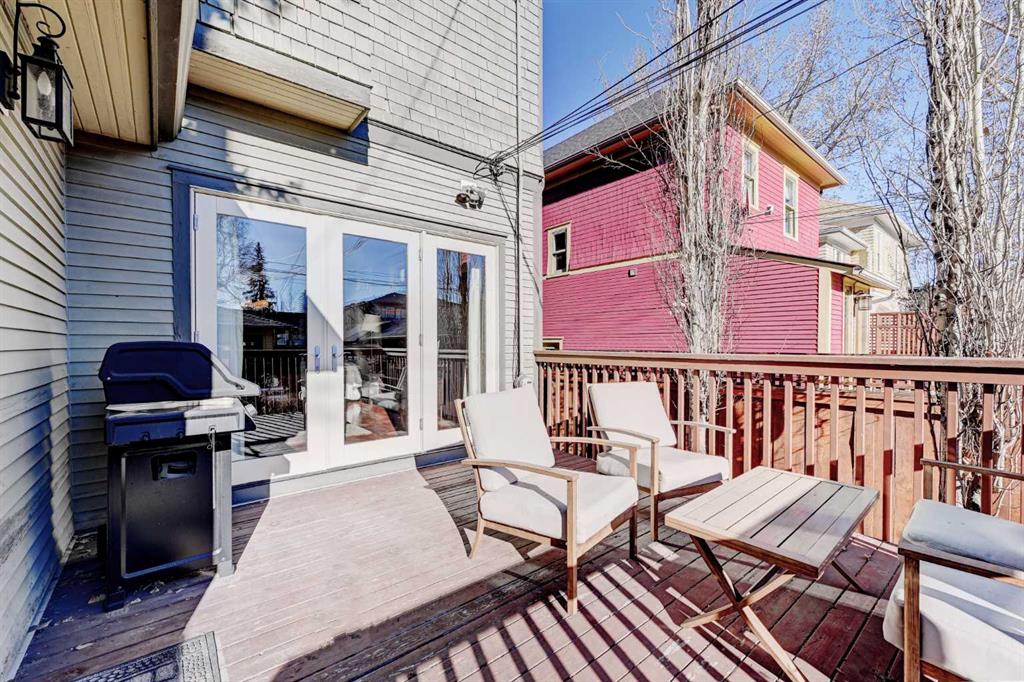 ** Open House Saturday February 14th from 11:30AM – 1:00 PM! ** Nestled in the heart of highly sought-after Hillhurst on a quiet street with a boulevard in front, this beautifully and professionally renovated character home offers the perfect blend of timeless charm and modern comfort — all on a generous 33’ x 125’ lot with a sunny south-facing backyard with A/C and just a short walk to downtown. Taken down to the studs and extensively renovated in 2008, this home preserves its heritage appeal while incorporating thoughtful upgrades throughout. The main floor features 9’ ceilings, rich gunstock-stained maple hardwood floors, and stunning coffered ceilings spanning the living, dining, and great rooms. The centre piece 2 sided fireplace separates the living room and dining room, and a striking barrel vault ceiling in the main hallway and numerous leaded glass accent windows add architectural distinction, while solid fir interior doors reinforce the home’s classic character. The custom maple kitchen offers abundant cabinetry, pantry storage, and beautiful soapstone countertops, ideal for both everyday living and entertaining. A discrete powder room and a good sized mudroom takes you to the large deck overlooking the sun drenched South facing backyard. Large French doors open from the family room to the private backyard. Upstairs, the huge primary bedroom with walk-in closet and spa inspired ensuite with heated floors overlooks the backyard. Two additional bedrooms both with built in shelving, storage, and a charming window seat provide the perfect reading nook. A dedicated office space and a second full bathroom showcasing a timeless cast iron clawfoot soaker tub and a custom-built laundry chute adds a practical touch to complete the upstairs. The exterior maintains its heritage integrity with cedar clapboard siding, a welcoming front veranda, cultured stone pillars, and period-style metal-clad wood windows. Outside, enjoy professionally designed landscaping with established perennials and bordered flower beds, new cement walkways, a 14’ x 12’ cedar deck, paving stone patio, and a fully fenced south-facing yard. Completing the property is a 22’ x 20’ double detached garage built in 2008. With a new roof (2011), air conditioning (2014), new furnace (2016) and hot water tank (2021) this is a rare opportunity to own a meticulously maintained character home in one of Calgary’s most desirable inner-city communities.