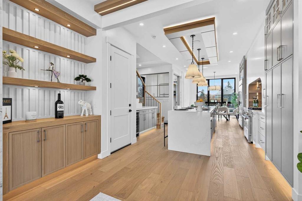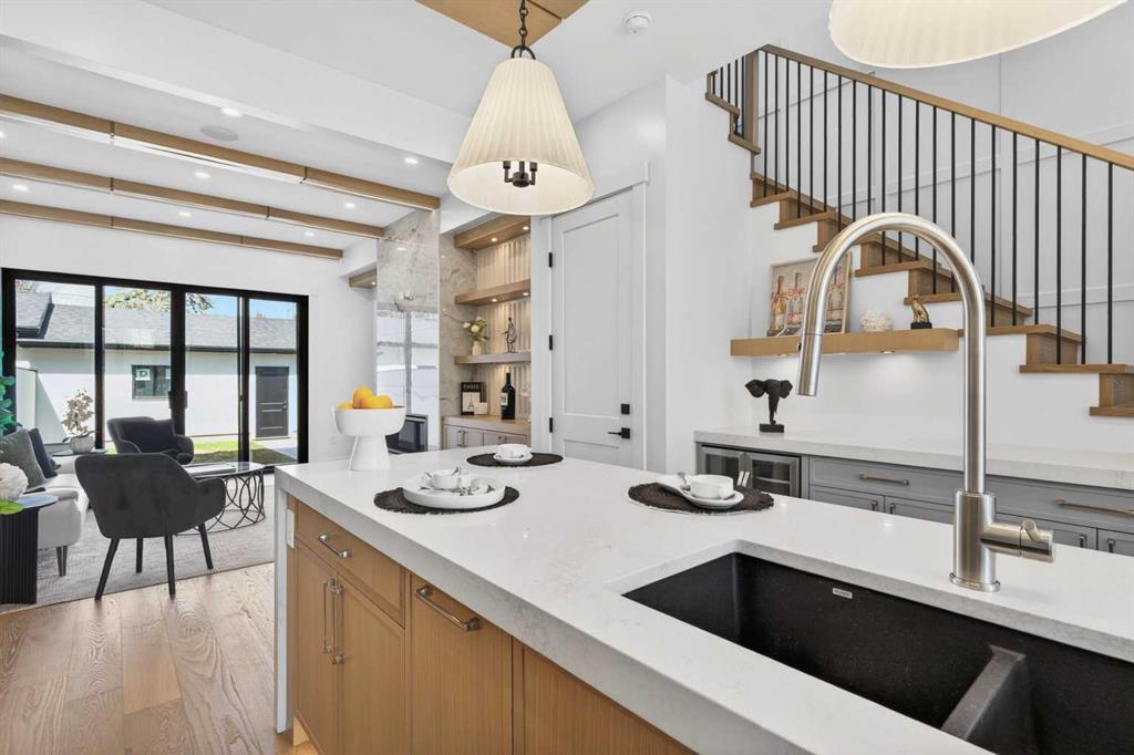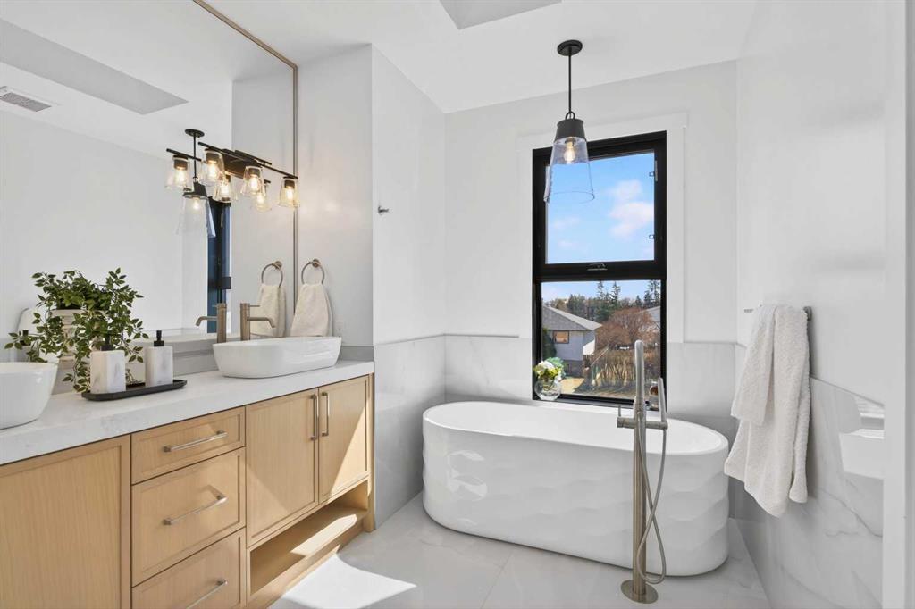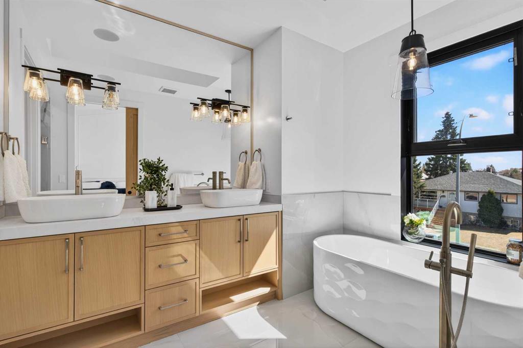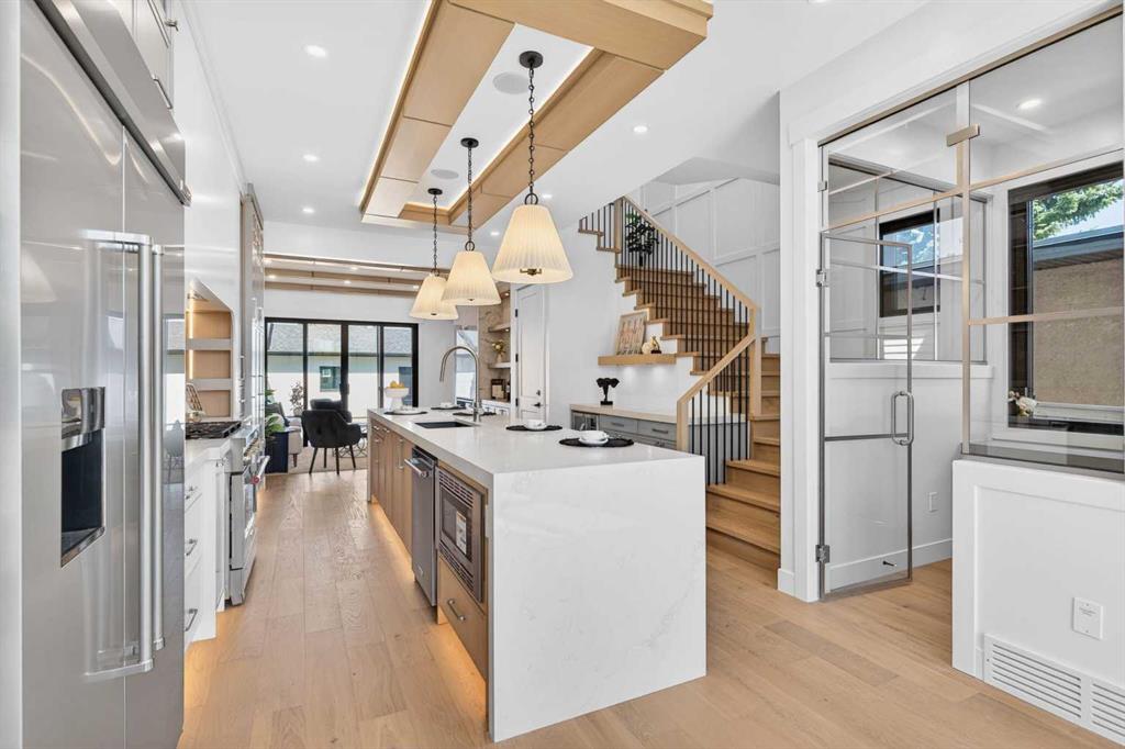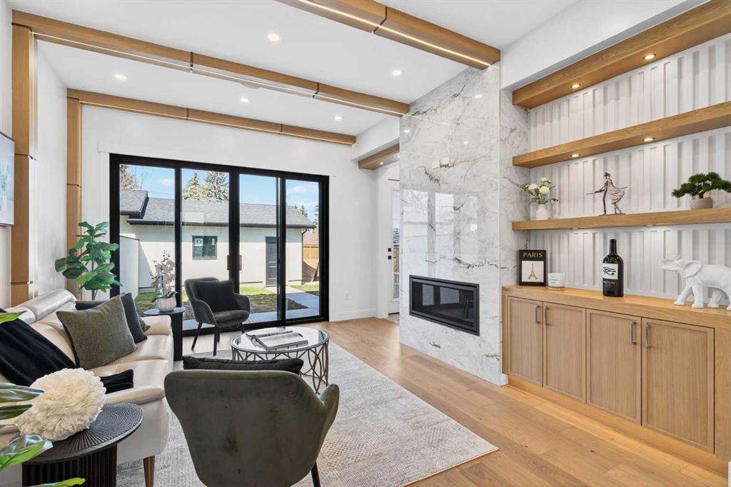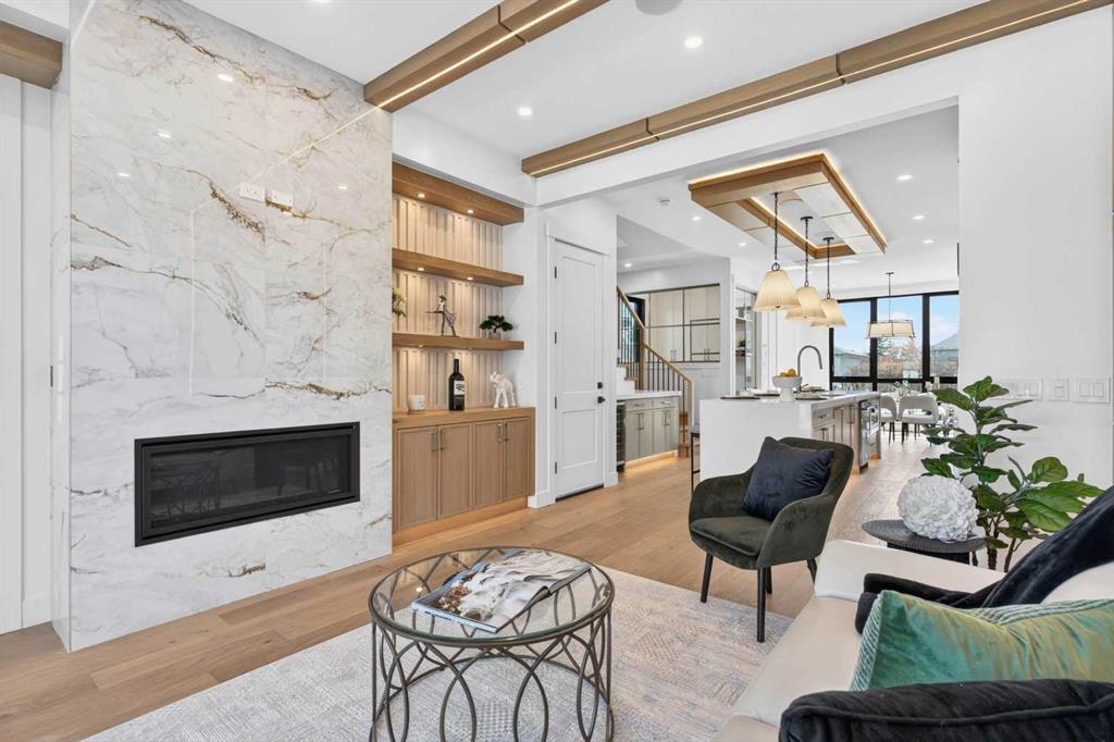 Looking for Upgrades?? Welcome to the epitome of urban elegance. Newly completed, this stunning semi~detached inner city infill is perfectly positioned in a highly sought after community. As an added advantage, this home features a legal basement suite ~ ideal for generating additional income or providing a comfortable, private space for guests. Designed with meticulous attention to detail, this luxury residence showcases a refined contemporary aesthetic enhanced by LED accent lighting throughout. The open-concept main floor is thoughtfully designed for entertaining, anchored by a chef-inspired kitchen complete with a stunning quartz island, striking pendant lighting, and premium finishes that elevate everyday living. A custom-designed arched range niche adds softness and dimension, elevating the kitchen with a Bespoke designer touch. A main floor office with detailed glass paneling adds style, function and flexibility + the front dining area is gorgeous with its wainscoting wall detail. At the rear of the home is a spacious living area with a beautiful fireplace, to offset those Alberta winter evenings. Patio doors open to your private backyard retreat ~ perfect for hosting and enjoying long summer evenings. Upstairs, the bedrooms are designed for comfort and tranquility, offering generous space, elegant ceiling details, and large windows that flood the rooms with natural light. The primary suite is truly gorgeous, featuring a spacious walk-in closet and elevated finishes. The spa-inspired ensuite is a standout, complete with classic tile detailing, dual sinks, a soaker tub, and a massive shower with a fully installed steam system. The upper two levels are wired for sound, and the home includes a roughed-in vacuum system and is prepped for A/C installation. The fully developed lower level offers a complete legal suite with a full kitchen, a spacious living area, a bathroom, and two bedrooms thoughtfully positioned at opposite ends for added privacy. Enjoy being just moments from top amenities, restaurants, parks, schools, and positioned for an easy quick escape out to the mountains. With unrivalled finishings throughout, this is a home you don’t want to miss.