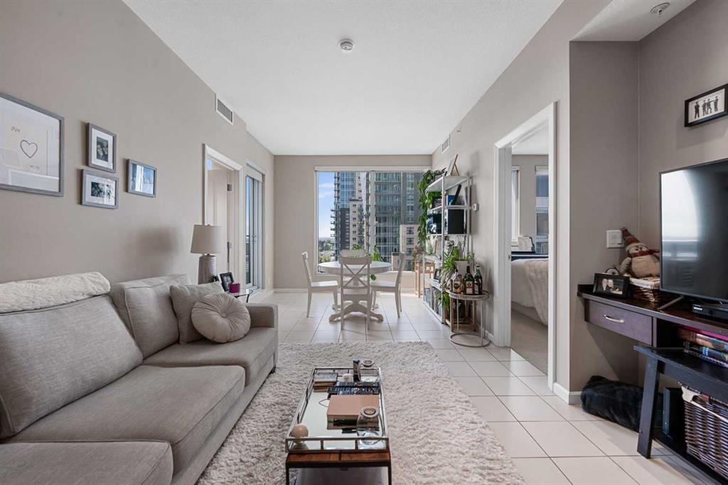 Welcome to the epitome of urban living in the heart of Calgary’s vibrant Beltline! This beautifully maintained 17th-floor unit in the sought-after Nuera building offers a seamless blend of style, comfort, and convenience with concierge service and first-class amenities right at your door. Step inside to a bright and open floor plan, where the sleek kitchen is equipped with quartz countertops, a modern tile backsplash, and stainless steel appliances ideal for cooking, entertaining, or simply enjoying your morning coffee. The spacious living area features durable tile flooring throughout, allowing you to easily customize your interior style while benefiting from low-maintenance design. Expansive floor-to-ceiling south facing windows bathe the space in natural afternoon sunlight year-round, while your private balcony offers sweeping views of Victoria Park and the Stampede Grounds the perfect place to unwind after a busy day. The primary bedroom is your personal retreat, complete with a walk-through closet and a 4-piece ensuite, providing a serene escape for rest and relaxation. A generous second bedroom and second full bathroom make this home versatile ideal for guests, a home office, or creative space to suit your lifestyle. Additional highlights include: Large titled underground parking stall conveniently located just steps from elevator access, storage locker for added convenience, on-site fitness centre take care of your health and wellness without ever leaving the building, and in-suite laundry, secure fob access, and professionally managed condo. Whether you’re a young professional, an investor, or someone looking to embrace carefree urban living, this home offers everything you need and more in a prime downtown location just steps from transit, 17th Avenue, shopping, restaurants, and the Saddledome. Welcome to your next adventure in modern city living.