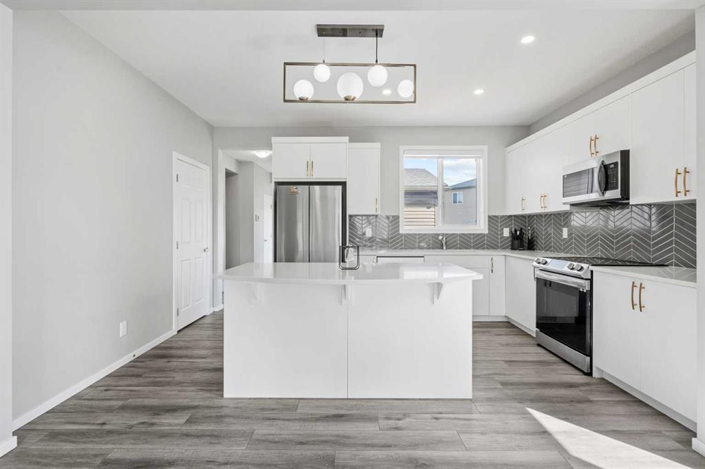 This beautifully designed home built in 2023 offers modern style, thoughtful finishes, and a location that makes everyday living effortless. Large windows throughout allow natural light to pour into each room, creating a bright and welcoming atmosphere from the moment you walk in. The kitchen is both elegant and functional, featuring spacious quartz countertops, stainless steel appliances, and stylish gold hardware accents that add a touch of warmth and sophistication to the modern design. Whether you’re cooking for yourself or hosting friends and family, the space feels open, polished, and practical. Outside, the home sits on a spacious pie-shaped lot, offering extra yard space and flexibility for your enjoyment. A double attached garage and parking pad in the rear provide plenty of room for multiple vehicles and storage, while the paved rear laneway adds both convenience and accessibility. Whether you seek additional living space, a home gym, or a media room, the undeveloped basement makes it easy to bring your vision to life. Located in a quiet and family oriented neighbourhood, you’ll enjoy quick access to the rest of the city via Stoney Trail only moments away, keeping your commute and extracurriculars simple. Plus, daily conveniences are close at hand, with multiple retail shops and restaurants nearby, as well as everyone’s favourite wholesaler, Costco, just a short 10-minute drive away. Stop by for a showing today!
