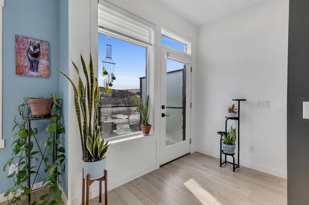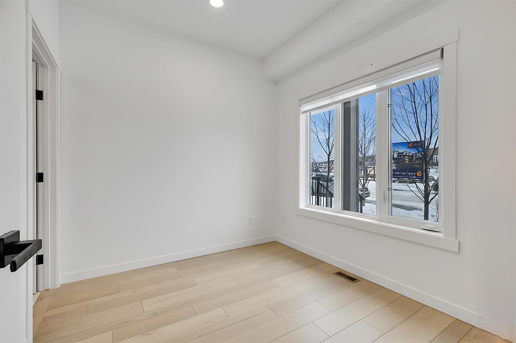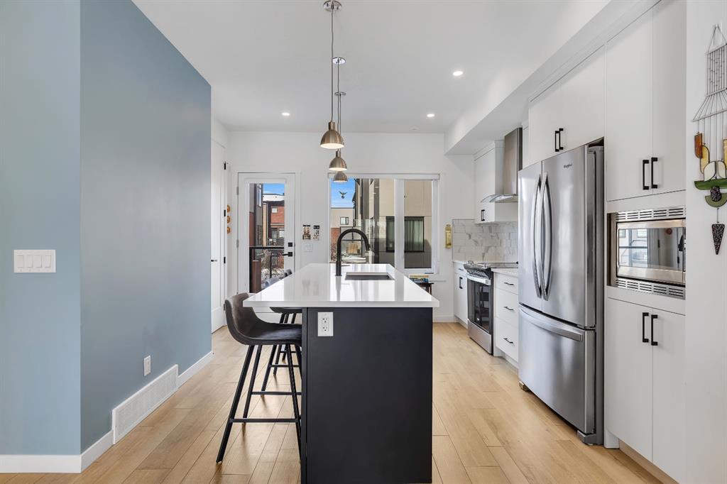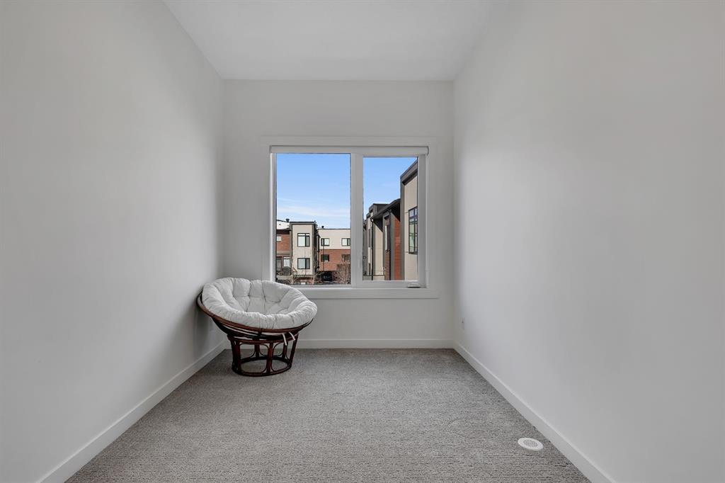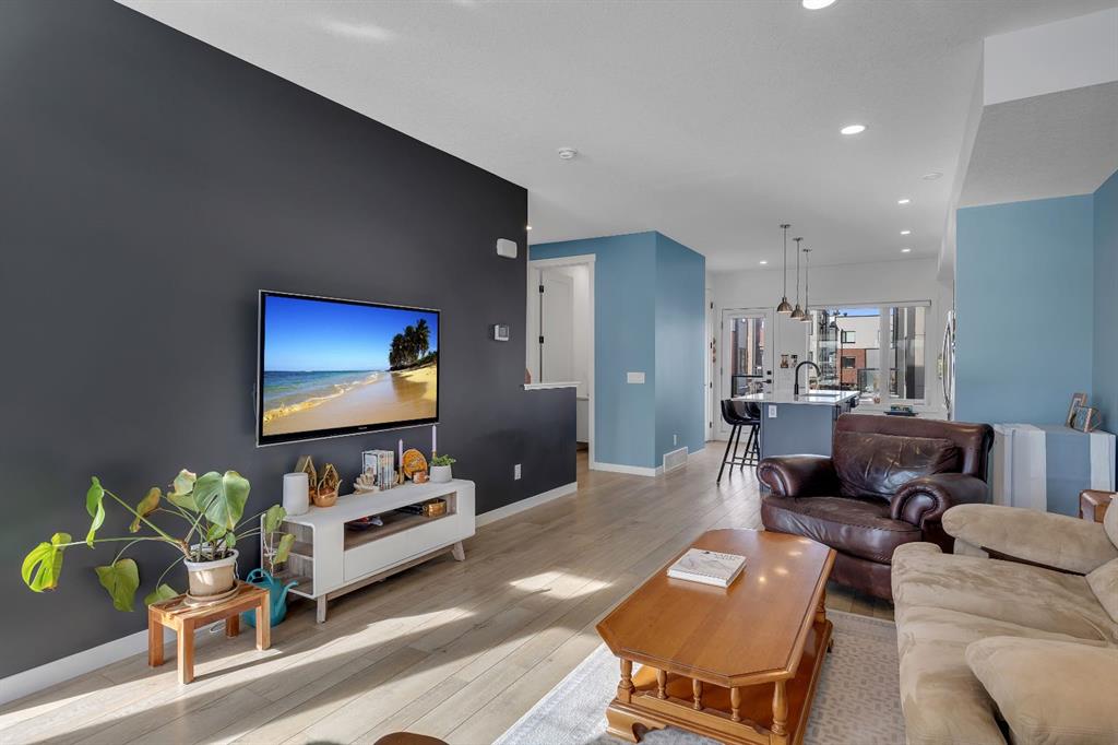 | Open House Sunday April 12th from 12:00pm-4:00pm | Welcome to the Calla Design Plan in Greenwich, built by Landmark Homes in the Artis development. Inspired by New York executive townhome design, this beautifully appointed home offers over 1,650+ square feet of open concept living space in one of Calgary’s most distinctive northwest communities.This thoughtfully designed home features a rare design of 4 bedrooms, 3.5 bathrooms, and a double attached garage, with a layout enhanced by professionally curated interior colour selections and a multitude of builder upgrades throughout.Carefully customized, this home showcases exceptional finishes paired with extraordinary natural light. The south fronting exposure overlooks the front boulevard for additional street parking and amazing views onto Canada Olympic Park and adjacent Park and Playground Spaces. Outdoor living is equally impressive, with a front-entry exposed aggregate patio and a main-floor full glass balcony with BBQ Gas Line designed to enjoy the full afternoon sun. Inside, this home features luxury vinyl plank flooring throughout the main and lower levels, quartz countertops, Painted custom cabinetry, 9-foot ceilings, and upgraded stainless steel appliances, including a chimney hood fan and built-in microwave. High-efficiency building components include triple-pane windows, a high velocity furnace system, tankless hot water tank, and a heat recovery ventilator system.This Calla plan was further enhanced with the builder’s Show Home Package, adding in Central Air Conditioning, the 4th Bedroom and 3rd Full Bathroom on the Entry Level, 8-foot solid interior passage doors, full tile backsplash upgrades, enhanced bathroom finishes, and window coverings throughout. As one of Landmark Homes’ most open and customizable floor plans, this layout offers exceptional flexibility for options of a full dedicated dining room experience, or an oversized main floor living room configuration. The exterior of this development was designed with New York brownstone influence, featuring James Hardie panel siding, brick accenting, and stucco finishes for a contemporary, low-maintenance lifestyle. Ideally located, this home offers quick access to downtown Calgary (approximately 18 minutes), University of Calgary and Foothills Medical Centre (approximately 12 minutes), and weekend escapes to Banff or Canmore in under an hour. It is also within walking distance of the Calgary Farmers’ Market West and Boutique and Specialty Shopping in the Central Commercial Plaza. Book your showing today and discover what makes Greenwich NW such an exceptional place to call home.
