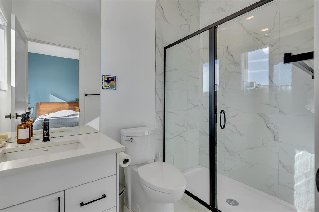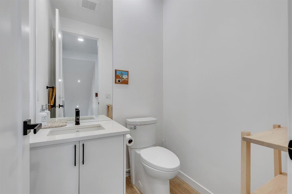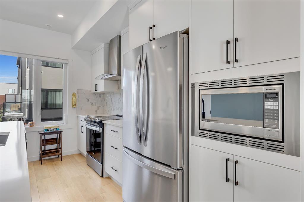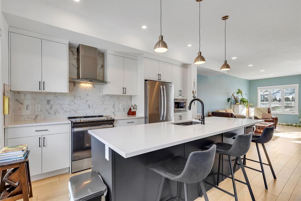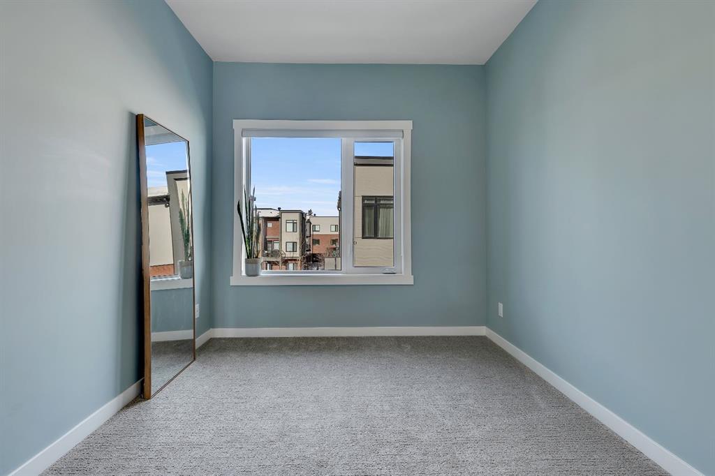 | Open House Sunday April 12th from 12:00pm-4:00pm | Welcome to the Calla Design Plan in Greenwich, built by Landmark Homes in the Artis development. Inspired by New York executive townhome design, this beautifully appointed home offers over 1,650+ square feet of open concept living space in one of Calgary’s most distinctive northwest communities.This thoughtfully designed home features a rare design of 4 bedrooms, 3.5 bathrooms, and a double attached garage, with a layout enhanced by professionally curated interior colour selections and a multitude of builder upgrades throughout.Carefully customized, this home showcases exceptional finishes paired with extraordinary natural light. The south fronting exposure overlooks the front boulevard for additional street parking and amazing views onto Canada Olympic Park and adjacent Park and Playground Spaces. Outdoor living is equally impressive, with a front-entry exposed aggregate patio and a main-floor full glass balcony with BBQ Gas Line designed to enjoy the full afternoon sun. Inside, this home features luxury vinyl plank flooring throughout the main and lower levels, quartz countertops, Painted custom cabinetry, 9-foot ceilings, and upgraded stainless steel appliances, including a chimney hood fan and built-in microwave. High-efficiency building components include triple-pane windows, a high velocity furnace system, tankless hot water tank, and a heat recovery ventilator system.This Calla plan was further enhanced with the builder’s Show Home Package, adding in Central Air Conditioning, the 4th Bedroom and 3rd Full Bathroom on the Entry Level, 8-foot solid interior passage doors, full tile backsplash upgrades, enhanced bathroom finishes, and window coverings throughout. As one of Landmark Homes’ most open and customizable floor plans, this layout offers exceptional flexibility for options of a full dedicated dining room experience, or an oversized main floor living room configuration. The exterior of this development was designed with New York brownstone influence, featuring James Hardie panel siding, brick accenting, and stucco finishes for a contemporary, low-maintenance lifestyle. Ideally located, this home offers quick access to downtown Calgary (approximately 18 minutes), University of Calgary and Foothills Medical Centre (approximately 12 minutes), and weekend escapes to Banff or Canmore in under an hour. It is also within walking distance of the Calgary Farmers’ Market West and Boutique and Specialty Shopping in the Central Commercial Plaza. Book your showing today and discover what makes Greenwich NW such an exceptional place to call home.
