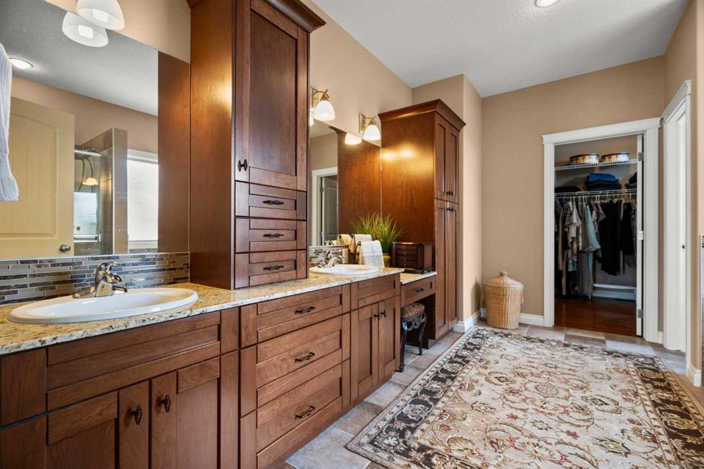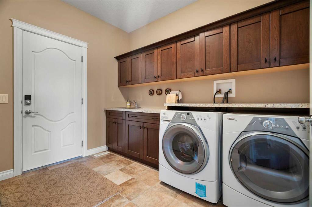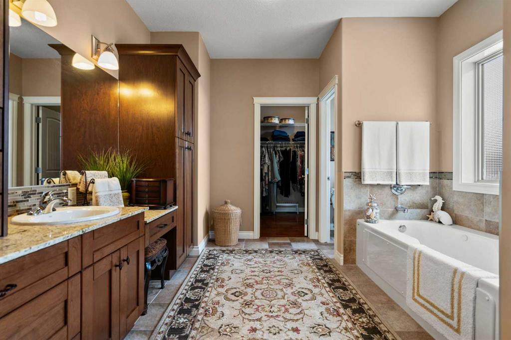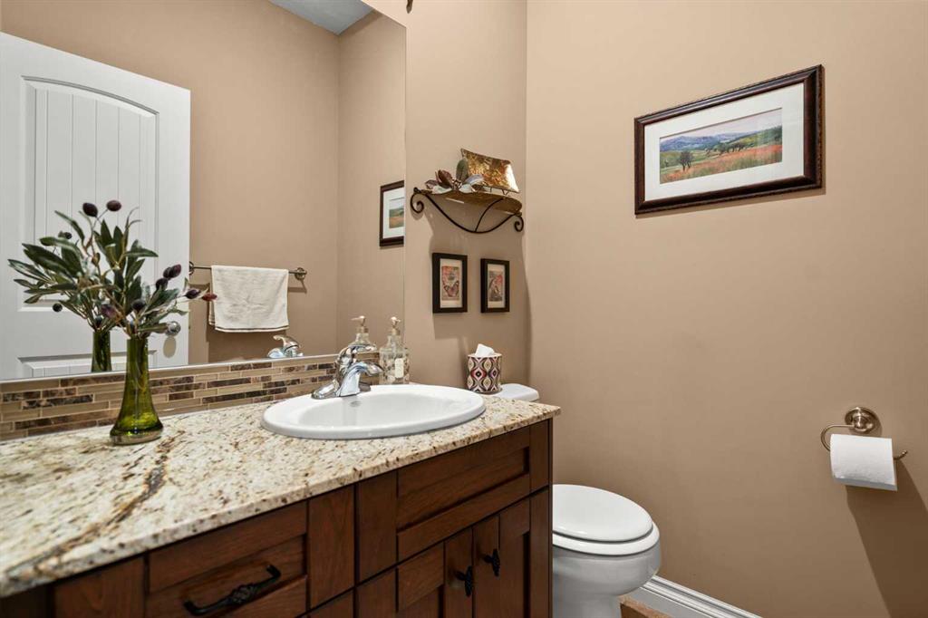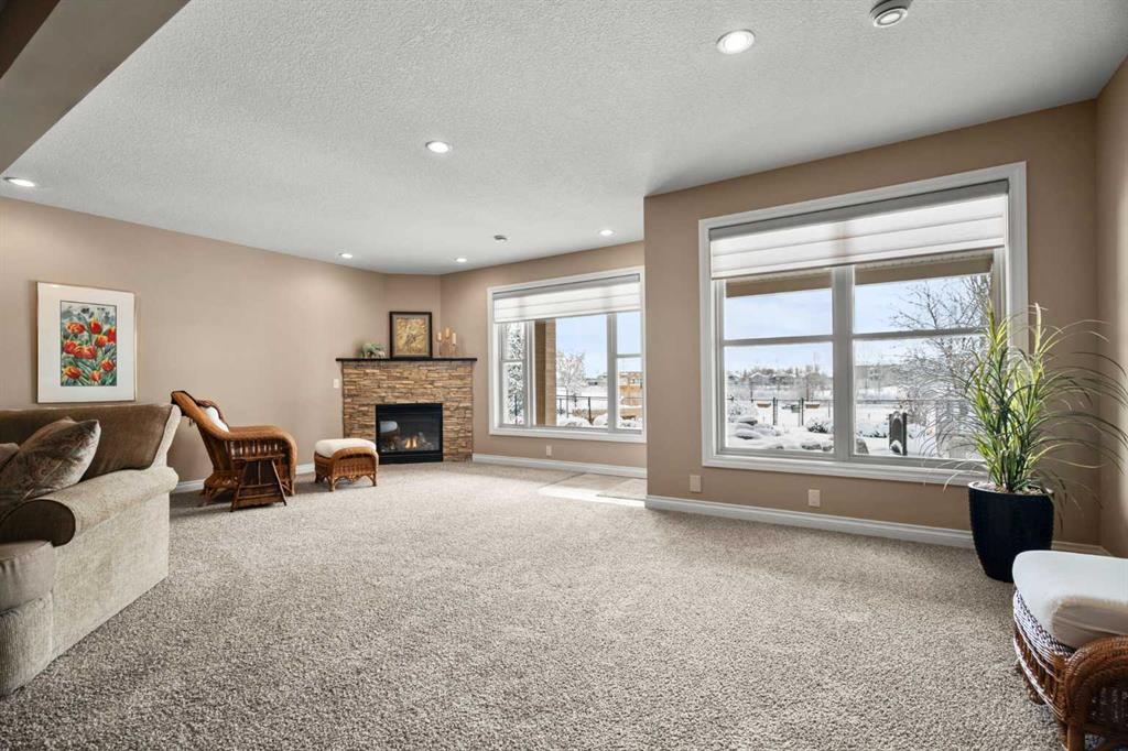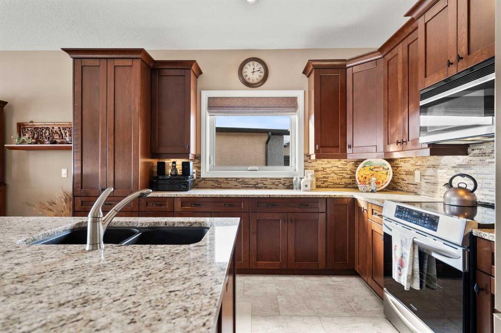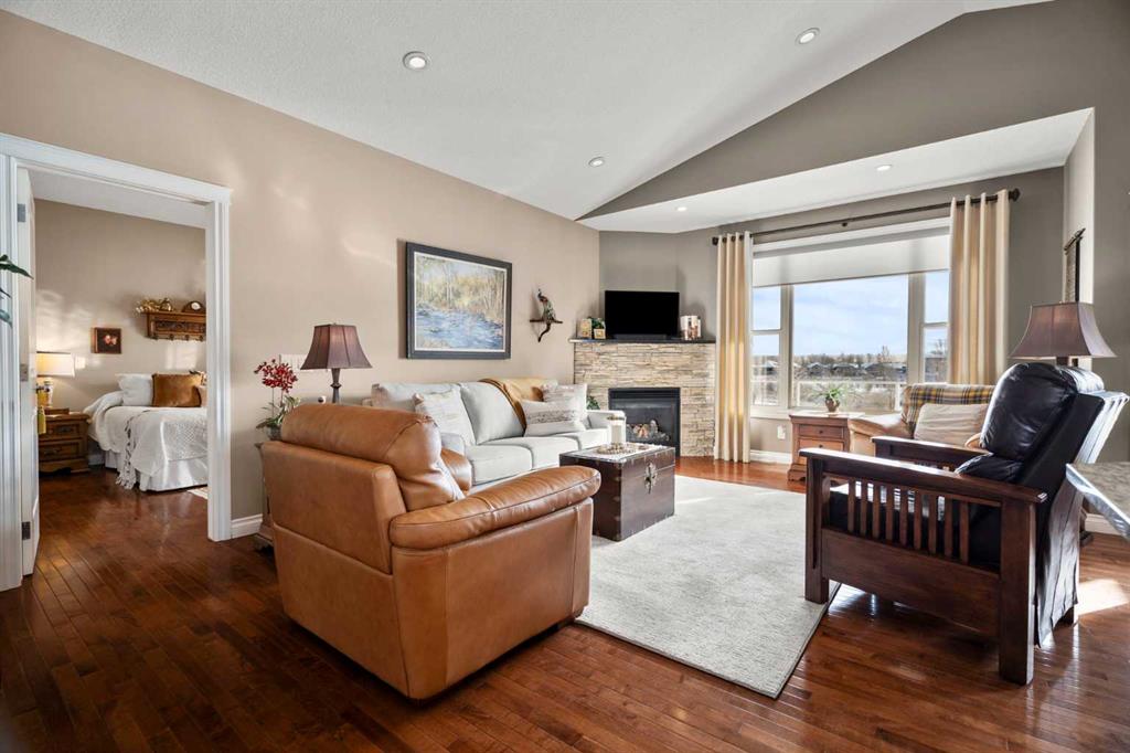 Luxurious small-town living! Ideally located where the prairies meet the mountains in High River, this stunning executive walkout bungalow backs directly onto Highwood Lake — a beautiful, naturalized setting with pathways & expansive green space. This exceptional lot was specifically chosen by custom home builder Allan Campbell for his personal residence. Plans changed, & the current owners have been the only ones to call this incredible property home. It’s easy to see why this location was selected, offering a serene & peaceful environment with convenient access to shops, High River’s charming downtown, amenities, entertainment, restaurants, & recreation. Enjoy the nearby Spray Park, George Lane Park & Highwood Golf Course. South Calgary is 30 mins & Okotoks (Costco) a quick 20 min drive. Situated on a massive reverse pie lot, this property offers stunning outdoor spaces & abundant parking including an oversized 862 sqft insulated garage with walk-up basement access, gas rough-in for a heater & plenty of room for tools & toys. The driveway holds 3+ vehicles, while the side RV driveway allows for winter storage with 130-amp power & roughed-in dumping station. The entire lot is meticulously landscaped with mature trees, perennials, irrigation system, solar water fountain, & a brand-new west-side fence — truly a gardener’s dream. Enjoy two exceptional outdoor living spaces: a lower-level patio with privacy screens & hot tub rough-in, & a full-width covered upper balcony with BBQ gas hookup, accessible from both the dining room & the primary bedroom. Both spaces are perfect for taking in the views & watching the ducks on the pond. Inside, the home features 9’ & vaulted ceilings on the main level, 9’ basement ceilings, granite counters throughout, in-floor heating in the primary bathroom & basement, built-in interior/exterior speakers, power shades, soft-close hardware, & endless storage throughout. Flooded with natural light, the traditional layout is both functional & welcoming for a variety of lifestyles. The main floor offers a beautiful primary suite with walk-in closet & 5-piece ensuite, an ideal laundry/mudroom, a 2nd bedroom (also perfect as a den or office), & a convenient half bath. The kitchen is outstanding! It features a large island, oversized cabinetry, updated vinyl flooring, & a stainless appliance package including a newer Frigidaire induction stove & refrigerator. The walkout level is designed for entertaining, showcasing a massive recreation room, built-in media center, wet bar, games area, two large bedrooms, & a full bathroom. RECENT UPGRADES – Central A/C, R-50 attic insulation over both the house & garage, a composite front deck, healthy climate furnace filter, updated humidifier, fibre optic cable, Larson storm door, new hot water tank (2025), lighting, & more! Ask your Realtor for a complete list of upgrades & features. Do not miss this rare opportunity to own a serene, scenic, & turn-key property in one of High River’s most desirable areas.