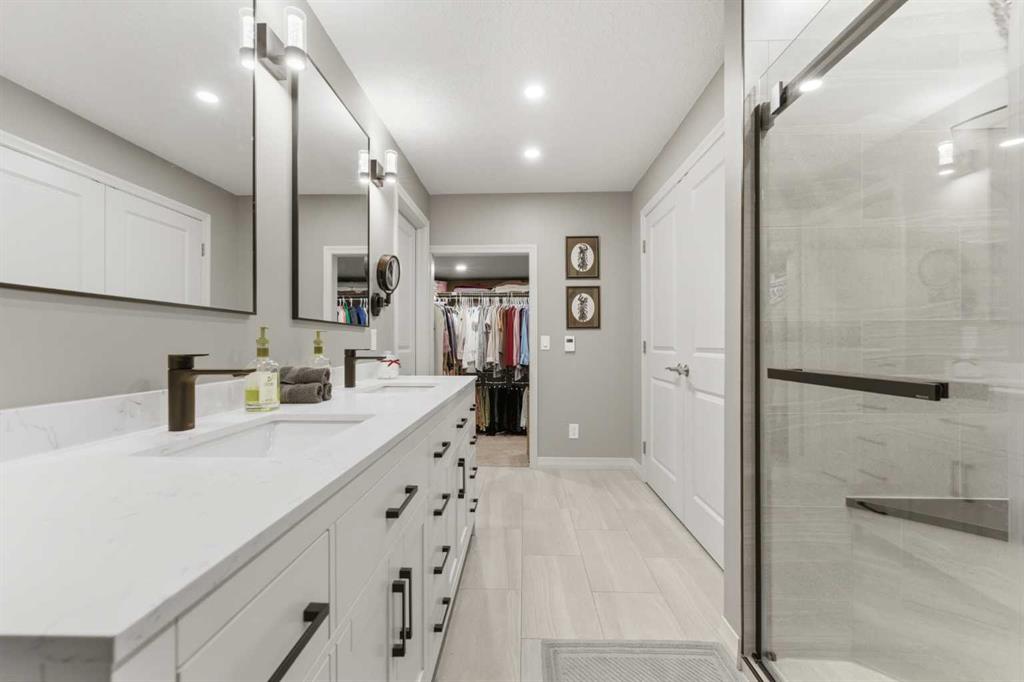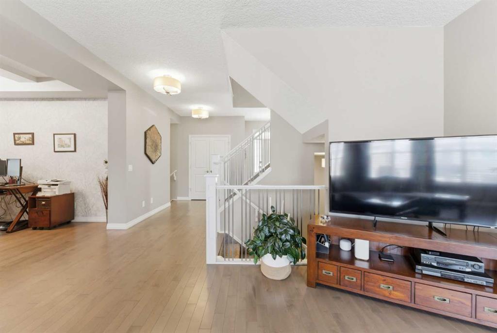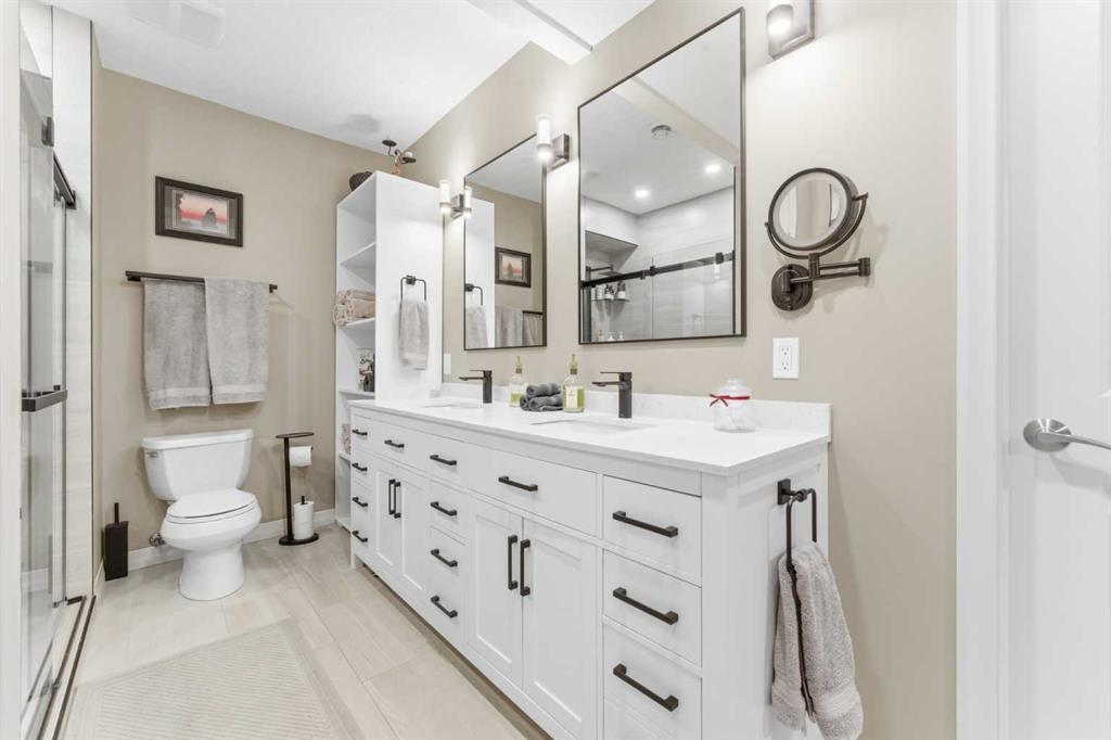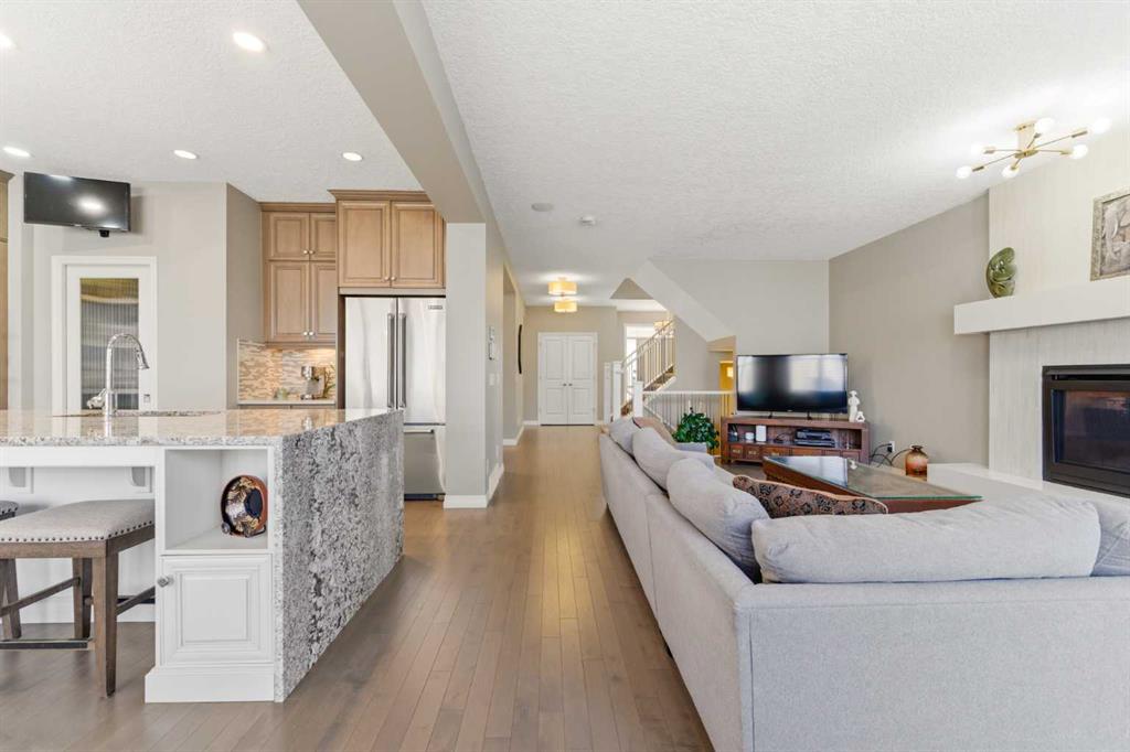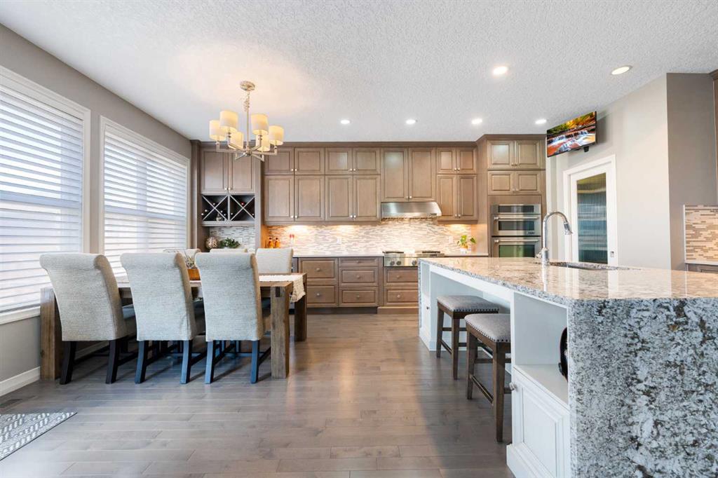 WOW! This former Jayman show home is sure to impress as soon as you pull into the driveway! Let’s go inside and take a tour starting with the spacious entryway that leads you through to the main floor dining room that doubles as a great sized office space! The kitchen is the heart of this home and is a chefs dream with a huge island with a waterfall granite countertop, the rest of the kitchen has quartz countertops, there are high end Jenn-Air appliances including a gas range with a built in griddle, built in wall oven, microwave and a warming drawer, LOADS of maple cabinets, pantry, mosaic tiled backsplash and an extended space with a wine fridge, wine rack and extra storage space! The dining area is adjacent to the kitchen and has access to the back yard and huge upper deck! The living room will fit ALL of your furniture and features a beautiful tiled gas fireplace! The main floor also has maple hardwood throughout, a convenient half bathroom, a spacious mudroom with access to the garage. Let’s head upstairs to continue the tour ~ There is a huge primary bedroom with plenty of natural sunlight, coffered ceilings, an ensuite that you will LOVE with his and hers closets and sinks, separate beautiful soaker tub, shower, make up counter AND heated floors! Down the hallway there is 2 additional bedrooms that are both a great size, a huge bonus room with wall to wall windows and EPIC VIEWS of one of Calgary’s BEST lakes! In addition to all of THAT there is another full bathroom for the kids and a large laundry room upstairs for ultimate convenience! The fully finished basement has a newly renovated full bathroom with heated floors, double sinks and a huge shower, a linen closet as well as an extra closet for more clothes storage! A great sized rec room, plenty of windows everywhere, a gorgeous wet bar with a 2nd wine fridge and the wine lovers will LOVE the wine storage room! And to top it all off there is a 4th bedroom with a large window to complete the basement! If this wasn’t enough for you there is ALSO 36 solar panels that were recently installed, 2 furnaces, 2 A/C units, a hot tub, massive deck area, upgraded high end Hunter Douglas blinds throughout, no maintenance yard, custom curtains, built in speakers throughout the home and coffered ceilings in the ding room, bonus room and primary bedroom! All of this awesomeness in a beautiful home that has been lovingly maintained in one of Calgary’s premier lake communities, close to transit, schools, parks, playgrounds, off leash dog park, South Health Campus, YMCA, VIP theatre, an abundance of shops, restaurants, pubs and so much more! This is an amazing opportunity ~ don’t wait!