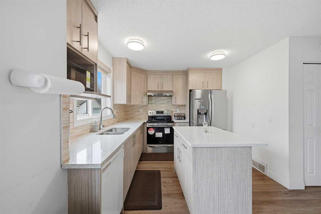 The main floor welcomes you with a bright and spacious layout, showcasing a large living room, generous dining area, and a fully updated modern kitchen. Renovations throughout the home include new flooring, new countertops, upgraded appliances, modern fixtures, and LED lighting, while the upper level features new carpet and 3 well-sized bedrooms, including a primary bedroom with double closets, along with a full 4-piece bathroom. A convenient main floor bathroom adds extra functionality. The driveway is new concrete making it ideal for guest parking.