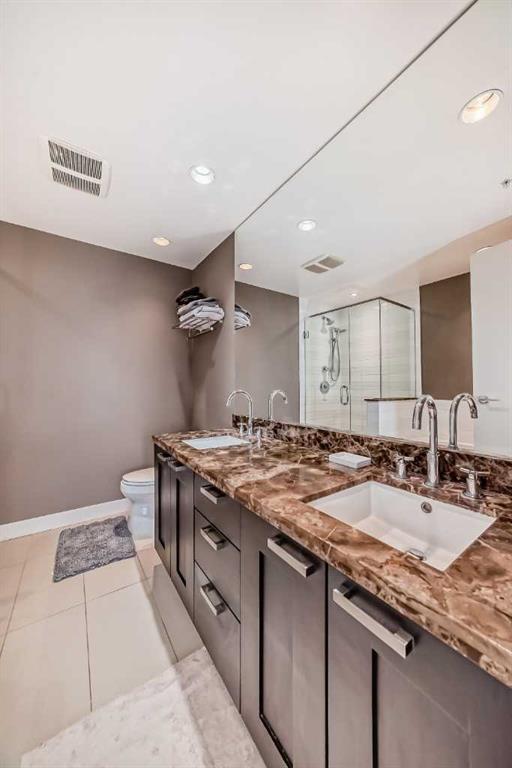 Sophisticated Urban Living with Panoramic Views! Corner UNIT with TWO Underground Parking Stalls! Welcome to the 17th floor of the prestigious Waterfront, where modern luxury meets unparalleled convenience. This spacious 2-bedroom home boasts breathtaking views of downtown, the Bow River, Lions Bridge and Prince’s Island Park. With its open-concept design, premium finishes, and world-class amenities, this property offers the ultimate urban lifestyle. Step inside and be greeted by a bright, airy space filled with natural light from floor-to-ceiling windows. The thoughtfully designed layout seamlessly connects the living, dining, and kitchen areas, creating a perfect setting for entertaining or relaxing. The gourmet kitchen is a chef’s dream, featuring a gas cooktop, built-in oven, and a spacious quartz island—perfect for preparing meals or hosting friends. The primary bedroom is a private retreat that features walk-in CALIFORNIA closets and a luxurious ensuite bathroom. The second bedroom, with its large windows and dual closets, provides ample space for family or guests. A sleek three-piece bathroom with a walk-in shower ensures added convenience. Office space for that work at home lifestyle, or just a place to take a break. The balcony offers stunning views and outdoor living spaces where you can unwind, sip your morning coffee, or take in the vibrant city skyline. TWO – Heated underground parking ensures year-round comfort and convenience. Waterfront is more than just a residence; it’s a lifestyle. Residents enjoy access to exceptional amenities, including a fully equipped gym, a relaxing hot tub, and a spacious common area available for private party bookings. The pet-friendly building is surrounded by scenic walking paths, with an off-leash park just 15 minutes away, making it perfect for dog owners. Located in the heart of downtown, this home puts you steps away from a wide variety of dining and shopping options. Whether you’re enjoying dinner at a nearby restaurant or a stroll along the Bow River, every convenience is at your fingertips. This exceptional property offers a rare opportunity to own a sophisticated, modern home in one of the city’s most sought-after locations. Don’t miss the chance to make this your own—schedule a viewing today.