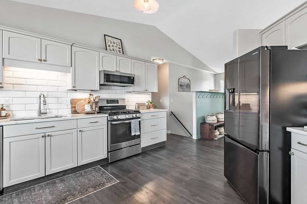 Welcome to this fantastic family home in a quiet SE High River location, just steps from Sunshine Lake and the scenic Happy Trails walking paths. Set on a peaceful street, this property offers the perfect blend of small-town charm and everyday convenience, with parks, playgrounds, and Holy Spirit School all nearby. Sitting on a large pie-shaped lot, there is no shortage of outdoor space, whether it’s kids playing, hosting summer gatherings, or simply enjoying the yard. The detached double garage and rear alley access add both functionality and flexibility. Inside, the home offers over 2,000 sq ft of developed living space, with 1,150 sq ft above grade. The main floor features thoughtful renovations, creating a warm and inviting space for everyday living. You’ll find 3 bedrooms and 2 bathrooms, ideal for families or those needing extra space. The mostly finished basement adds incredible value, with 2 additional bedrooms, an office, and plenty of room for family activities. The bathroom is already framed, plumbed, and drywalled, just waiting for your finishing touches. With quick east access out of town, this is an excellent option for commuters while still enjoying everything High River has to offer.