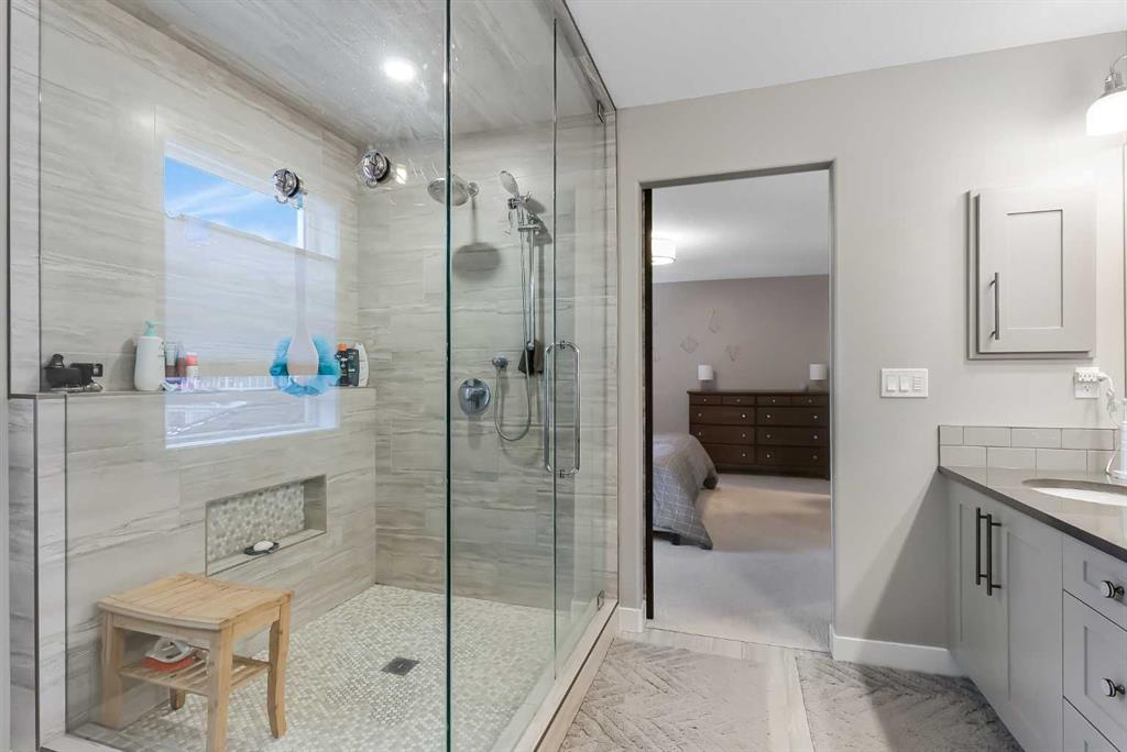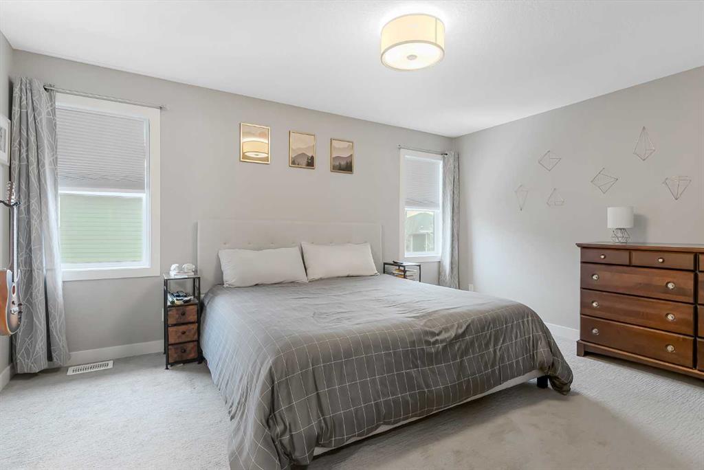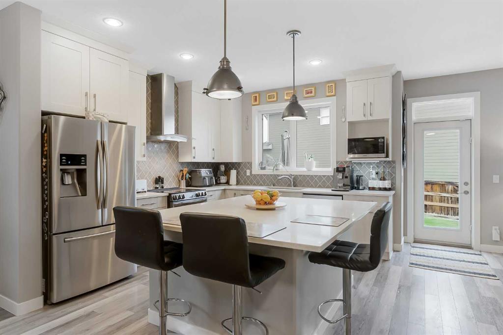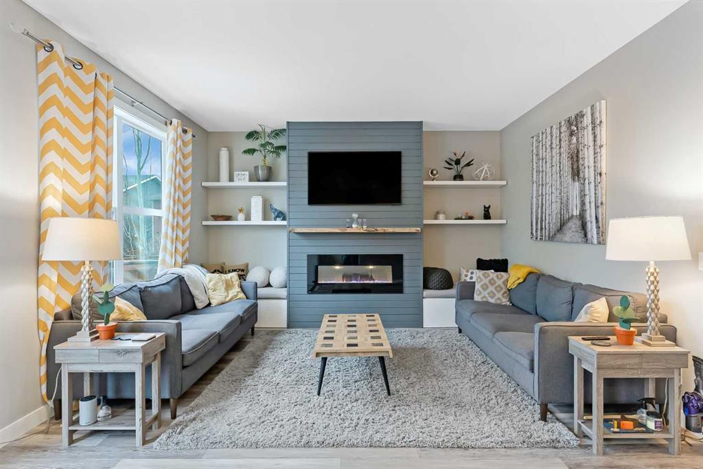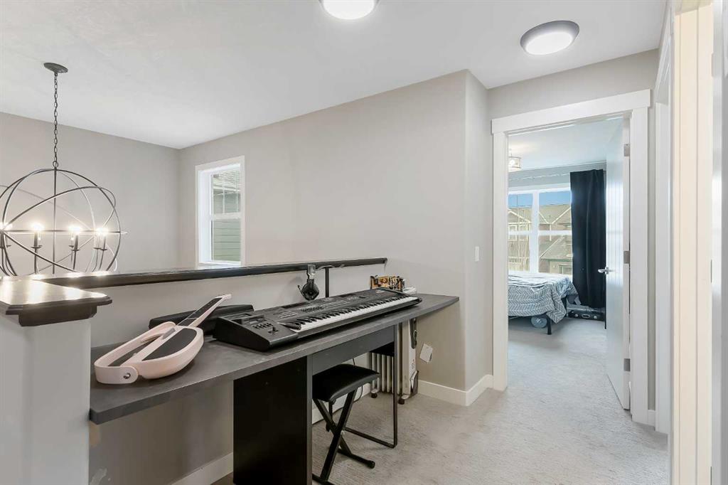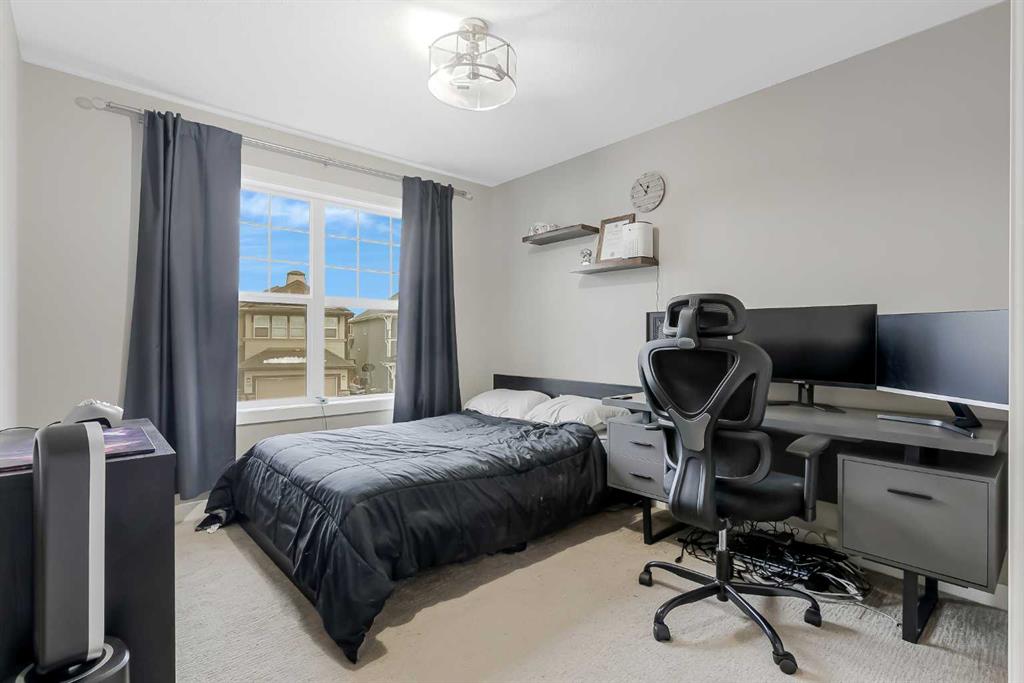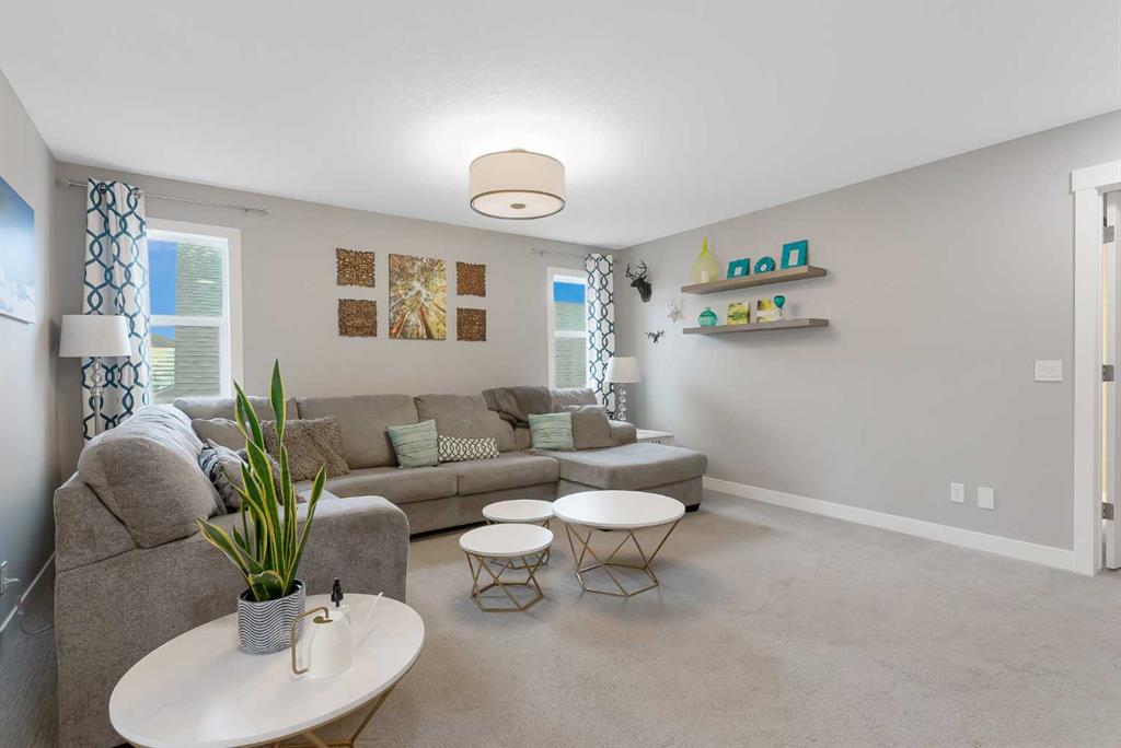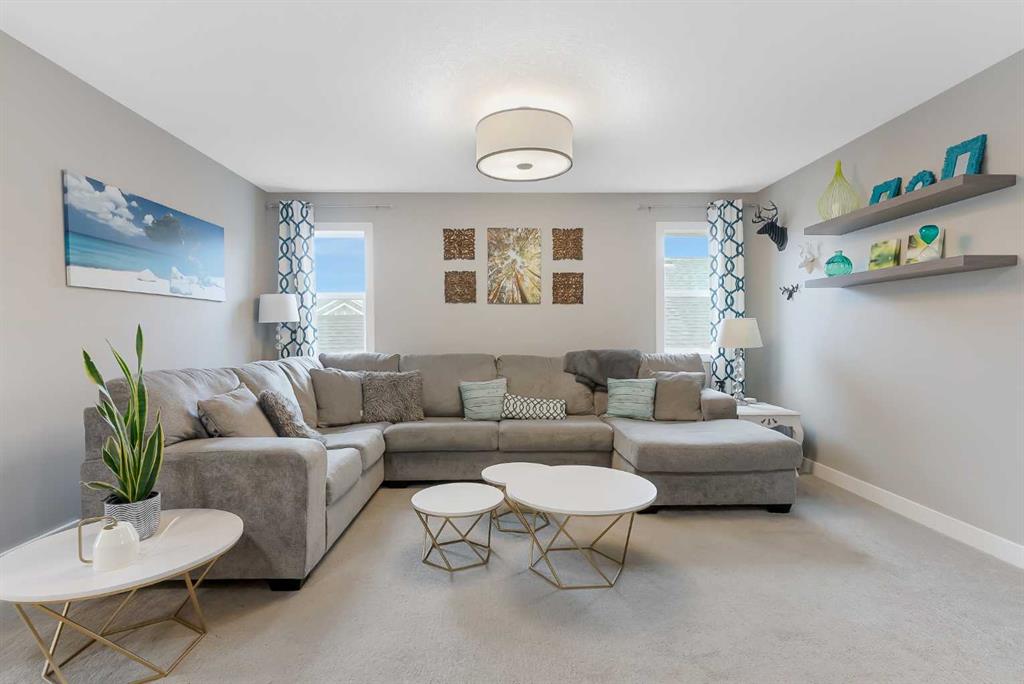 This beautiful Auburn Bay home is packed with upgrades and designed for family living. The exterior features durable Hardie board siding, permanent programmable exterior lighting and over $40,000 invested in backyard living which Includes a 2 tiered PVC deck, artificial turf large custom storage shed and privacy fencing. The attached double garage is heated and pre-wired for a future EV charging station. Inside the open-to-above foyer creates a bright and airy first impression. The main floor offers 9-foot ceilings, large windows, stylish vinyl plank flooring throughout the main floor , along with a spacious office/flex room featuring a sliding barn door. The chef-inspired kitchen showcases a massive quartz island and walk-in pantry, flowing seamlessly into the dining and living rooms. There you will find a custom built-in feature wall and electric fireplace perfect for entertaining and everyday comfort. Upstairs you will find 3 generous bedrooms, including a king-sized primary retreat, a large bonus room and a convenient built-in workspace. and the upper-level laundry room adds everyday practicality. The main bathroom features a trough-style sink with dual faucets, while the primary ensuite offers in-floor heating, floor to ceiling glass shower and dual sinks with a quartz countertop. Additional features include central air conditioning and water softener. Ideally located with easy access to Auburn Bay Lake, schools, parks, green spaces and all amenities. This home offers the perfect blend of lifestyle and convenience.