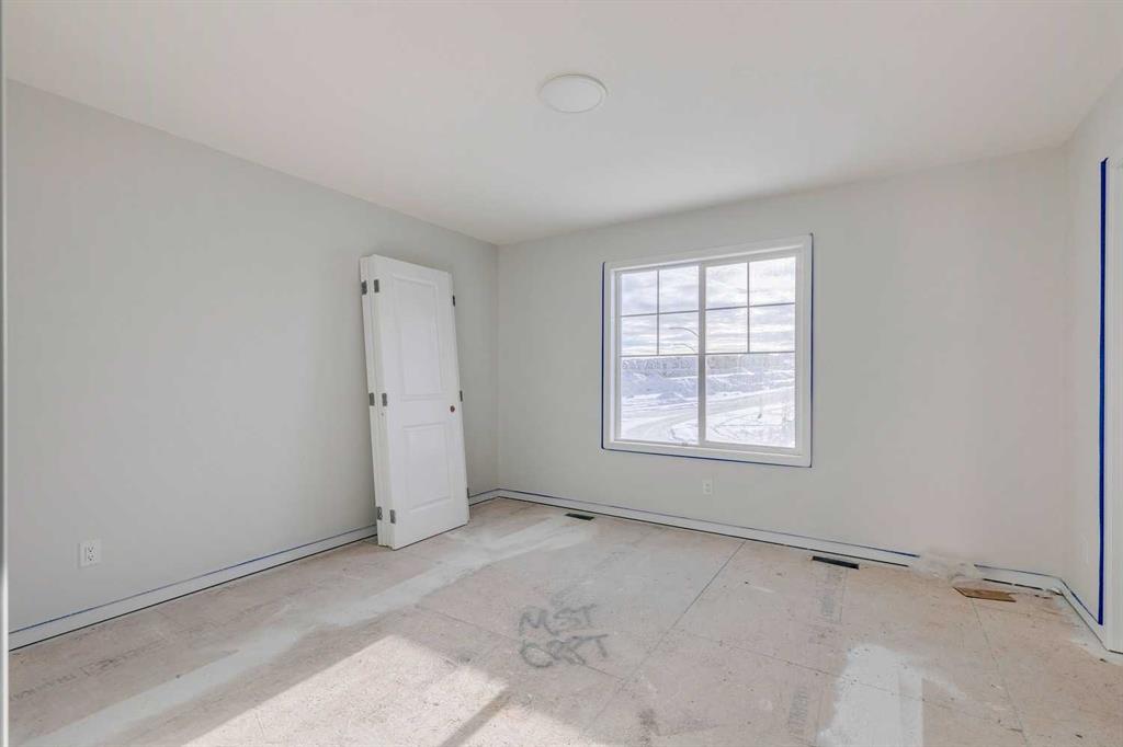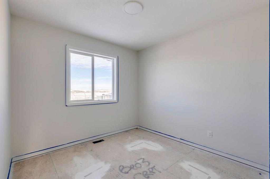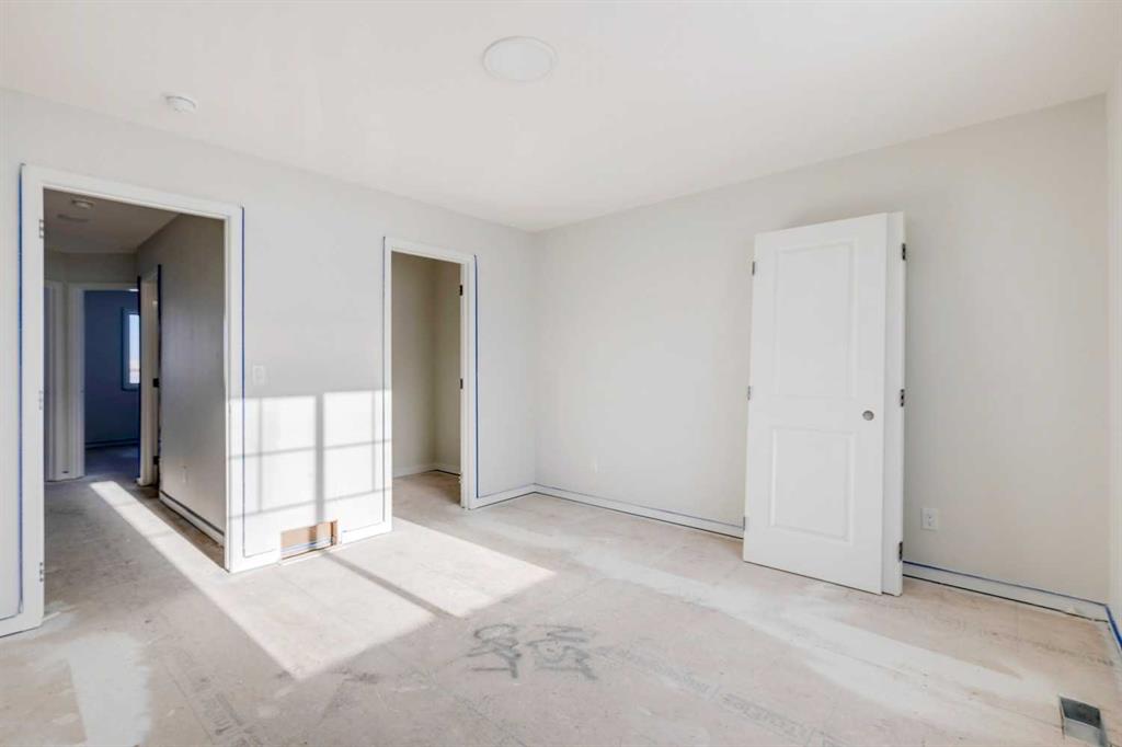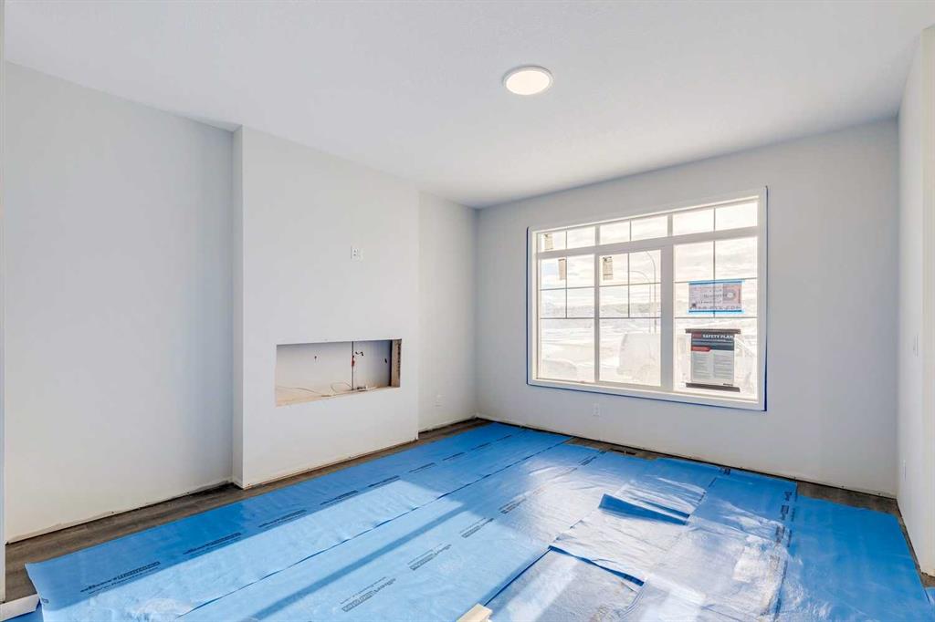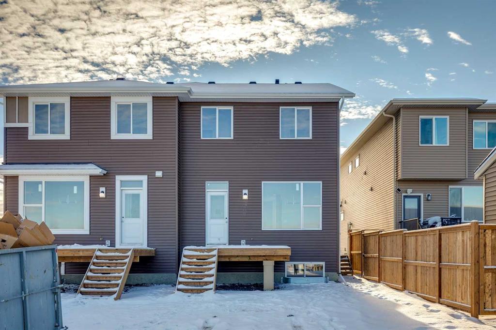 Welcome to this modern Morrison Homes 3-bedroom duplex in the sought-after community of Glacier Ridge. The main floor offers an inviting living area with an electric fireplace, knock-down ceilings, vinyl flooring, and a stylish kitchen complete with a central island, pantry, quartz countertops, a built-in microwave, and a fridge with a water line. A half bath on this level provides added convenience for guests. Upstairs features three generous bedrooms including the primary bedroom with its own 4-piece ensuite, plus a second 4-piece bathroom and a convenient laundry area. The basement includes a separate side entrance, a 9’ foundation, and rough-ins for a future suite (a secondary suite would be subject to approval and permitting by the city/municipality) offering excellent potential for added living space or income generation. Outside, you’ll find a deck with a built-in gas line for your BBQ, plus a gravel parking pad providing easy off-street parking. Glacier Ridge Village is expected to open in 2026 and will feature a skating ribbon, walking paths, basketball courts, an all-ages playground, spray park, tennis court, ice rink, patio spaces, firepit, and a toboggan hill. Inside, residents will enjoy a gymnasium, rentable rooms for programs and private events, banquet space, and welcoming seating and gathering areas. Located in one of Calgary’s newest and most desirable communities, this home blends modern comfort with exceptional future amenities.