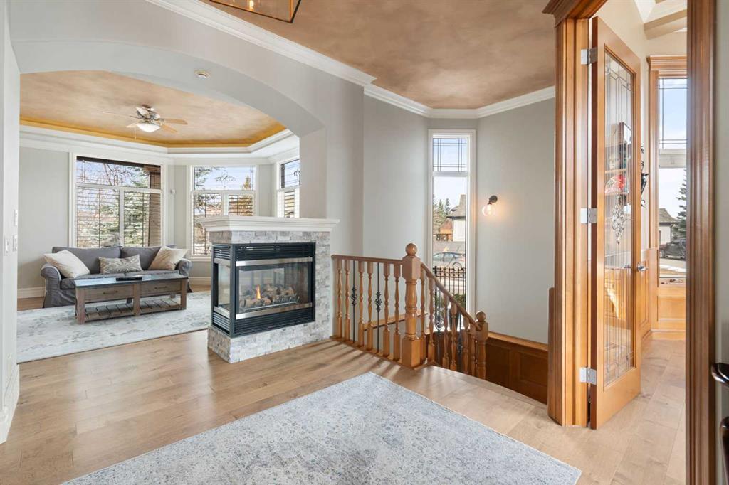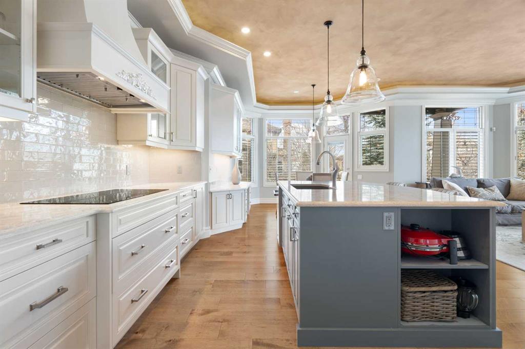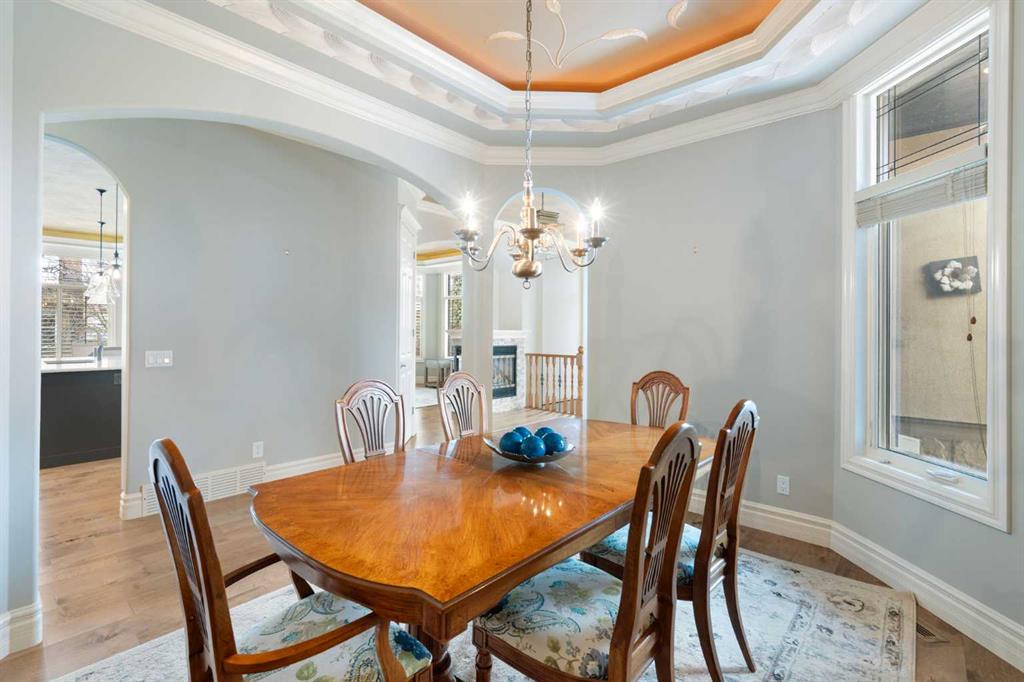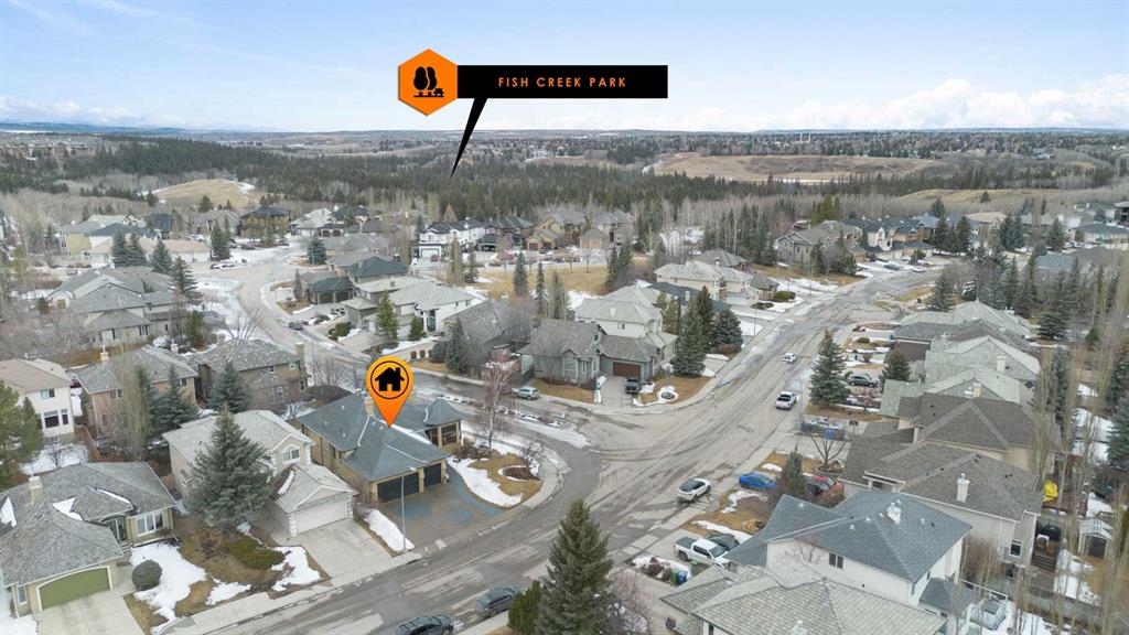 Meticulously updated in 2017, this stunning custom-built ShowHome by California Homes occupies a prime corner lot in the highly sought after Evergreen Estates, seamlessly combining timeless elegance with modern sophistication. Boasting over 3,300 sq. ft. of beautifully finished living space, the home offers 4+1 spacious bedrooms, 3 bathrooms, a triple attached garage, in-floor heating on the lower level, a wet bar, Wine room, an irrigation system, central air conditioning and MORE. The extraordinary backyard is designed with maintenance free living, featuring grey paving stones artfully arranged in circular patterns, while the front driveway and garage share the same premium paving, uniting the home’s exterior with understated sophistication. Step through the welcoming entry and experience immediate architectural elegance. Rich engineered hardwood flooring lead to the formal dining room, where a multi-tier tray ceiling with intricate detailing and decorative crown moulding that commands attention. Graceful archways frame the space, creating the perfect setting for both intimate dinners and grand entertaining. The chef’s dream kitchen is a masterclass in design and functionality, with custom maple cabinetry accented by crown moulding throughout the home, premium granite countertops, a generous central island, and newer (2022) stainless steel appliances package. Expansive windows bathe the main floor in natural light, creating a bright, warm, and inviting atmosphere throughout. The main level is further enhanced by a spacious home office that can be easily converted into a guest bedroom. A thoughtfully designed mudroom with the additional cabinetry for storage, blending style with practicality. The primary suite on the main floor offers a serene retreat, featuring a spa like 5 pc ensuite with jetted tub, dual vanities, and an expansive walk-in closet. Ascend to the fully finished lower level, with 3 additional generously sized bedrooms, a massive family/game room(pool table included), a 4-piece bathroom, and a well-appointed wine room with a wet bar. In-floor heating for added comfort and warmth. Located in an unmatched setting, that offers effortless access to schools, shopping, public transit, with seamless access via Stoney Trail, while the natural beauty of Fish Creek Park is just moments away. Rarely does a property of this caliber come to market, schedule your private showing today to experience it for yourself.