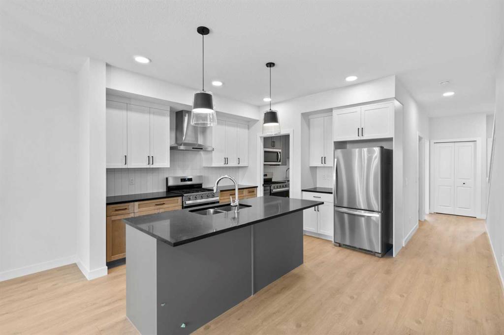 IMMEDIATE POSSESSION | 1,927 SQ.FT. | 4-BED | 3-BATH | SPICE KITCHEN | SIDE ENTRANCE | 9′ BASEMENT | BONUS ROOM | LARGE PIE SHAPED LOT | Step into this modern & versatile new home by Crystal Creek Homes. Offering an open-concept main floor with 9′ ceilings, its sleek kitchen features quartz countertops, a large island, and a SPICE KITCHEN with a GAS RANGE and sink. A spacious great room with an electric FIREPLACE adds to the welcoming atmosphere. The main floor also includes a bedroom and a full bathroom, perfect for guests or multi-generational living. Upstairs, you’ll find a BONUS ROOM, 3 bedrooms, each with walk-in closets, a main bath, and convenient UPPER-FLOOR LAUNDRY. The primary bedroom offers a luxurious 5-piece ensuite. Set on a large pie-shaped lot, the home features a durable HARDIE BOARD EXTERIOR and a REAR DECK for outdoor living. The 9′ BASEMENT and SEPARATE SIDE ENTRANCE provides future legal suite potential (subject to approval and permitting by the City). Located near East Hills Shopping Centre, with quick access to Stoney Trail and a short drive downtown. This home has everything you need! Book your showing today before it’s gone.
