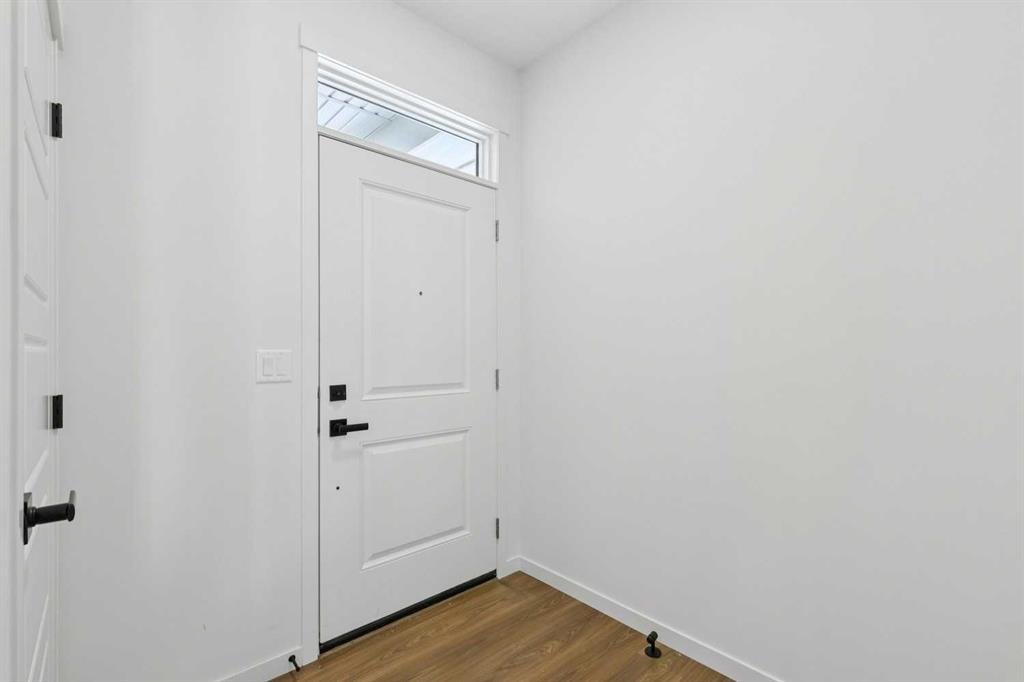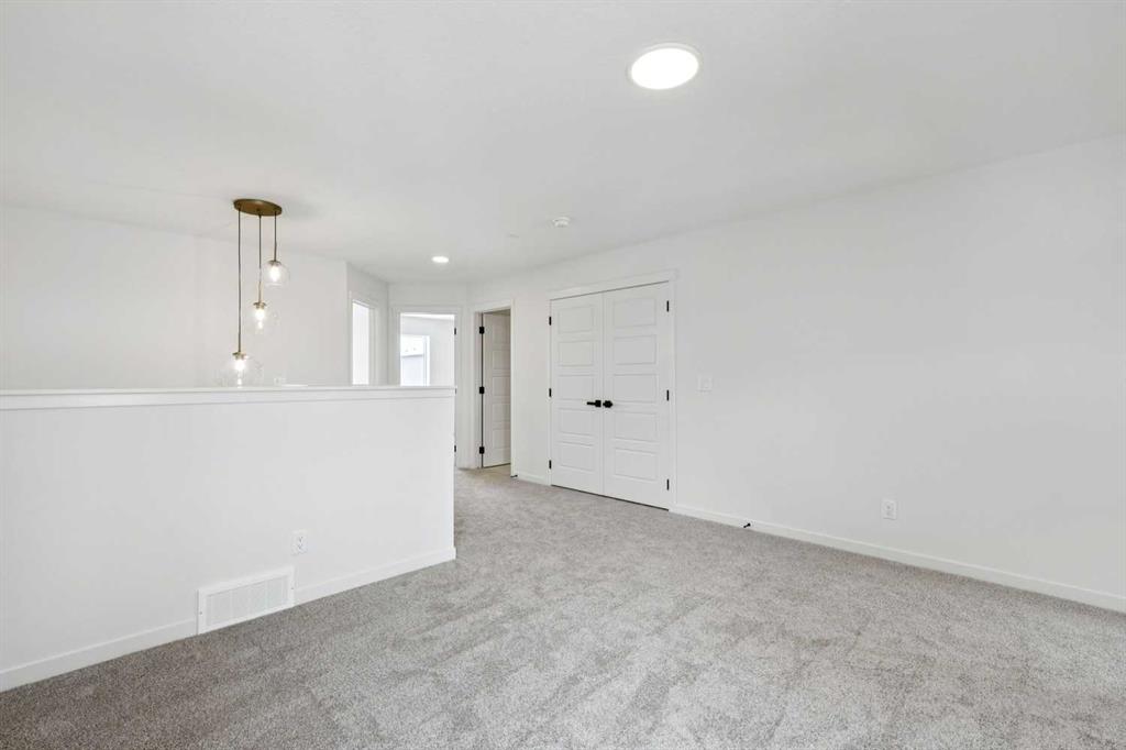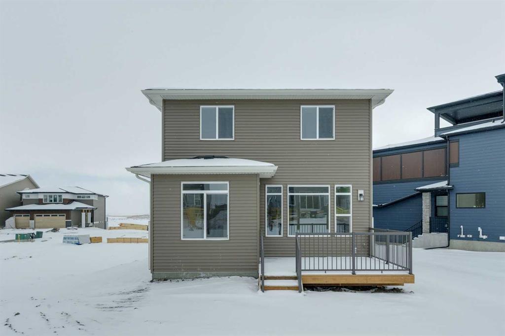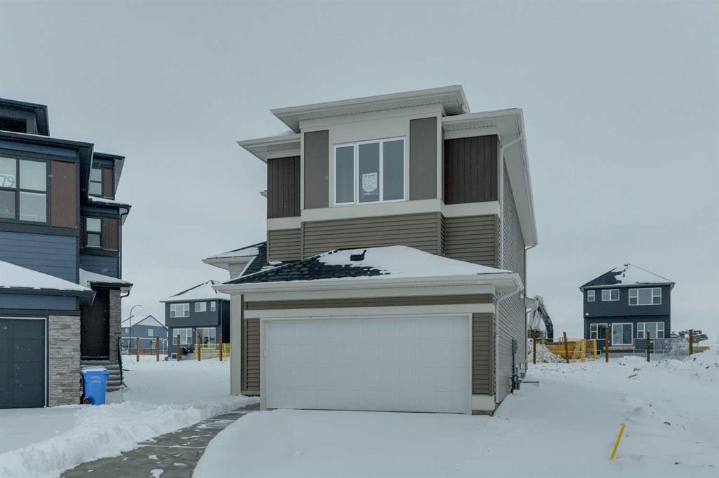 Welcome to this beautifully upgraded home offering 1,860 sq. ft. of thoughtfully designed living space, complete with a bonus room, double attached garage, and desirable SW-facing backyard. The main floor features durable vinyl plank flooring, a convenient half bathroom, and a bright open-concept layout ideal for everyday living and entertaining. The spacious living room is highlighted by an electric fireplace, creating a warm and inviting atmosphere. The kitchen is a standout with a large island with quartz countertops, white cabinetry accented with gold door handles, and a champagne bronze pull-down faucet. Premium appliances include a French door refrigerator, gas range, built-in microwave, and chimney-style hood fan, while pot lights enhance the space. An upgraded railing adds a modern touch to the main living area. Step outside to the 13′ x 10′ deck with a gas line for BBQ, perfect for enjoying the southwest-facing backyard. Upstairs offers a versatile bonus room, three bedrooms, and a dedicated laundry area. The primary bedroom features a spacious 5-piece ensuite with double sinks, a stand-up shower with glass door, and a relaxing bathtub. A 4-piece bathroom serves the additional bedrooms. The 9’ foundation and separate side entrance provide excellent flexibility, while the basement is roughed in for a future suite (a secondary suite would be subject to approval and permitting by the city/municipality). Additional highlights include matte black hardware throughout the home, carpet on the upper level for comfort, and a driveway in addition to the double attached garage. Livingston residents enjoy access to an HOA clubhouse featuring a gymnasium, tennis courts, a splash park, and year-round programming, along with quick access to major routes for easy commuting across the city. This home combines modern finishes, functional design, and future development potential in one impressive package.