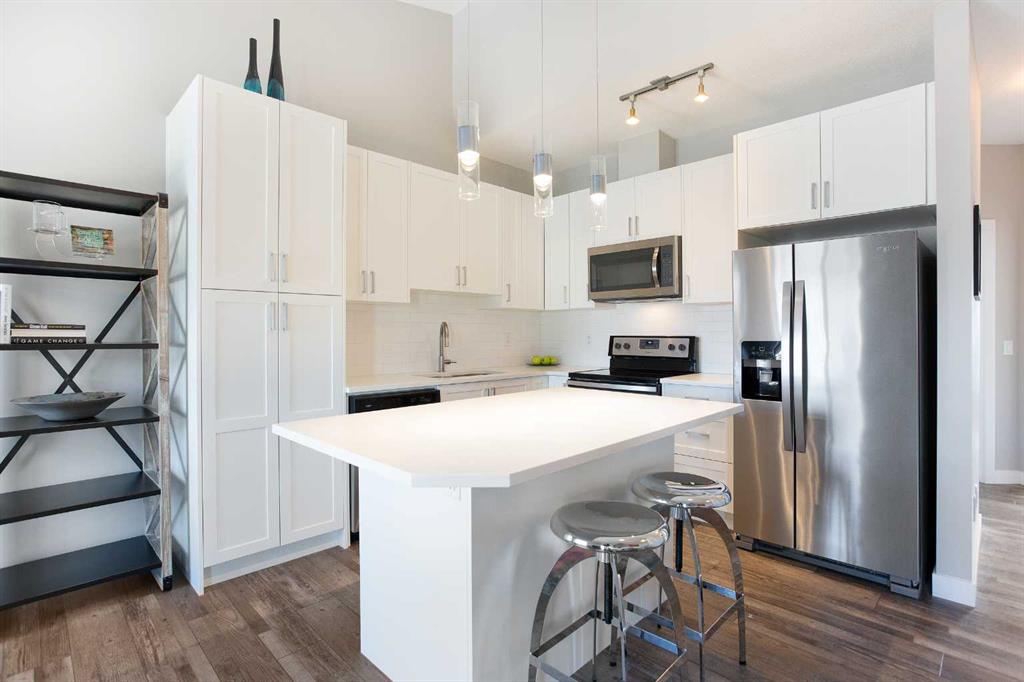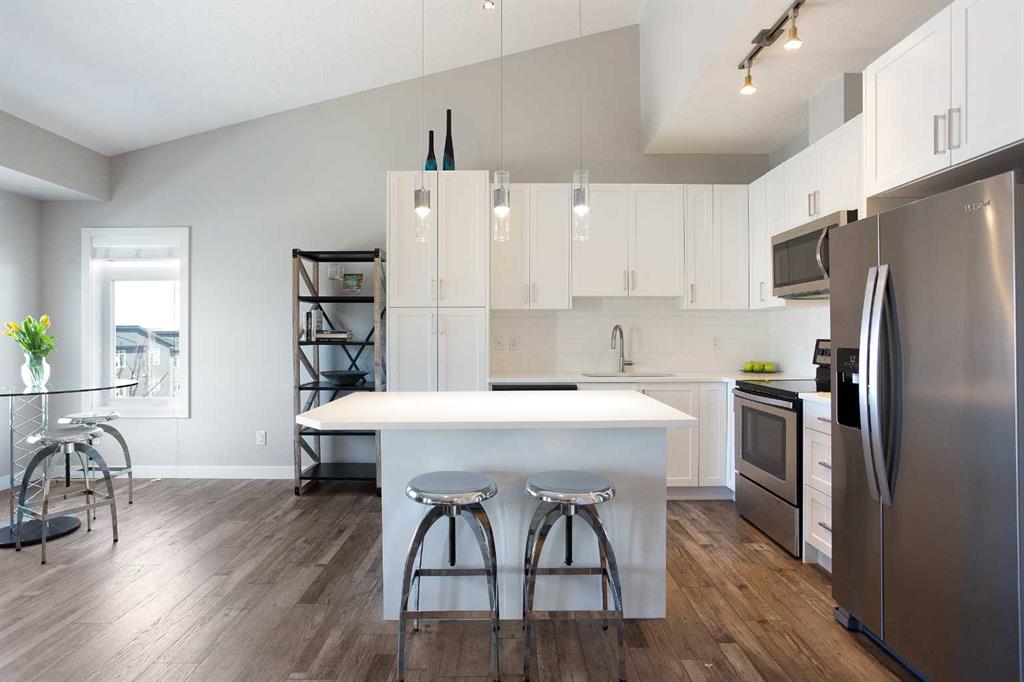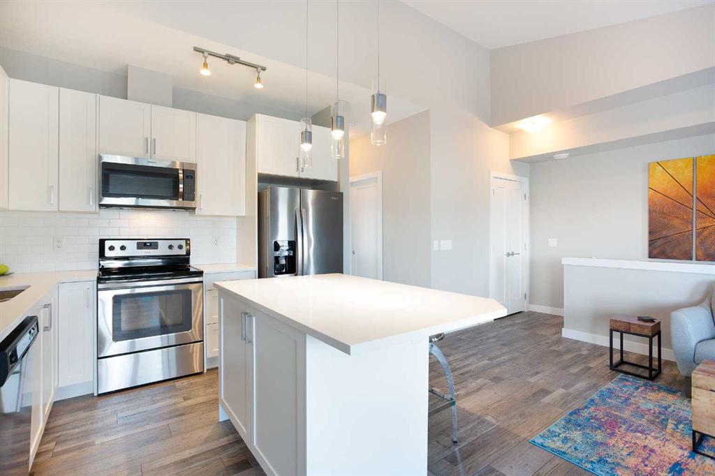 This beautifully upgraded top floor, end unit two-bedroom home offers soaring 9- foot ceilings and a bright, open concept layout that immediately impresses. Natural light floods every corner, creating a warm and inviting atmosphere from the moment you walk in. Step out onto your private balcony and take in the gorgeous, unobstructed views- the perfect spot to enjoy your morning coffee or unwind at the end of the day. Proudly owned by its original owner and meticulously cared for since day one, no detail has been overlooked in this exceptional home. Luxurious Vinyl Plank flooring complements the modern finishes that elevate every room. The stylish kitchen features quartz countertops and a large island making it as functional as it is beautiful. Both bedrooms are generously sized, offering comfort and flexibility for families, professionals or anyone looking for a little extra space.