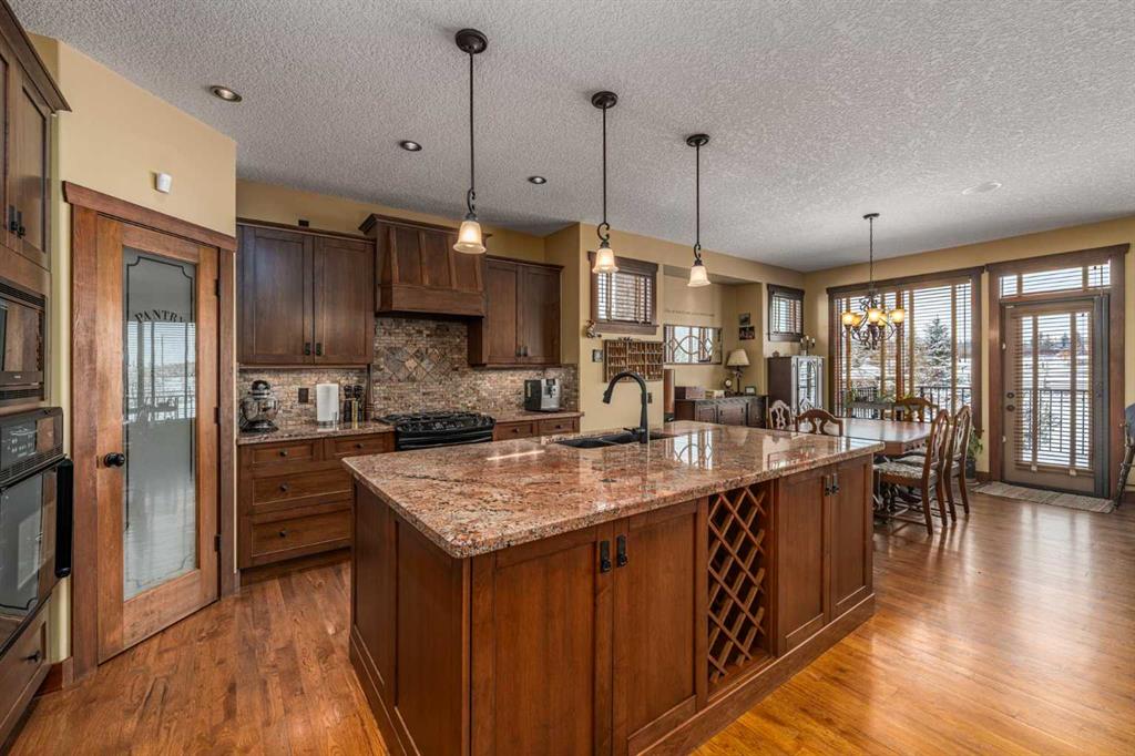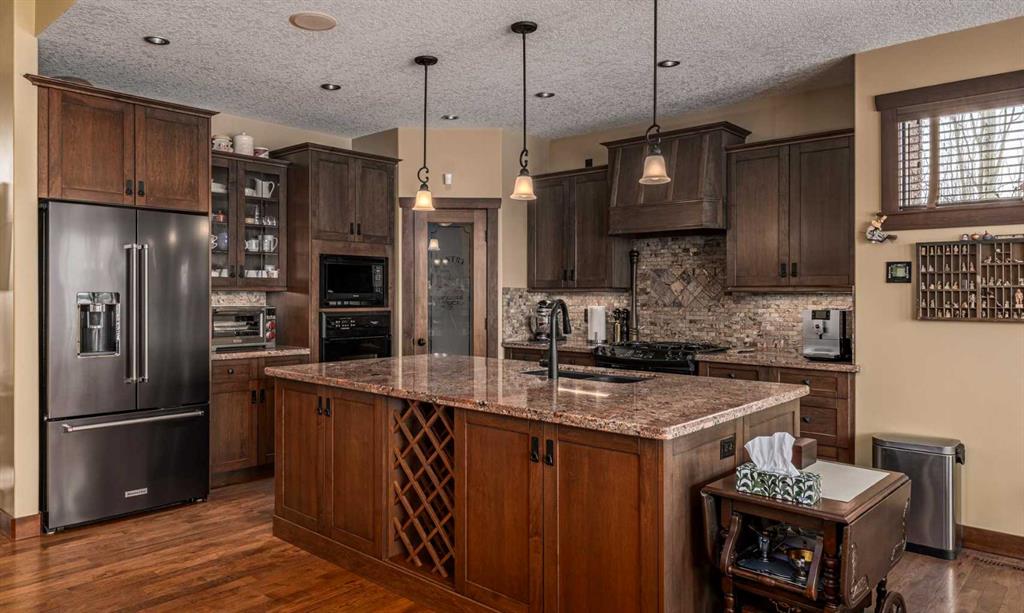 Set on 4.07 acres just minutes from Priddis and only 10 minutes to Shawnessy, this exceptional executive walkout bungalow offers a blend of refined living and country tranquility. Built in 2007, the home features 3 bedrooms, 2.5 bathrooms, a bright den, air conditioning, and two fireplaces, along with a thoughtfully designed walkout basement complete with a convenient Jack and Jill bathroom. The spa-inspired primary ensuite is a true retreat, featuring a steam shower. Designed for modern living, the home is wired for sound inside and out, with data lines throughout, and offers an abundance of well-planned storage.