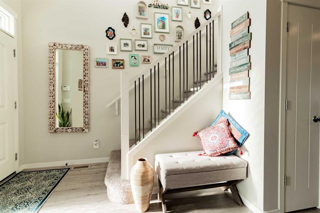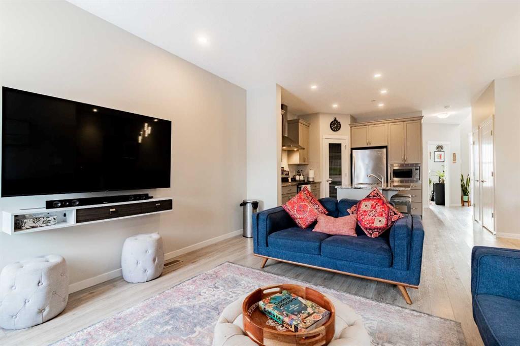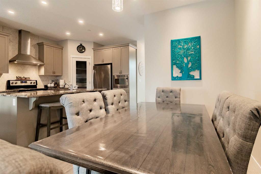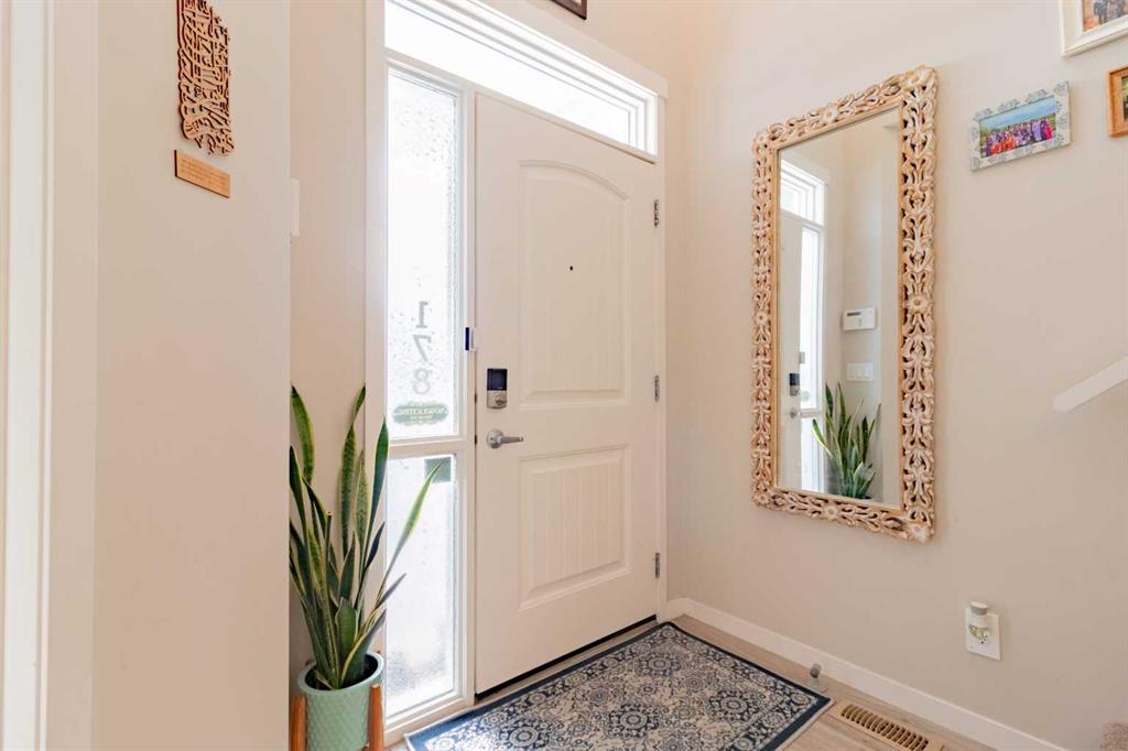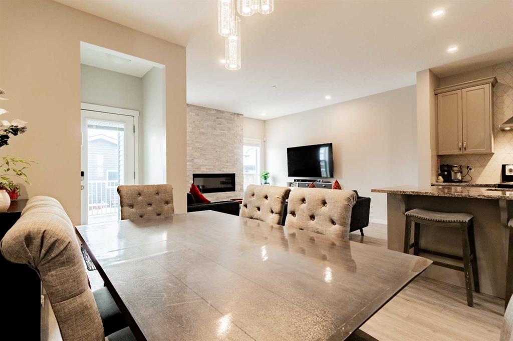 Wow! Unbeatable value in the new Calgary North desirable community of Livingston! Built in 2016 this bright naturally lit south facing former Morrison Homes Show Home ticks all the boxes! Show Home from 2016 – 2019. 3 Large bedrooms & 2 full washrooms upstairs, a 4th Bedroom & open concept living area with a powder room on the main floor gives you enough room to not only to enjoy but to grow in as well! From modern stainless steel Energy Efficient® appliances & fixtures all through out the house has been thoughtfully laid out & planned for. As you walk through the front doors you will find ample space to take a moment to take your coats & shoes off & place them in the closet to the left. On your right you will find an additional bedroom, currently being used as a library. Walk past the stairs down the hallway to your large open concept kitchen finished with modern stainless-steel appliances, Breakfast Island & own dedicated pantry! The stove already has a gas line pre-installed as well! Here you will also find your dining area with a beautiful modern chandelier & a cozy family room with its own gas fireplace finished with stone. You can cook dinner while the kids watch some TV or finish their home work! Further ahead you will have access to your backyard with a large deck, concrete pad for your BBQ & concrete pathway to your oversized (22’ x 24’) double detached garage. Upstairs you have your large master bed which comes with its own walk-in closet & primary 3-piece ensuite! With views of the lake in the back this room is a perfect retreat from your hectic day! There are two additional large size rooms, both with their own closets & a second 4-piece bathroom upstairs as well. All fittings are Energy Star® & have a sleek modern finish to make them standout! The basement is currently undeveloped & used for recreation. The furnace is high efficiency & there is even a Heat Recovery Ventilator to recover heat on the cold nights & to keep the house cool during the summer there is even central air conditioning! This space is waiting your touch to be developed further if required. The location of this property is priceless, with it being within walking distance of the Livingston Community Center where you will find skate parks, splash pools, tennis courts walking paths, kid’s playgrounds, community hall, theater, private schools & so much more! Upgrades are endless – 9 Ft Ceilings on the main floor and basement, Granite counter tops, oversize kitchen sink, Sprinkler system through out the whole house, oversize fridge, built in closet shelving & much more! Roof replaced with Class 4 Asphalt Shingles October 2025 & Siding replaced November 2024. This home needs nothing & is perfect for first time buyers or investors alike! Don’t miss the opportunity to view this gem & book your showing today!
