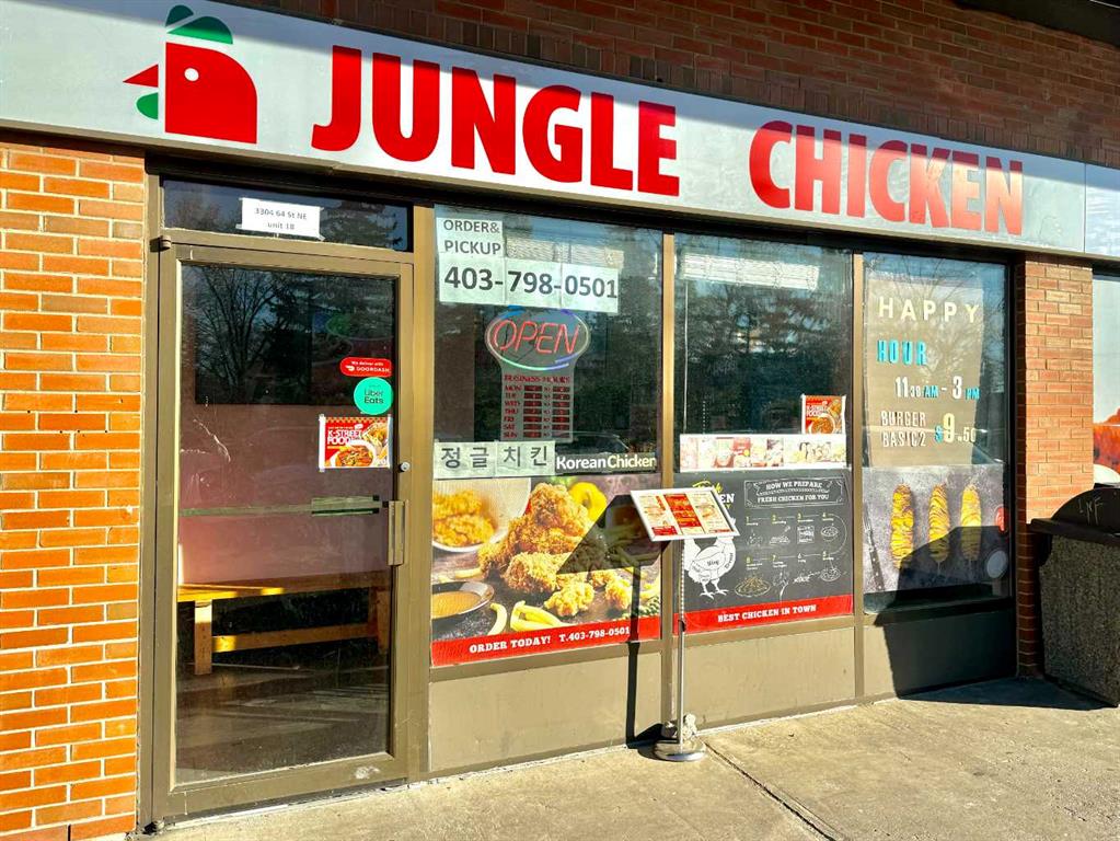 Location, Location, and Location! Rare opportunity to purchase 975sqft KOREAN FRIED CHICKEN(K.F.C) take-out restaurant in NE Calgary! Situated in a prime strip mall right at busy 32nd Ave where thousands of cars passing by all the time! Anchored by 7-Eleven and other popular businesses such as Liquor store, Halal store, Cannabis, Hair salon to attract more visitors! Surrounded by residential communities, close to two schools, across from a professional building so lots of take-out and deliveries! This popular eatery just opened a few years ago with brand new set up and new equipment! Spacious kitchen with functional layout, 12 ft canopy, 5 deep fryers, 4 burner-stove with oven, and easy truck access to the back alley! Turnkey business with this Korean fried chicken restaurant or bring your own concept upon landlord’s approval! The price includes all assets, trade name, recipes, and full training! No experience is needed! Easy operation! Good business! Best value! Please respect the operation of this restaurant so do not visit without a prior appointment!