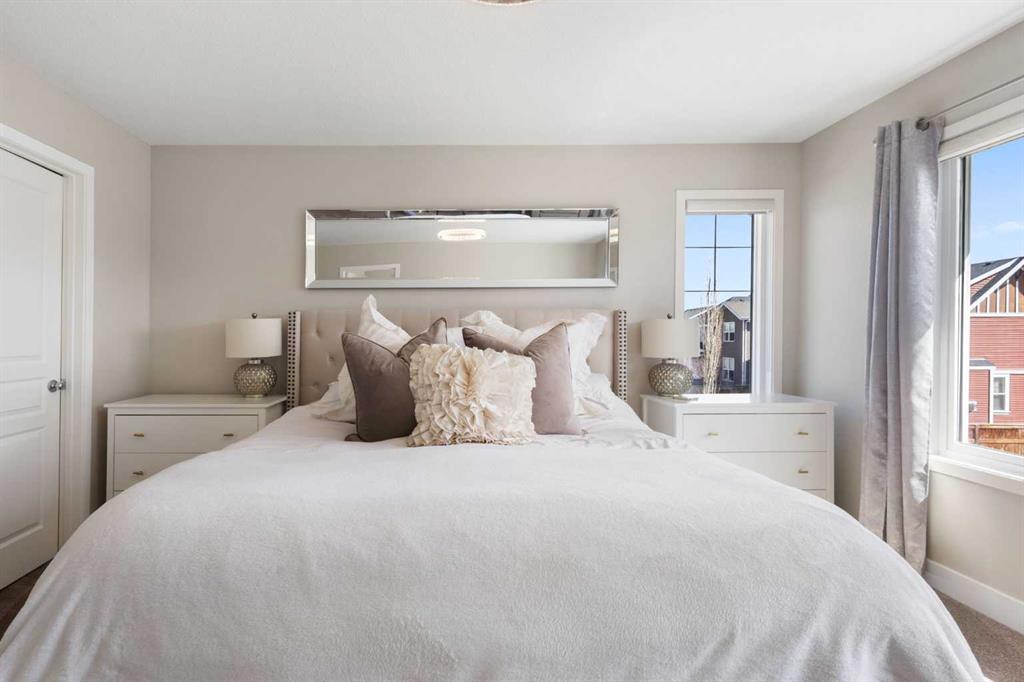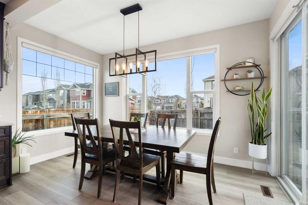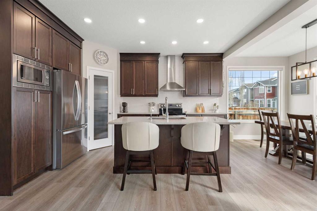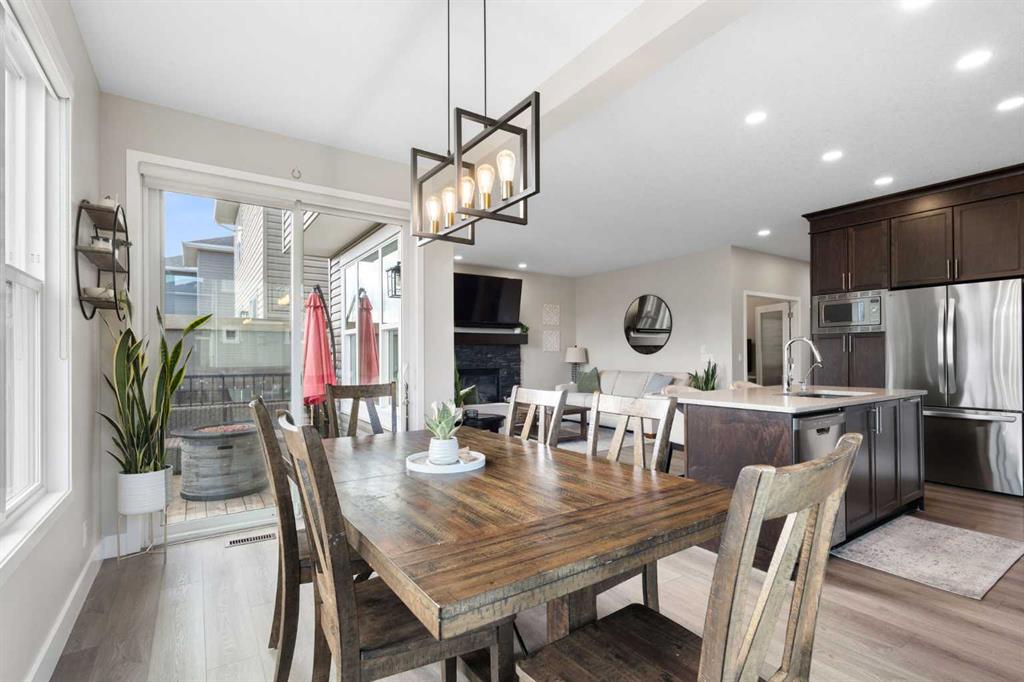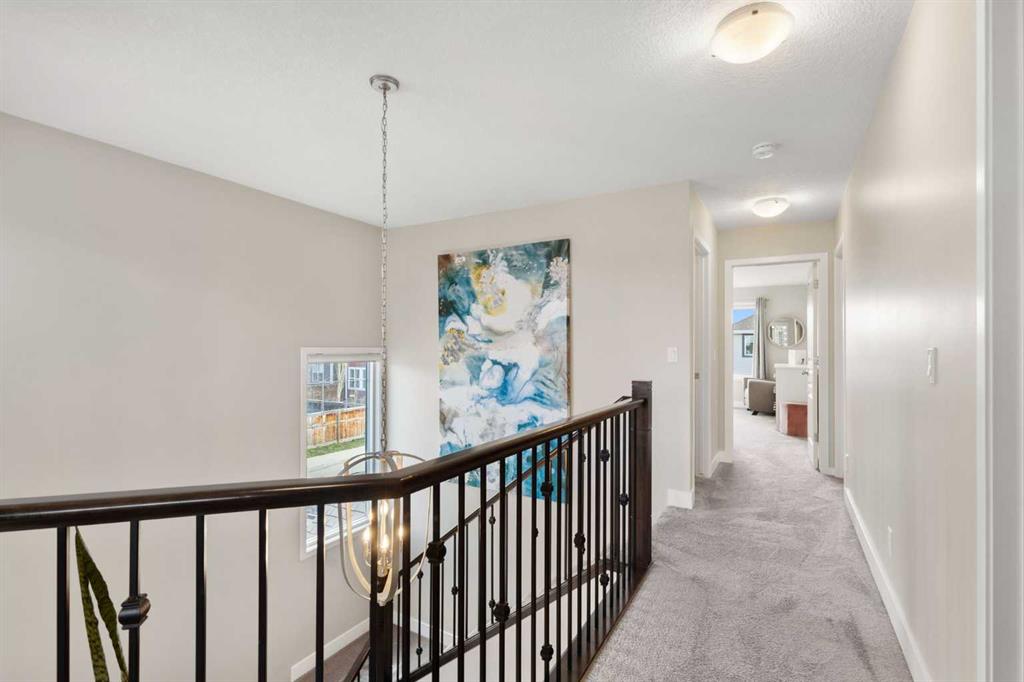 Upon entry you are greeted by a grand foyer, featuring Updated flooring with a Modern touch in Mind, Wrought Iron Stair Railings and Upgraded Light Fixtures. The kitchen has Rich Cabinetry reaching to the full 9′ ceilings, High end Stainless Appliances, low maintenance Quartz Stone counter tops, Drinking Water Filtration and an Under-Mount Granite sink. Take note of the special lighting in the large dining area that overlooks the back yard. The main floor is rounded out by a spacious laundry room, a den/office/flex room, a Gas Fireplace, Beautiful Windows, and Very Expensive Window Coverings. The Upper level has a Massive Bonus Room (again with the most spectacular windows) and a total of 3 bedrooms. The Primary Bedroom features a Beautiful Ensuite Bathroom that has 2 sinks, a Huge Soaker Tub, a Tiled shower, and a Separate Water Closet. This Energy efficient Home has High End Triple Pane Windows and is as good as NEW, except for the fact that this one is Landscaped, Fenced, and the deck is built. The lot is Larger than Most being on a CORNER, the Exterior has great curb Appeal, and the interior is Full of Upgrades, All in the Right Places. Additional features include a Gas line to the stove, upgraded carpet, Granite throughout the Bathrooms, a Fantastic Basement layout that is perfect for future development, a Spacious Insulated Garage with a High Ceiling and more. You can have all of this within walking distance to Schools, Shopping, coffee shops, pubs, restaurants, Playgrounds, Walking paths, the Lake, and South Health Campus. Did I forget the Central AIR CONDITIONING?