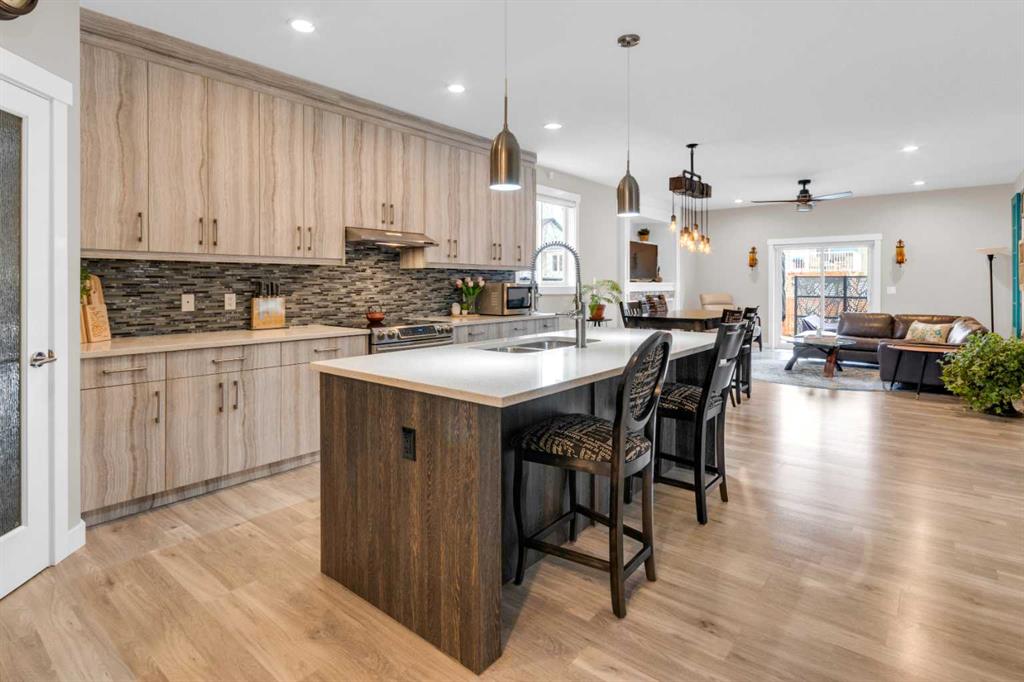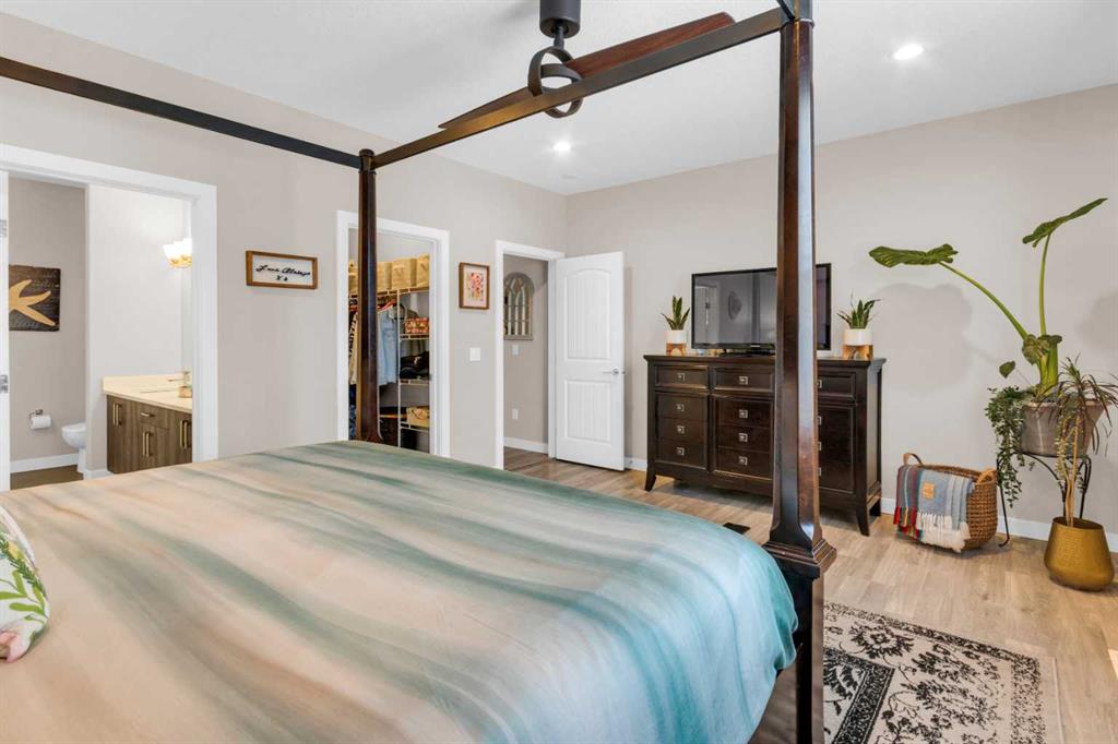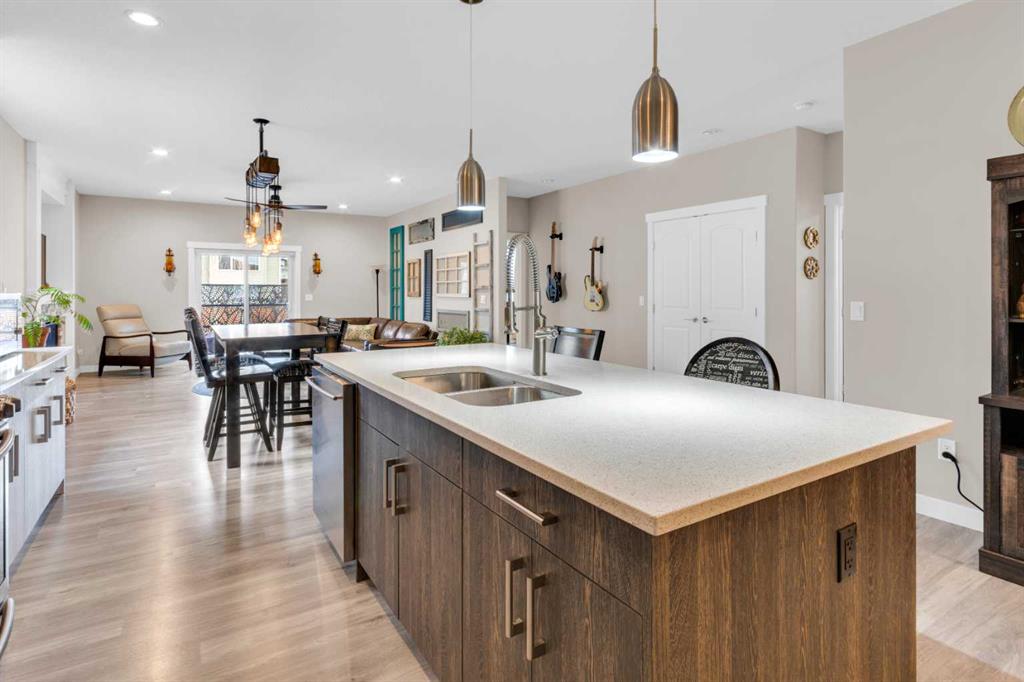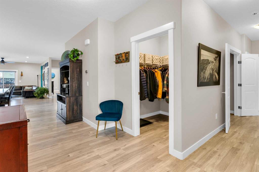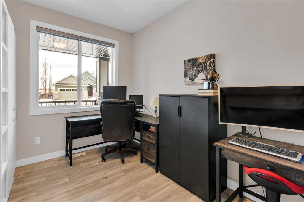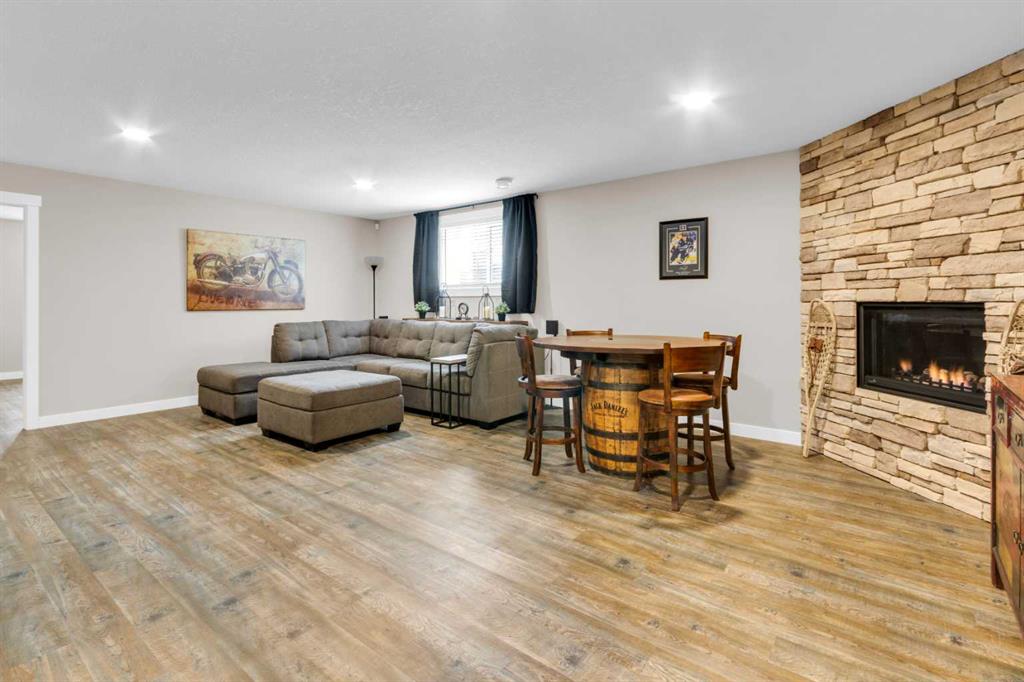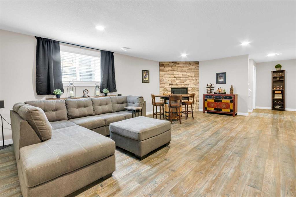 ** OPEN HOUSE Sunday March 22nd from 2-4pm ** MODERN LUXURY meets SMALL TOWN SERENITY in this show-stopping, fully finished Bungalow with the ultimate TRIPLE ATTACHED DREAM GARAGE & expansive backyard! A massive driveway and covered Front Porch set the tone before stepping inside to a thoughtfully designed entry. The front Foyer flows into an organized walk-in closet for coats, and Mudroom, where there’s a second oversized closet with shelving tucked discreetly behind French doors —keeping everyday life beautifully organized & out of sight. A bright front Office with a large window offers the perfect work-from-home space. The heart of the home is a magazine-worthy Kitchen! Showcasing full-height custom cabinetry that extends seamlessly to the ceiling, a timeless tile backsplash, elegant stone countertops, rich contrasting eat-up island with a sink that creates the ideal gathering space, complemented by SS appliances including an electric range (gas line in place), AND a spacious corner Pantry. Ok, SOLD?! But there’s so much more… The Dining area connects effortlessly to the inviting Living Room, where a striking gas fireplace with floor-to-ceiling stonework and custom built-in cubbies, shelves & mantle create a warm and sophisticated focal point. Step outside through the large sliding doors to a spectacular two-tiered, partially covered deck with gas line for BBQ, privacy feature wall, and sweeping views of the huge, fully landscaped & fenced backyard. Mature trees, a storage shed, and a spacious side yard perfect for a dog run complete this outdoor retreat. The Primary Suite is generously sized and beautifully finished, with a luxurious 5-pc Ensuite with dual sinks, tiled floors, a JETTED SOAKER TUB beneath the window, an O/S walk-in shower, and a big walk-in closet with built-in organization. Finishing-off the main floor is a 2nd spacious Bedroom, a 4-pc Bathroom with stone counters & vanity storage, and a Laundry Room with tile flooring & French doors. The FULLY FINISHED BASEMENT continues the home’s elevated feel with LVP floors, tall ceilings, and recessed lighting. A cozy corner gas fireplace with full-height stone surround anchors the space, while TWO BIG bedrooms—both with WALK-IN closets—offer incredible flexibility! A wide hallway includes 220 wiring for the current corner SAUNA, leading to an elegant 3-pc Bath with an O/S tiled walk-in shower and modern vanity. This Basement has a GREAT layout, completed by a large storage area and utility room. Located in the welcoming community of Didsbury, on a GREAT Street, this home offers the perfect balance of small-town charm and everyday convenience—with excellent schools, parks, walking paths, and quick access for commuters. With its thoughtful layout, high-end finishes, incredible outdoor space, and standout triple Garage (that accommodates a half-ton truck no problem), this home is truly the complete package. Your dream bungalow awaits… Book your private viewing today!